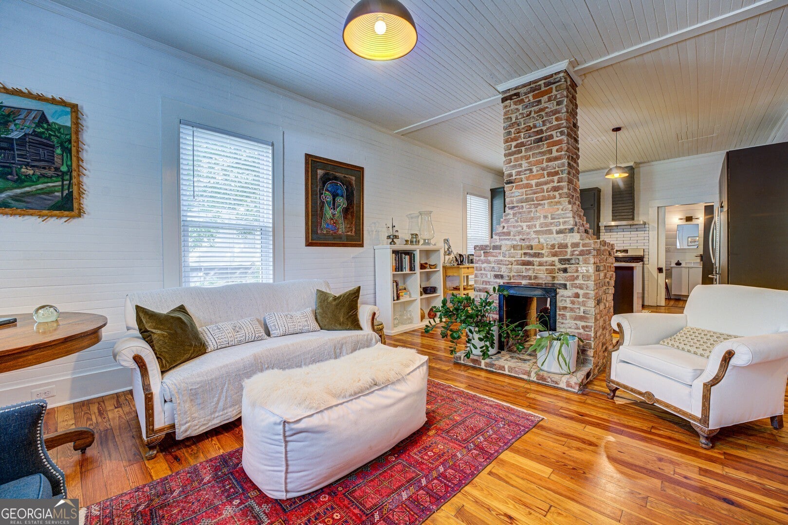 Step into the perfect blend of historic charm and modern comfort in this beautifully restored mill cottage located in the Porterdale Historic District. Originally built as a supervisor's home for employees at the Porterdale Mill which closed in 1970, it has been thoughtfully renovated and lovingly maintained. This 2 bedroom 2 bath home captures the timeless character of 1918 craftsmanship with the upgrades of todays living. The home is set in a prime location in one of the best preserved mill villages in Georgia. Original character shines throughout with beadboard walls and ceilings, complemented by refinished heart pine floors from the 2019 renovation. An open kitchen-living area is divided by a double sided working fireplace. The state-of-the-art kitchen features quartz countertops, stainless appliances, oversized island for additional seating, large pantry and abundant storage. New cabinets, a tile backsplash, and under-cabinet lighting give the kitchen a fresh, modern look and a warm, inviting feel. The primary suite includes an ensuite bathroom with pocket door, glass tile, shiplap walls and quartz vanity. The second bedroom fits a queen bed or doubles as an office or guest room. A rare second bathroom for Porterdale mill cottages was added and is designed to include a laundry area and finished with a pocket door, walk-in shower and quartz countertops. Outdoor features include a spacious front porch that was extended to create an inviting outdoor living and dining area with ample space for a grill. A reconfigured entry and foyer provide easy access from the carport. Additional storage is available in the attic, deep crawlspace, and in the newly added storage building. The exterior was freshly repainted in 2024, enhancing the home's charm and curb appeal. Major renovations include a full electrical rewire with new lighting fixtures, new HVAC system with updated ductwork and all-new plumbing throughout the home. The original chimney and double-sided fireplace were beautifully rebuilt, creating a striking feature that divides the kitchen and living room. The roof on the main dwelling was replaced in 2018 and the carport decking and roof in 2025. This historic cottage was renovated to maintain the historic integrity of the property while adding contemporary features and materials. The home is located just a 1/4 mile from the Yellow River Water Trail, making it ideal for kayaking and scenic walks. It is just minutes from the historic Covington Square, offering a variety of restaurants, shops and entertainment options. It also offers peaceful park views and is situated in a charming, walkable historic neighborhood. Additionally the property is less than an hour to Hartsfield International Airport, Lake Oconee, Athens and a half hour to historic Madison, Hard Labor Creek State Park and the new RIVIAN EV truck plant. The owners have over thirty years of experience renovating historic homes, two of which have been on the Newton Historical Society and the Georgia Trust Ramble home tours. This home offers the rare opportunity to own a piece of Porterdale's history while enjoying modern amenities and lifestyle. The property is ideal as a primary residence, weekend retreat, or an investment.