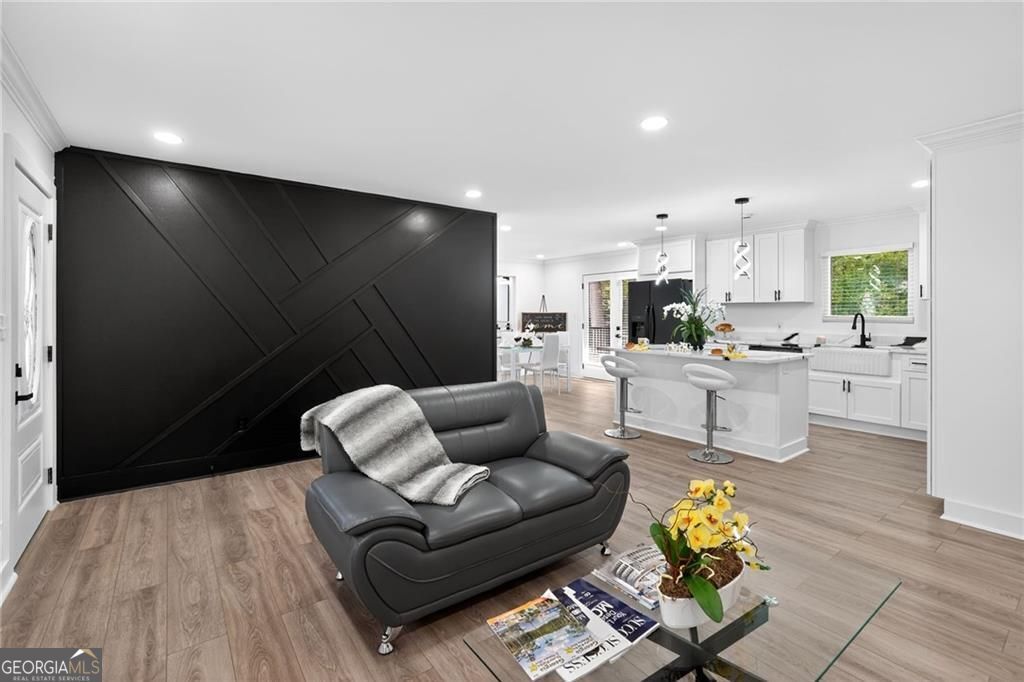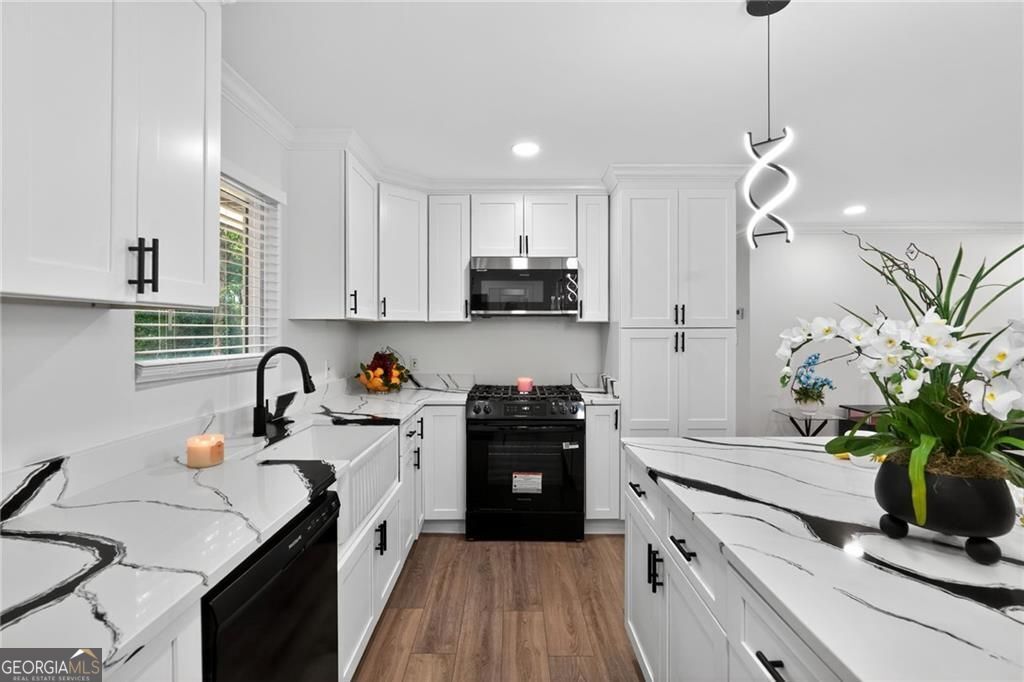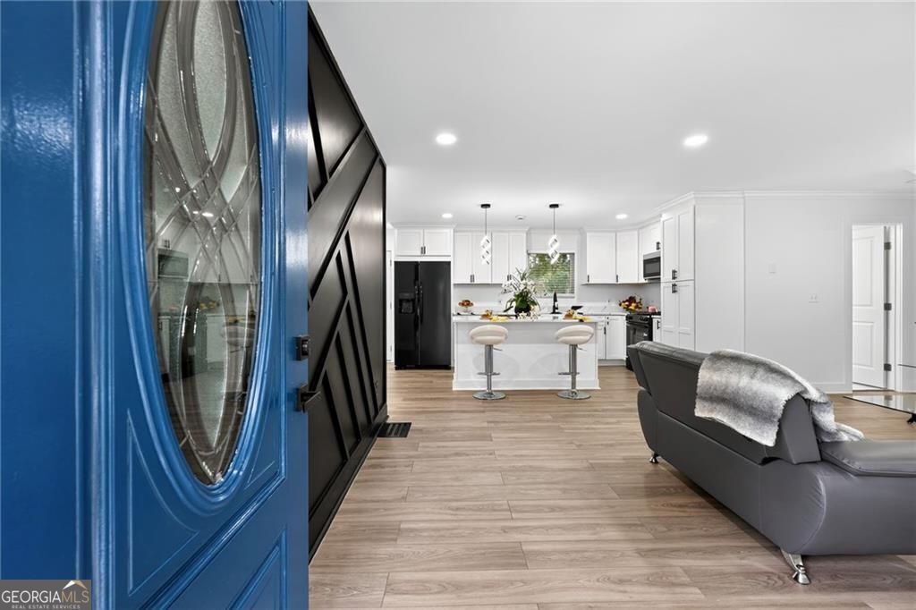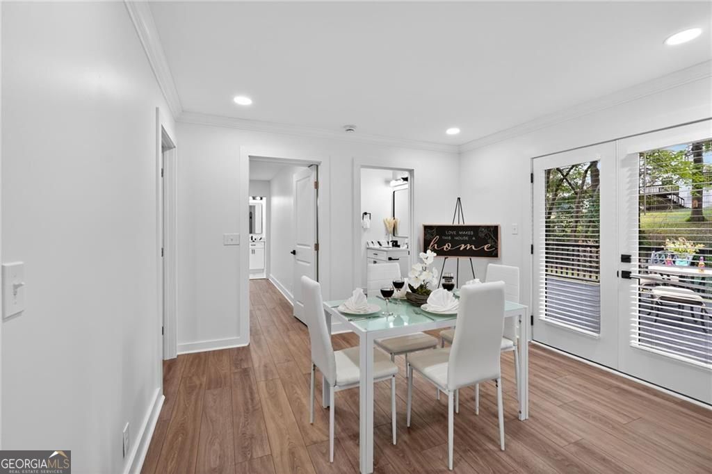 Nestled at 1051 Oriole Lane SE, Marietta, GA, this attractive property offers an exceptional residential opportunity within a desirable setting. The residence is newly renovated, ready to welcome you home. The living room is crafted with elegant crown molding, elevating the aesthetic and creating a refined space for relaxation and entertainment. Imagine settling in each evening, surrounded by sophisticated architectural details that enhance the room's ambiance. The kitchen is a culinary dream, showcasing a large kitchen island perfect for meal preparation and casual dining. Quartz countertops provide a durable and luxurious surface, while shaker cabinets, adorned with crown molding, provide generous storage and contribute to the kitchen's overall aesthetic appeal. The kitchen bar offers additional seating and a wonderful spot for gathering with friends and loved ones. The property includes a brand-new deck where the tranquil views of the surrounding woods provide a serene backdrop for morning coffee or evening relaxation. Convenience is enhanced by the inclusion of a dedicated laundry room. This Marietta home offers an exceptional lifestyle opportunity, providing an ideal blend of comfort and sophistication. THIS PROPERTY ALSO INCLUDES THE ADJOIN VACANT LOT! BUYERS TO CONFIRM ACCURACY OF ALL DETAILS. PLEASE REMOVE SHOES or USE SHOE COVERS PROVIDED .