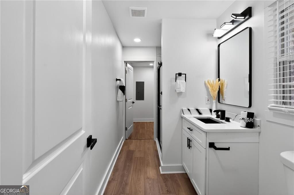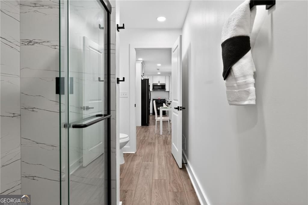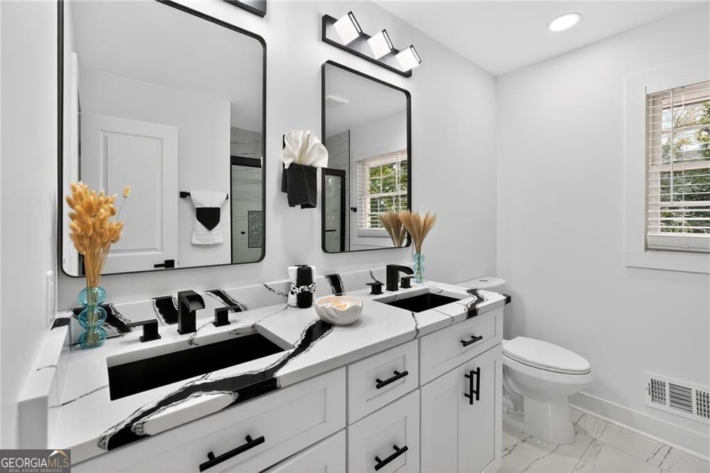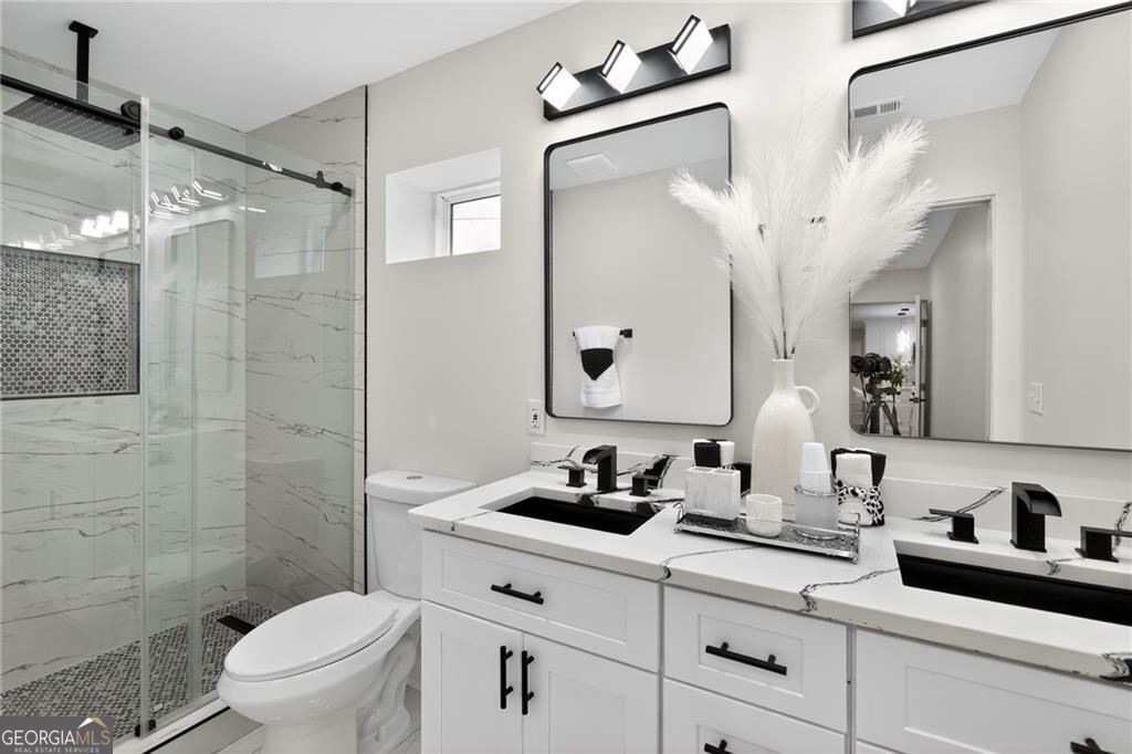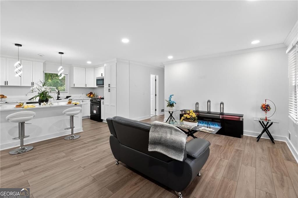 Nestled at 1051 Oriole Lane SE, Marietta, GA, this attractive property offers an exceptional residential opportunity within a desirable setting. The residence is newly renovated, ready to welcome you home. The living room is crafted with elegant crown molding, elevating the aesthetic and creating a refined space for relaxation and entertainment. Imagine settling in each evening, surrounded by sophisticated architectural details that enhance the room's ambiance. The kitchen is a culinary dream, showcasing a large kitchen island perfect for meal preparation and casual dining. Quartz countertops provide a durable and luxurious surface, while shaker cabinets, adorned with crown molding, provide generous storage and contribute to the kitchen's overall aesthetic appeal. The kitchen bar offers additional seating and a wonderful spot for gathering with friends and loved ones. The property includes a brand-new deck where the tranquil views of the surrounding woods provide a serene backdrop for morning coffee or evening relaxation. Convenience is enhanced by the inclusion of a dedicated laundry room. This Marietta home offers an exceptional lifestyle opportunity, providing an ideal blend of comfort and sophistication. THIS PROPERTY ALSO INCLUDES THE ADJOIN VACANT LOT! BUYERS TO CONFIRM ACCURACY OF ALL DETAILS. PLEASE REMOVE SHOES or USE SHOE COVERS PROVIDED .