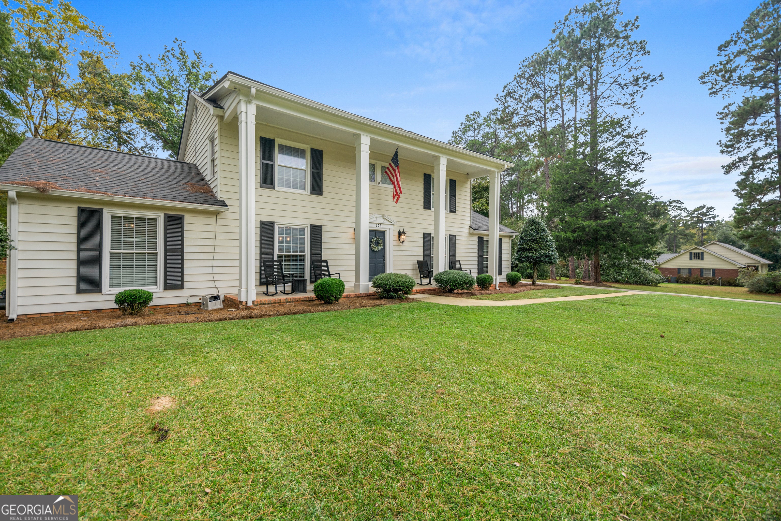 This beautifully updated 4-bedroom, 3.5-bath colonial home offers timeless style, modern upgrades, and exceptional flow throughout. Nestled on a spacious 1.81-acre lot, this residence sits in one of the area's most desirable neighborhoods. 2,905 sq. ft. of living space include separate living room, dining room, and den - designed for both comfort and entertaining. Beautiful hardwood floors in most of the home, with plush carpet in the primary bedroom and ceramic tile in all bathrooms. Thoughtfully selected lighting fixtures add warmth and elegance to every room. Updated Kitchen with granite countertops, subway tile backsplash, eat-in bar, and plenty of cabinet storage and counter space. Features newer (2020) stainless steel appliances and a large pantry for additional storage. Large Primary Suite with walk-in closet and updated en-suite bath with double-sink vanity and a walk-in tiled shower. Two upstairs bathrooms - one with a walk-in tiled shower, the other with a tub/shower combination - each boasting new vanities, lighting, and fixtures. Additional powder bath downstairs has also been updated. The Living Room features a gas-log fireplace - creating an inviting focal point for gatherings. The laundry and utility space has brick flooring, ample cabinetry with quartz countertops, and a convenient sink. Energy efficient tankless water heater and updated HVAC system with new ductwork (2025). This home has Great Flow - Every space connects naturally for seamless everyday living. Outdoor living includes a covered porch addition with beautiful tongue-and-groove wood ceiling, gas-log fireplace, and outdoor kitchen featuring granite countertops and a sink - perfect for entertaining year-round. The 1.81 acre lot is expansive and has convenient driveways on Kinney and Lee Streets. Much of the driveway was re-asphalted in 2022. Large, manicured grassy front yard with underground irrigation. Property has underground pet fencing for convenience and peace of mind. The 20x30 Metal Shop with two lean-tos is on a concrete pad and has two entry doors as well as a roll-up door. The shop is heated and cooled with a new split unit, offering versatile use for hobbies, storage, or work. Main house roof replaced in 2022; covered porch roof replaced in 2025. This stately colonial home blends traditional craftsmanship with thoughtful modern updates, offering a warm, inviting atmosphere inside and out. With its outstanding curb appeal, beautiful finishes, and spacious layout, this home truly has it all.