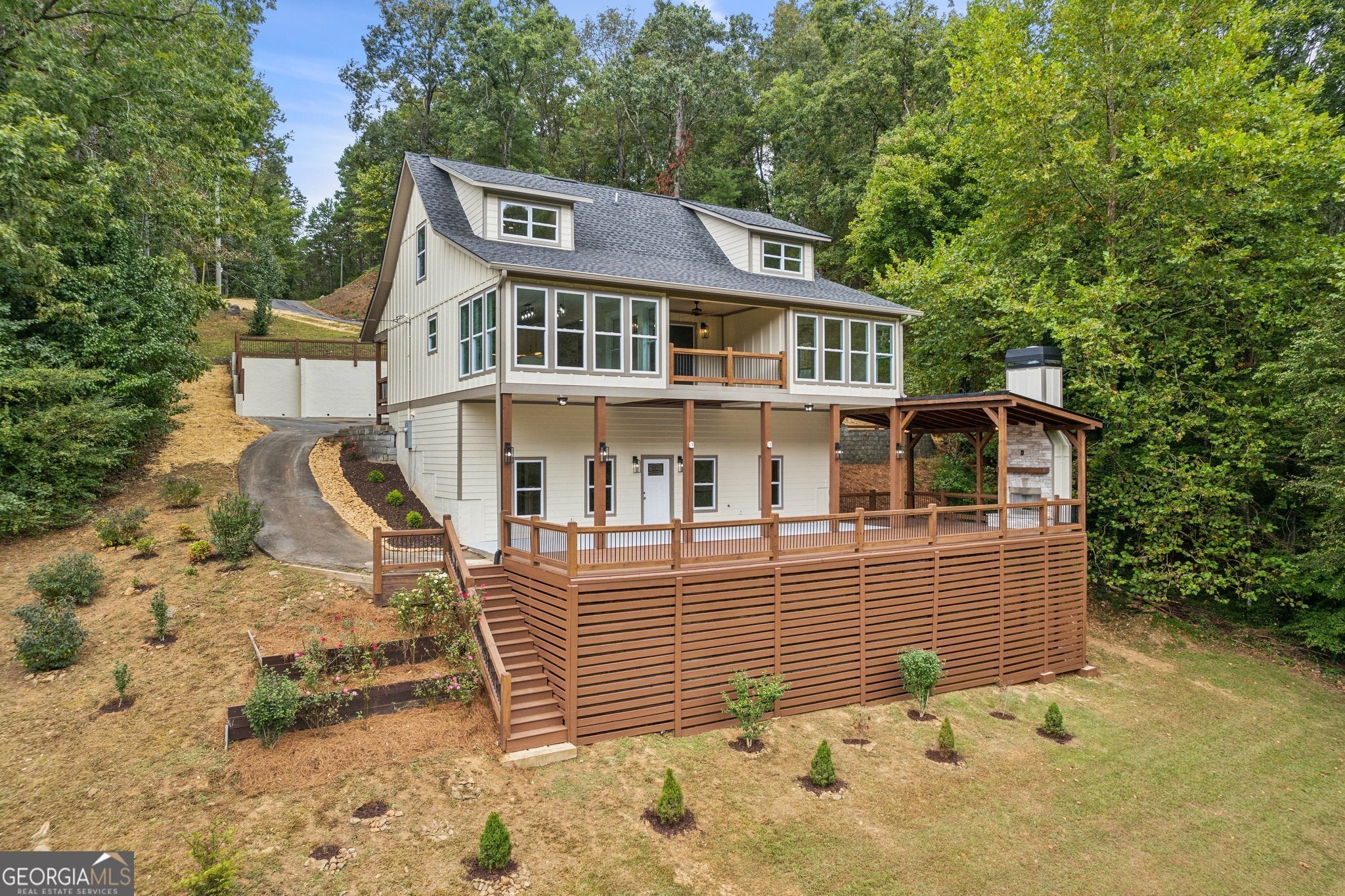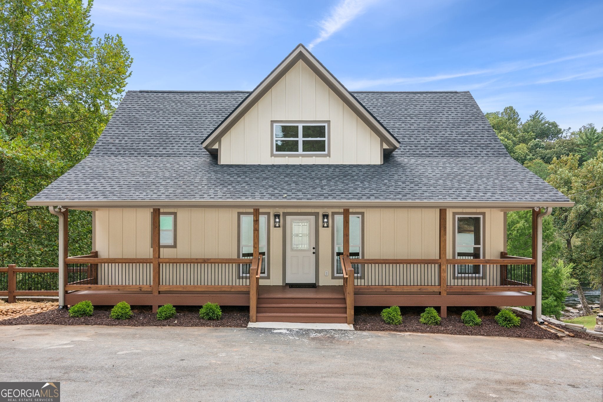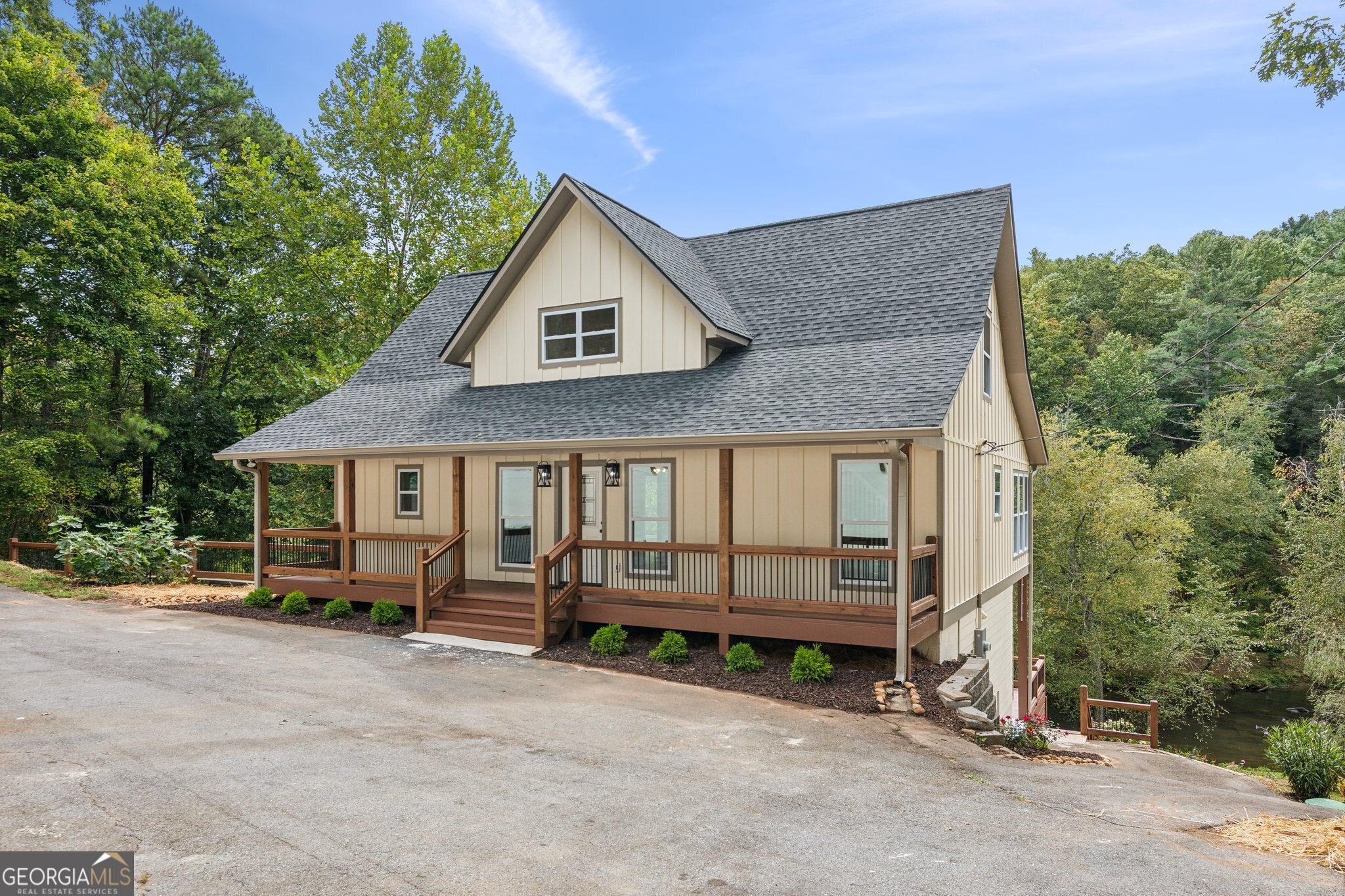 Tucked along the banks of the Cartecay River, this home captures what mountain living is all about. Peaceful mornings, open space, and the sound of water just outside your door. The property sits at the end of a private scenic driveway that winds through trees before opening to a home that feels welcoming from the start. Inside, you're greeted by an open layout filled with natural light. A stone fireplace anchors the main living area, while large windows frame views of the woods and river beyond. The kitchen is bright and functional, with plenty of space for gathering and cooking together. Just off the living area, the dining area offers a perfect year-round retreat with walls of glass overlooking the water. Step outside and you'll find generous decks and a covered outdoor area ideal for entertaining or relaxing by the fire. The gently sloping backyard leads to your own riverfront, complete with a firepit and easy access for fishing, tubing, or simply unwinding beside the water. Every part of this property has been designed to make you feel at home ? whether you?re watching the seasons change from the porch or enjoying a quiet evening under the stars. Just minutes from downtown Ellijay, yet tucked away enough to feel like your own hidden getaway