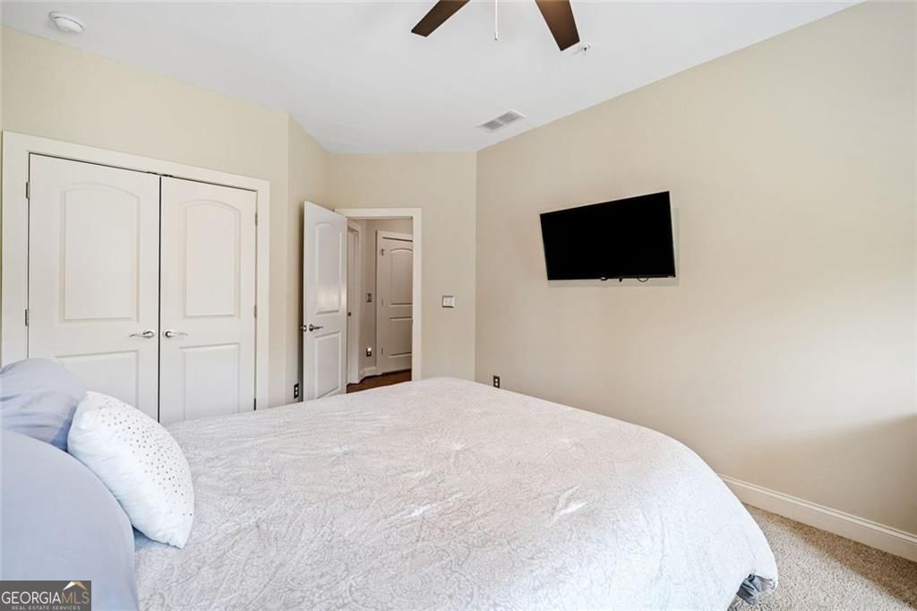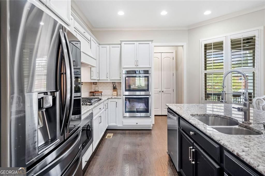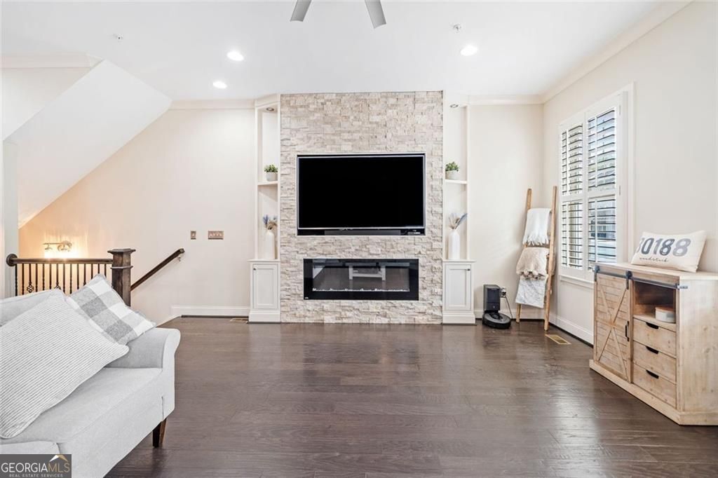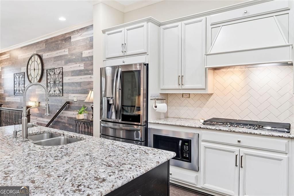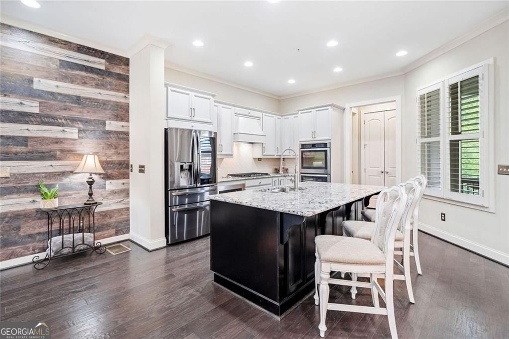 Welcome to one of Downtown Woodstock's most coveted addresses, where location, lifestyle, and luxury converge. Nestled seconds from award-winning restaurants, boutique shopping, and vibrant local entertainment, this stunning three-story townhome offers the ultimate in city living. All in a part of town highlighted three seperate times by Money Magazine's Best Places to Live! Situated next to the scenic Noonday Creek Trail and only half a mile from I-575, this home delivers unmatched accessibility with a serene suburban feel. Look inside to discover brand-new interior and exterior paint and a warm, inviting design anchored by a one-of-a-kind wood accent wall that leads you from the foyer up to the open-concept main living area. This supremely desired layout features dual primary suites one on the terrace level and one upstairs, perfect for multigenerational living or added privacy. Enjoy hardwood floors throughout, plantation shutters, and refined finishes in every room. The open concept kitchen boasts granite countertops, a large island with built-in storage, ample cabinet space, and a spacious pantry, plus a custom bar area that's ideal for entertaining. Upstairs, the primary suite offers a spa-like retreat with an oversized tiled shower, bench seating, dual vanity, and a custom closet system designed to impress. Additional features include an epoxy-coated garage floor, overhead garage storage, security system, and more all wrapped into a low-maintenance, lock-and-leave lifestyle in one of Georgia's most desirable communities. This is more than a home, it's a lifestyle. Come experience Downtown Woodstock at its finest