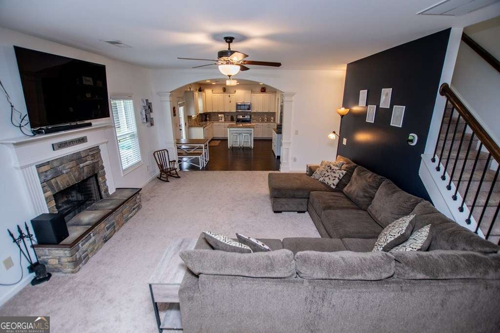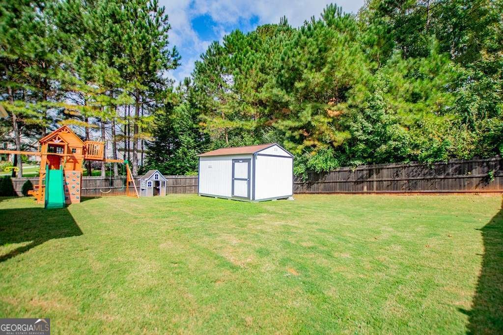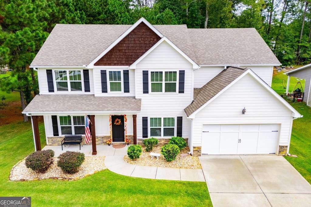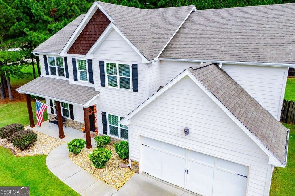 Gorgeous home in the award winning Bremen School district. Built in 2017, it is stylish and sophisticated with all the bells and whistles. The main level features a guest bedroom and full bath, formal dining, office/formal den, living room with fireplace open to the kitchen which is equipped with granite, walk in pantry, and island. My favorite feature might be the mudroom between the garage and kitchen to hold those jackets, shoes, backpacks, and sports equipment. The back yard is privacy fenced and has a new storage building. Upstairs, you'll find the expansive master suite whose bath features a tiled shower, soaking tub, and double vanities. There are 2 more bedrooms, oversized laundry, full bath, and loft area currently used for a TV/game room. This home sits at the back of the subdivision, so you get very little traffic and is on a beautiful lot walking distance to the neighborhood pool.