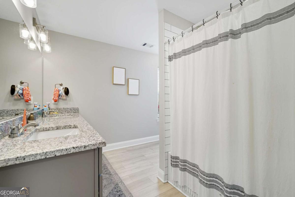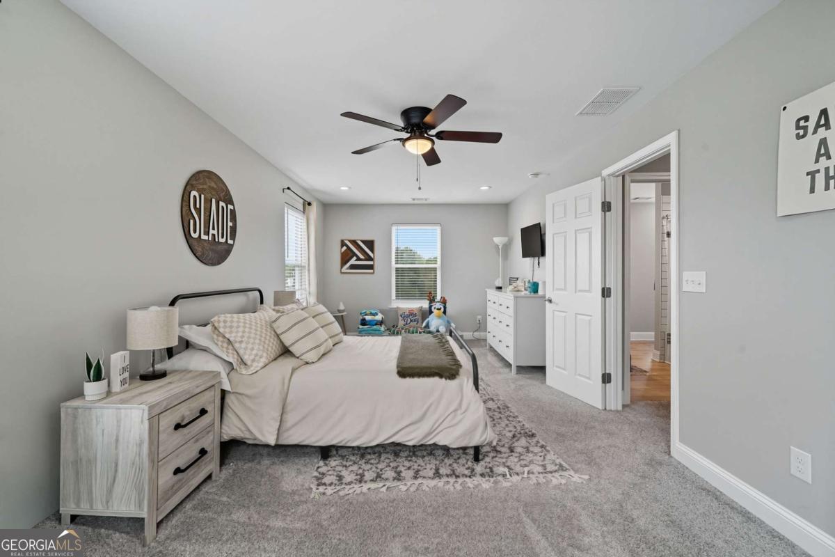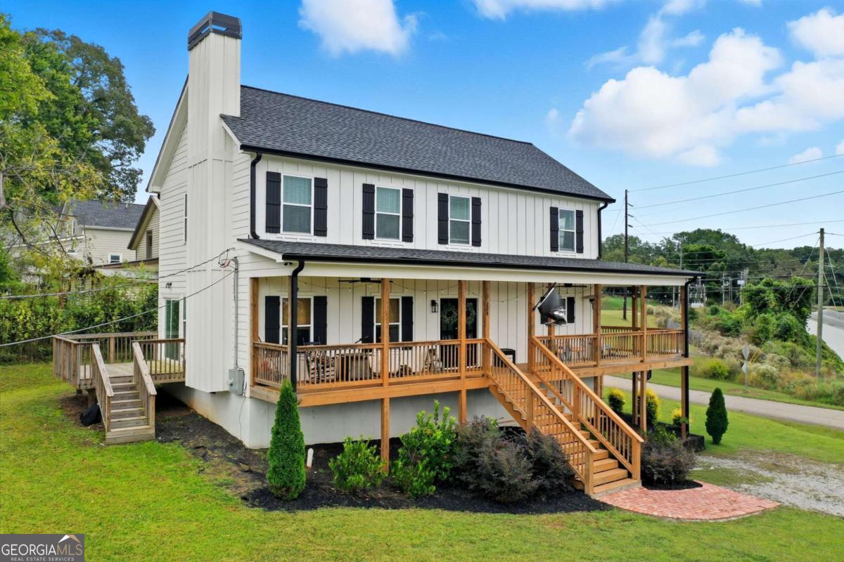 Welcome to scenic Nelson, Georgia! This custom-built 2023 home perfectly blends small-town charm with modern design. Featuring 3 bedrooms, 2.5 bathrooms, and 2,064 sq. ft., this thoughtfully designed two-story home sits on a corner quarter-acre lot in beautiful Pickens County. As you arrive, you'll be greeted by an inviting wraparound porch-the perfect spot to relax and take in the views. The walkway is accented with 100-year-old reclaimed brick from a historic chimney, giving the home a timeless touch of character and history. Inside, the main level showcases an open and welcoming layout. The primary suite is conveniently located on the main floor and features a walk-in closet plus private deck access for morning coffee or evening relaxation. The primary bath includes dual granite vanities and a tiled walk-in shower. The family room offers a cozy fireplace for gathering, while the chef's kitchen impresses with white cabinetry, granite countertops, ample storage, and a spacious dining area. You'll also find a walk-in laundry room and a half bath-ideal for guests. Upstairs are two generous bedrooms connected by a Jack-and-Jill bathroom with granite countertops and a tiled tub/shower combo. Enjoy peace and quiet with no noise from the nearby marble quarry, and take advantage of the community park and playground just moments away! This location truly has it all-minutes to downtown Ball Ground for shopping and dining, and quick access to I-515 for easy travel north to Jasper, Ellijay, or Blue Ridge, or south to Riverstone Parkway in Canton. Don't miss your chance to own this stunning custom home combining charm, convenience, and quality craftsmanship in the heart of Nelson, Georgia!