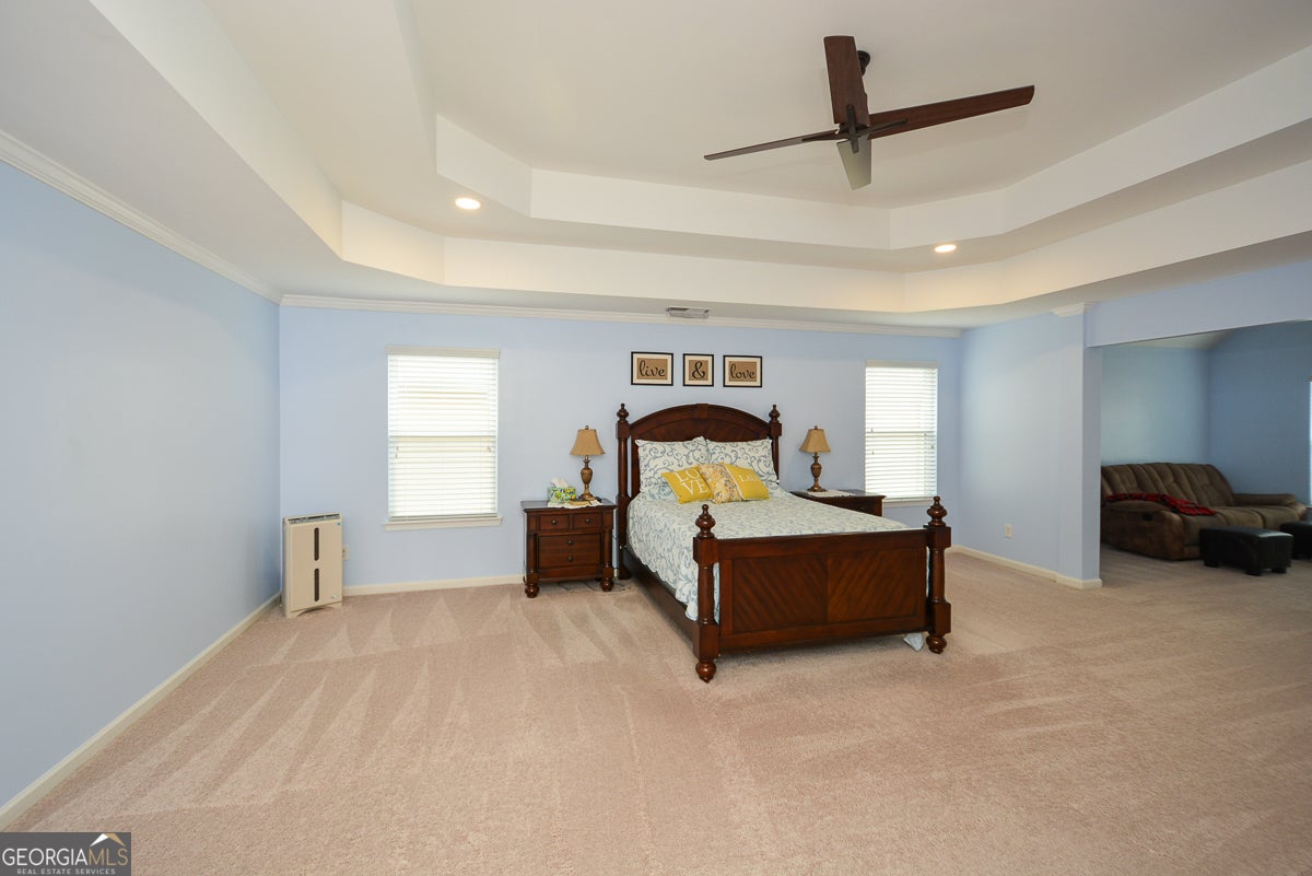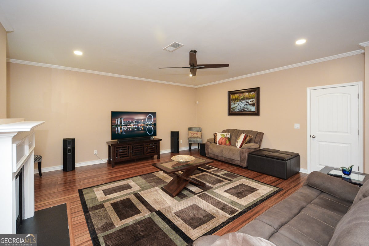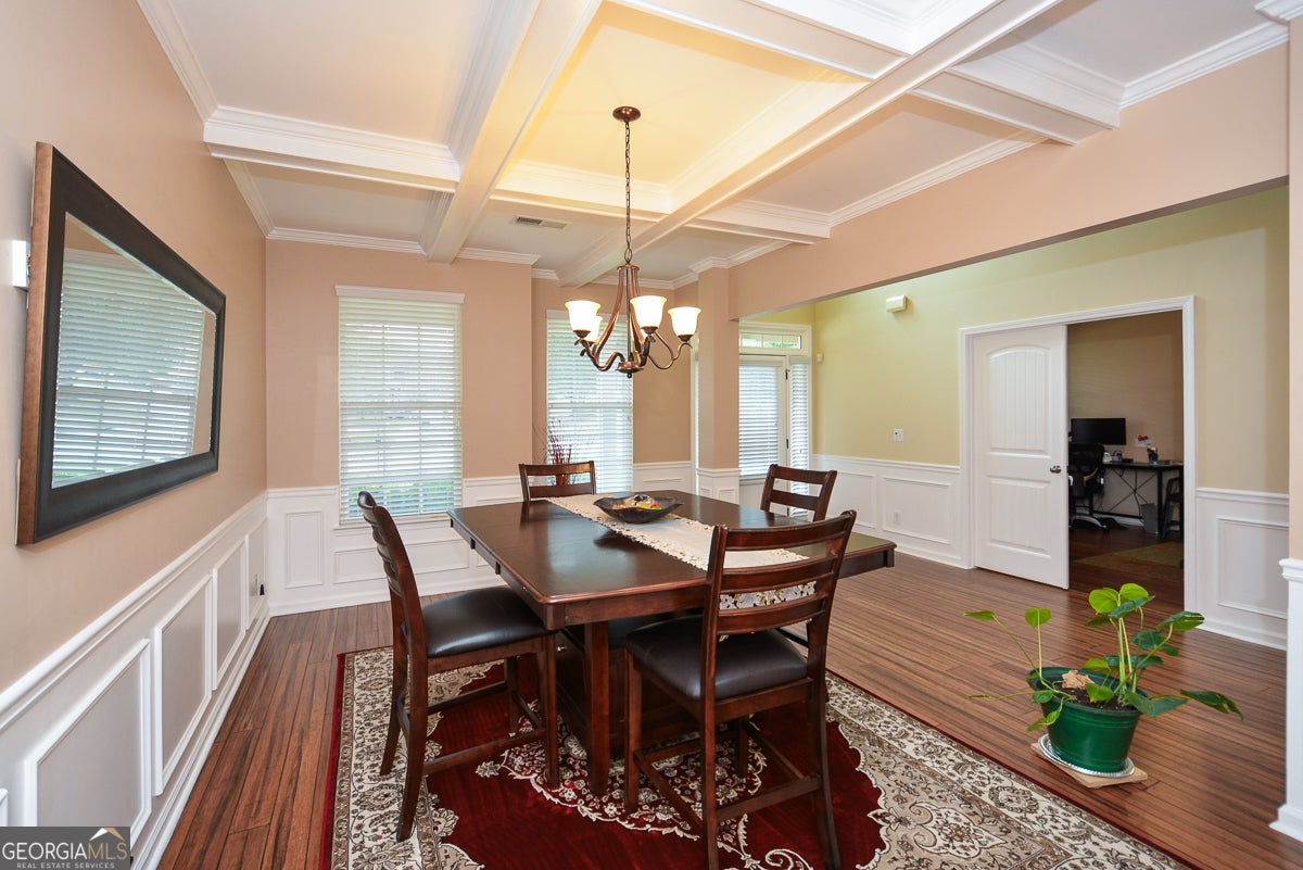Come experience this meticulously maintained & spacious home where elegance meets functional living. This stunning home features an open concept layout with luxury upgrades throughout. Highlights on the main level include a 2-Story Foyer, Formal Living Room, Coffered Ceiling in the Dining Room, Bamboo Wood Floors, Iron Stair Rails, Beadboard Paneling and Extensive Trim work throughout. Guest Room on the main with a full bath can be used as an office or flex space. The Chef's Kitchen boasts Granite Countertops, Stainless Steel Appliances, Double Convection Ovens, Gas Cooktop, Huge Island with Breakfast Bar & Butler's Pantry with Wine Rack & Mini Fridge. Kitchen opens to oversized Eat In Area & Family Room with Fireplace. Primary Bedroom is HUGE; with Sitting Room, Double Tray Ceiling, His/Her Walk-in Closets & opens to Luxury Spa Bath with Vaulted Ceiling, Garden Tub & Shower with Frameless Glass Enclosure. All 3 Additional Bedrooms are oversized & 1 has a private bath. Owner thoughtfully added a Glass Enclosed Sunroom, offering stunning wooded views & direct access to the backyard, kitchen & family room. This move in ready home has upgrades galore including freshly painted interior, new light fixtures, new faucets, new cabinet hardware & more. Washer and Dryer stays. Home offers an abundance of closets and additional storage. Community amenities include swimming, tennis, clubhouse, playground & park area. Conveniently located near shops, restaurants & the Silver Comet Trail.