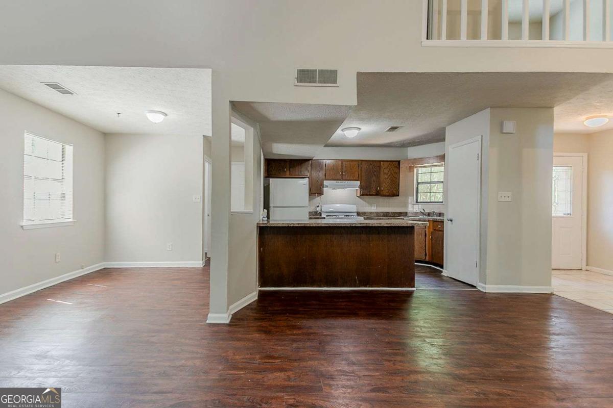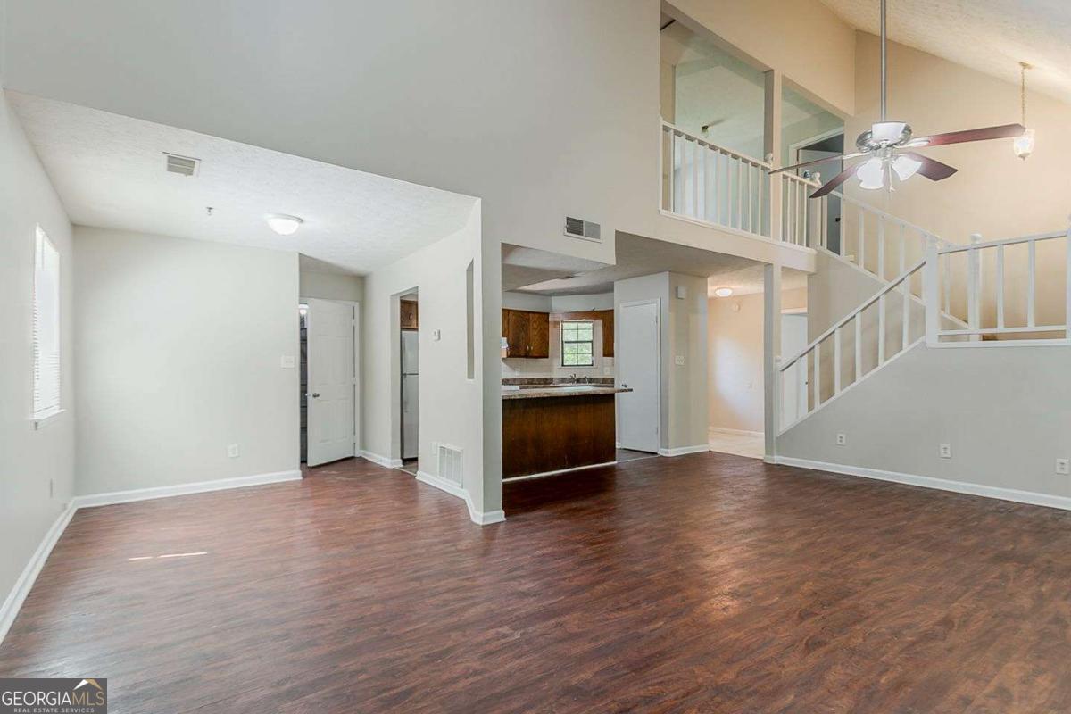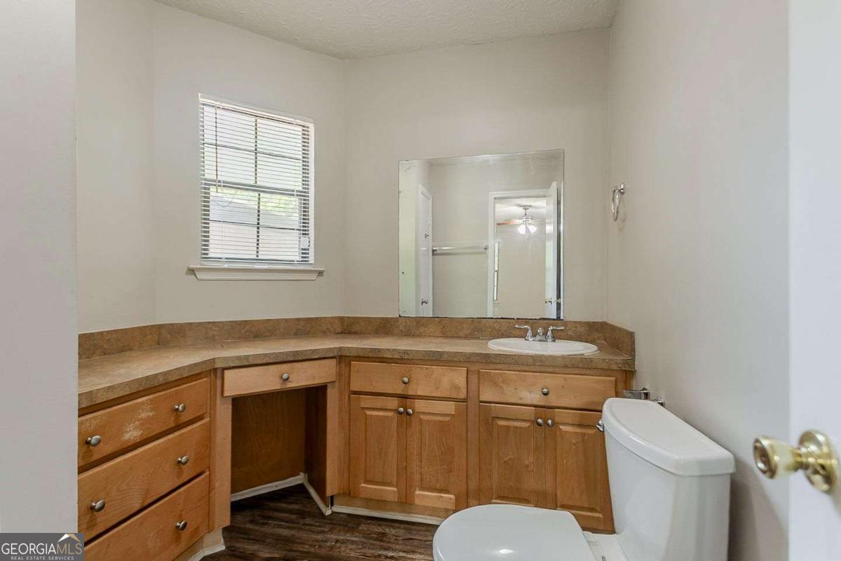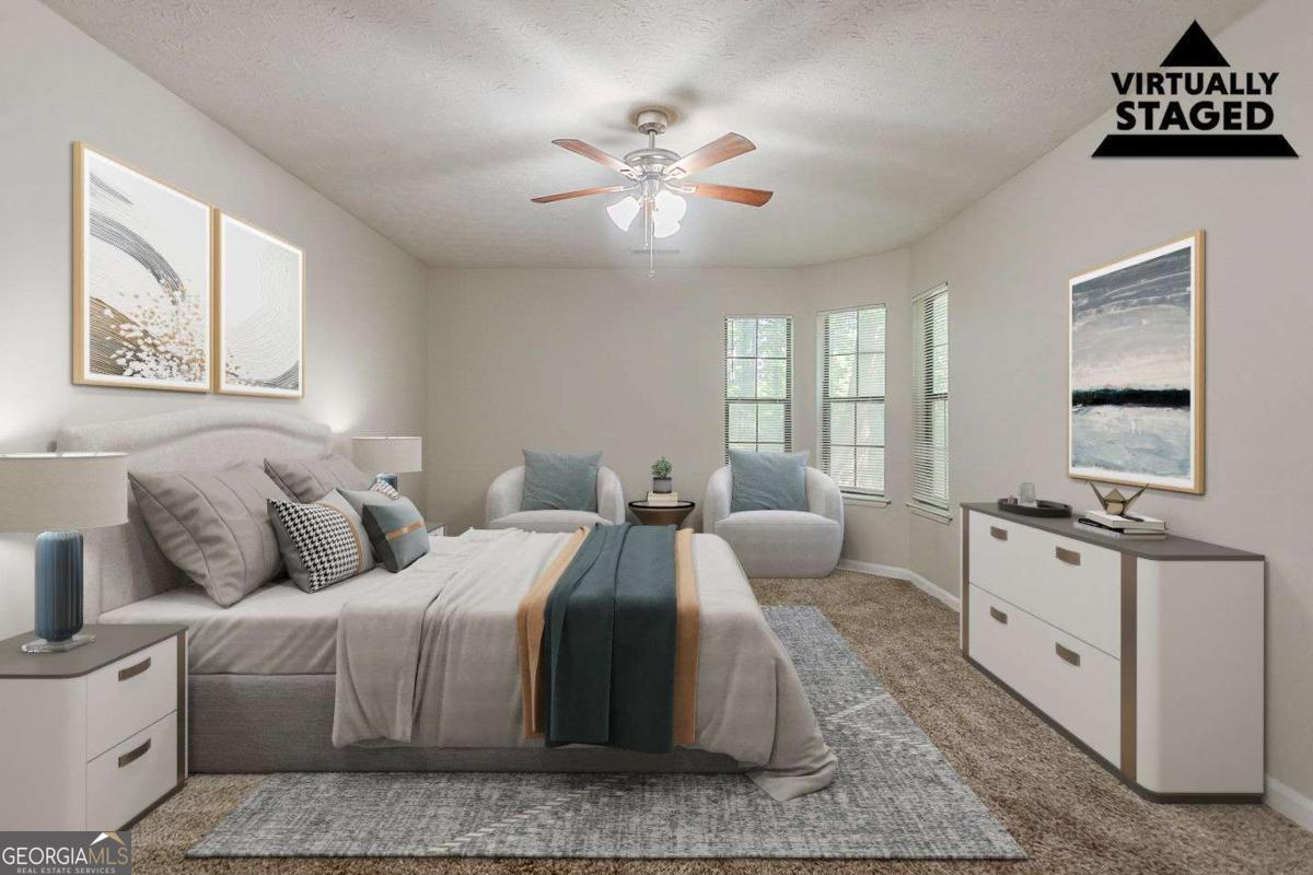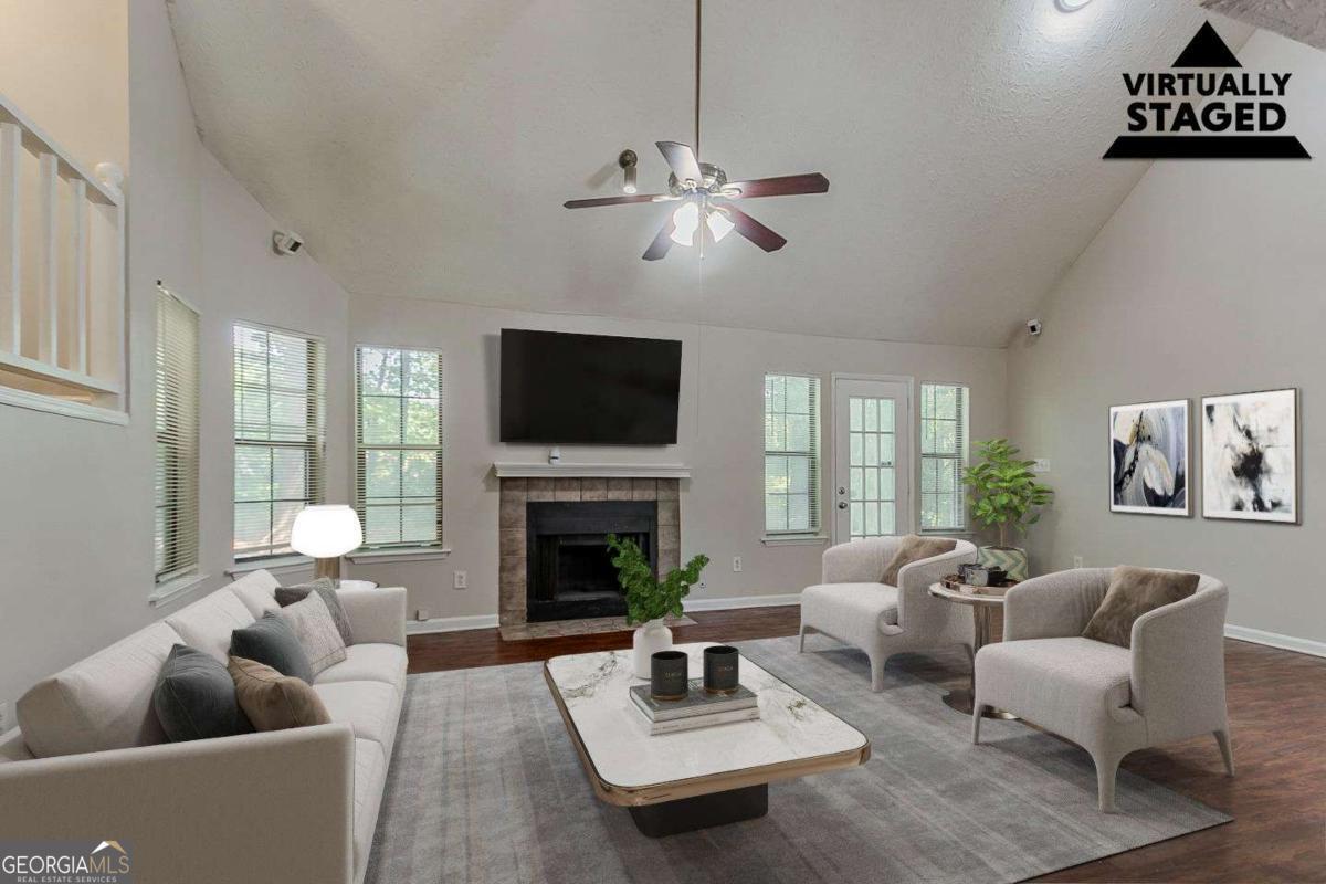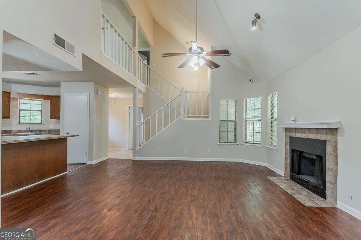 Spacious 3-bedroom, 2.5-bathroom traditional home located in the Crystal Lakes community of Stone Mountain. This two-story property offers a bright main level with a large living room featuring a fireplace, a separate dining area, and an eat-in kitchen with stained cabinetry and a breakfast bar. A versatile upstairs loft offers additional flex space-perfect for a home office or bonus lounge. The oversized primary suite includes a soaking tub, dual sinks, and a walk-in closet. Outside, enjoy a wooded and private backyard, a fenced yard, and an attached two-car garage. With over 2,000 square feet and a flexible layout, this home presents a great opportunity to personalize in a well-established neighborhood just minutes from major roads, schools, and local parks.