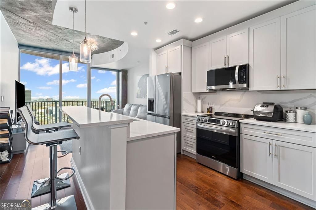 As if location was not enough... Let's talk about updates! This one bedroom/one bath condo in the heart of downtown ATL on the 24th floor at The Twelve has had a complete makeover in the past year. New paint throughout the condo including ceilings, New A/C and Heater with smart controls, New light fixtures throughout, New closet system installed, Motorized Levolor UV light shades installed, All new wood soft close cabinets with pull out drawers for easy storage, Quartz countertop and backsplash installed, Multi function large capacity sink in the kitchen with new disposal, All new LG ThinQ Smart appliances in kitchen, new LG stackable Washer/dryer, Premium Beverage/wine cooler installed. Amazing view of the city and PREMIUM PARKING SPOT on the main level close to the entrance. Resort style Amenties at The Twelve include 24-hour concierge, business center, state- of- the-art fitness center, lounging area, theater, saltwater pool, fire pit, and designated grilling area. Close proximity to MARTA civic center station, Georgia Aquarium, World of Coca- Cola, Emory Hospital and many more of ATL's top attractions. Easy access to I-75 & I-85. Furniture is negotiable. Move in Ready- All updates have been done for the new buyer!