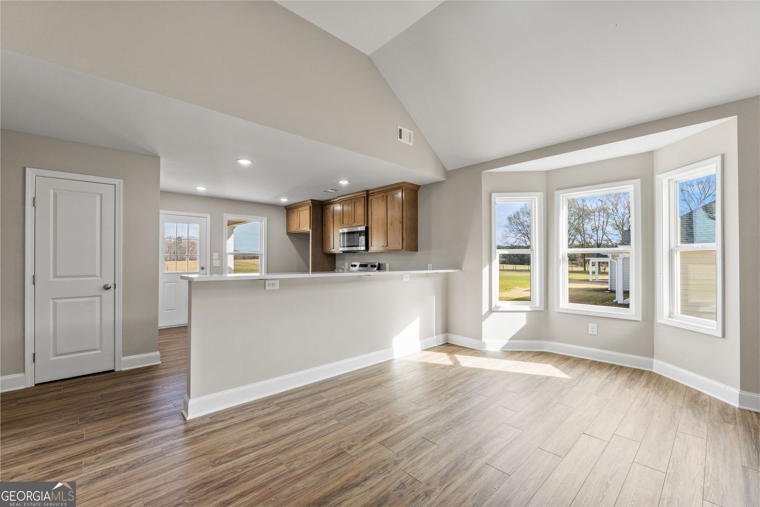 Charming Brand New Construction under $300K in the sweet town of Milner! Constructed of sturdy Hardie siding, this adorable ranch home offers 4 bedrooms and 2 full baths all on one level. Open living concept with a soaring vaulted ceiling, spacious family room, dedicated dining area with bay window, and a kitchen that opens to the living space. The kitchen features real solid stained wood cabinetry with soft close hinges, sparkling white quartz countertops, a breakfast bar for countertop seating, and stainless steel appliances to include the dishwasher, range/oven, and built-in microwave. The primary suite is tucked away from the secondary bedrooms and has a private ensuite bath and 2 closets. The secondary bedrooms share a hall with the 2nd full bath. There's LVP hardwood-look flooring throughout and no carpet here! Covered front and rear porches, both with rustic wood planked ceilings. Easy to maintain .46+/- acre level lot with sod and landscape. There's a large concrete drive with an extra parking pad for multiple vehicles. Total electric utilities and on public water and sewer! Located in the sweet quiet town of Milner. Easy access to Hwy 16, Hwy 36, and I-75 for commuter and easy access to Barnesville, Milner, Griffin, Zebulon, and Forsyth. Use the preferred lender and receive 1% of the loan amount to use towards closing costs and/or rate buy down. Home is complete and can close asap.
