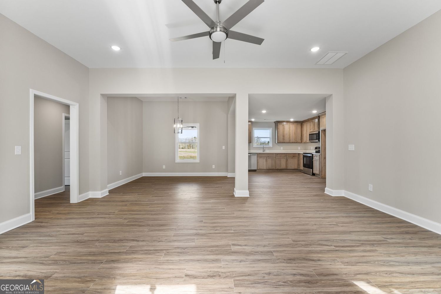 Better hurry! This one won't be here long! Affordable brand new construction ranch home with 4 bedrooms and 2 full baths in the sweet town of Milner (Lamar County)! This is a unicorn! One story ranch floorplan with all four bedrooms on the main level. Family room, designated formal dining room, and nice kitchen all in an open floorplan for easy living and gathering! LVP hardwood-look flooring throughout the entire home (no carpet here), stainless steel appliances, real stained wood kitchen cabinetry with soft close hinges, and sparkling white quartz countertops in the kitchen and both bathrooms. Great split bedroom layout with the primary suite on one side and a hall with the secondary beds and bathroom on the opposite side of the home. The primary suite offers a tray ceiling, walk in closet, and large vanity with granite countertop. Spacious laundry room and a 2 car garage with automatic openers round out this home. Outside you'll find covered front and rear porches with rustic wood ceilings overlooking the great level yard space. Easy to maintain .46+/- acre level lot with sodded yard and landscape. Sturdy low maintenance Hardie sided with lifetime architectural roof! Total electric utilities and on public water and sewer! Located in the sweet and quiet town of Milner. Easy access to Hwy 16, Hwy 36, and I-75 for commuters and easy to travel to nearby Milner, Barnesville, Griffin, Zebulon, and Forsyth. The preferred lender will offer 1% of the loan amount back towards closing costs/prepaids/rate buy down if utilized. home is complete and ready to close!