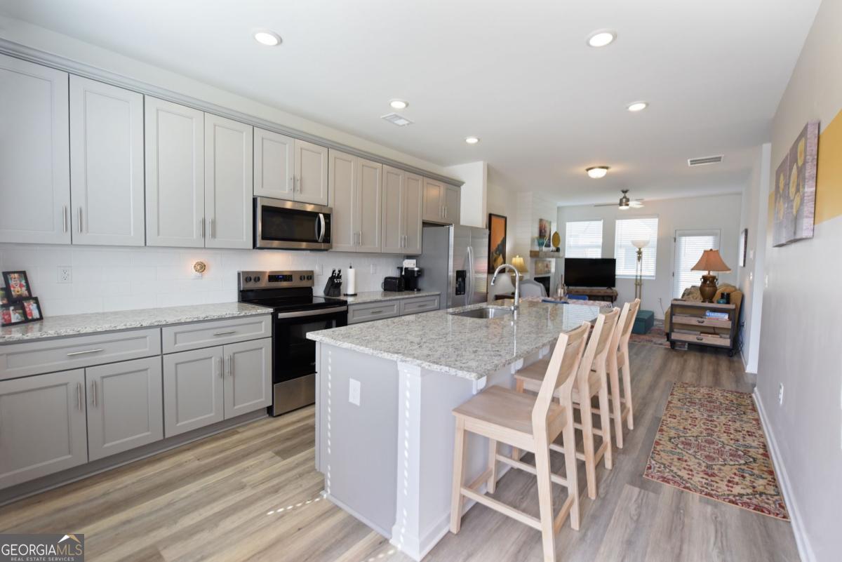 2025 Build - CONVENIENT AND AFFORDABLE! 1 BR, 1 BA 1-story townhouse in a new development known as the Grove of Blue Ridge. END UNIT adjacent to common area green space. LVP flooring throughout, high ceilings, Abundant Natural Light. HUGE Kitchen w/ lots of storage. Granite c-top and 8+ ft island w/sink and D/W. Great rm has contemporary electric fireplace (warmth without the work!) Long-term rentals are allowed. Great location, close to North Carolina and Tennessee. Minutes to downtown Blue Ridge, shopping, Aska adventure area, Lake Blue Ridge, fine dining and more! HOA dues include mowing, road maintenance and trash removal. Own a piece of Blue Ridge for under $260,000.