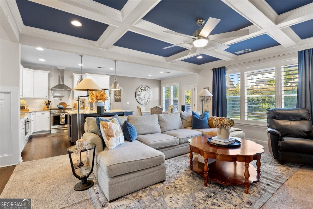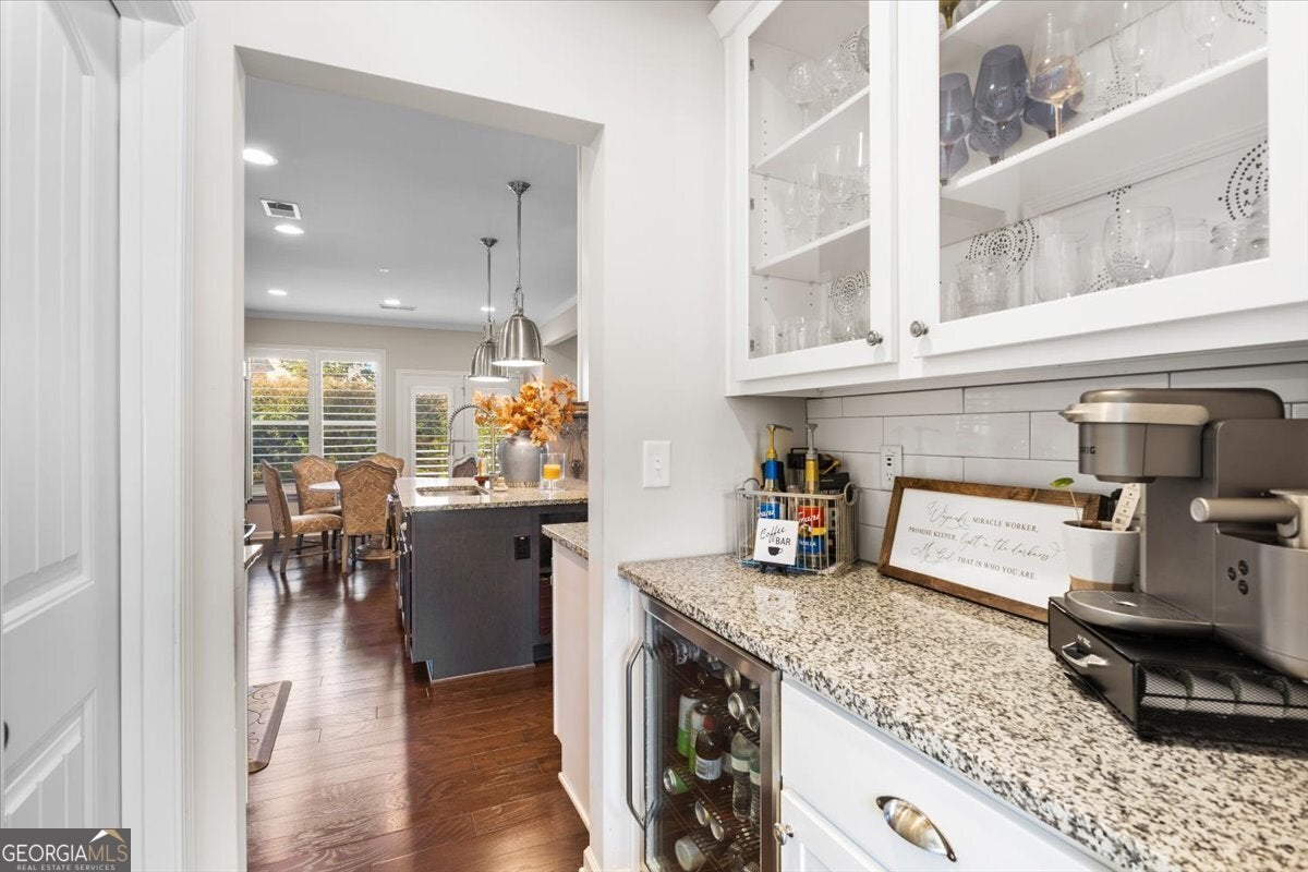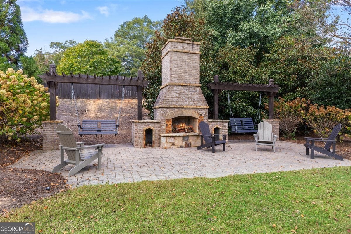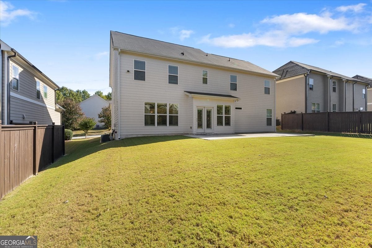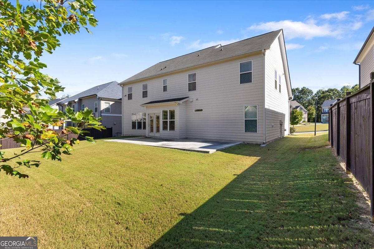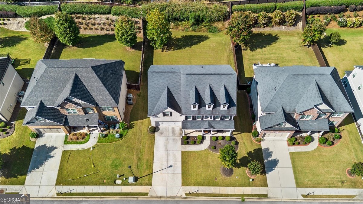 Perfectly positioned in the heart of Buford, this traditional two-story home blends timeless charm, modern comforts, and an unbeatable location. Enjoy close proximity to TOP-RATED SCHOOLS, as well as endless options for shopping, dining, and year-round entertainment. The home's brick front, distinct dormers, and covered rocking chair porch with classic columns create desirable curb appeal. Step through the NEW STEEL FRONT DOOR into an inviting foyer flanked by a formal sitting room or home office and a dining room with craftsman-style trim. A BUTLER'S PANTRY with beverage cooler connects the dining room to the open-concept great room, featuring a floor-to-ceiling ship-lap fireplace with custom built-ins, coffered ceiling, and ample space for entertaining. The eat-in kitchen is both stylish and functional with a center island and breakfast bar, HIGH-END APPLIANCES, stainless range hood, pot filler, subway tile backsplash, granite countertops, and a comfortable dining nook. Updated lighting throughout the main level adds warmth and character to every space. Off the garage, the mudroom serves as a practical drop zone for daily living. A MAIN LEVEL BEDROOM and full bath with a ship-lap accent wall offer an inviting space for guests or multi-generational living. Upstairs, a spacious landing leads to the OVERSIZED PRIMARY SUITE, highlighted by a tray ceiling, double vanity, walk-in shower with two shower heads, garden tub, and dual closets. Two additional bedrooms, a full bath, and a convenient upstairs laundry room provide comfort and convenience. The BONUS ROOM, currently serving as a media room, comes complete with custom lighting and a FULL MEDIA SYSTEM for movie nights or game days. Additional features include barn doors, plantation shutters, hardwood flooring, and new soft-close toilets in all bathrooms for thoughtful touches that elevate the home's overall design and livability. Step outside to a spacious EXTENDED PATIO overlooking the LEVEL BACKYARD, ready to be customized into an outdoor area you love. Whether you envision a cozy fire pit, lounge area, or space to dine under the stars, this property offers the perfect layout for enjoying every season. Spend weekends at Bogan Park, on nearby golf courses, or take a short drive to Lake Lanier for boating, fishing, and outdoor adventures. The community amenities enhance your lifestyle with an Olympic-style pool featuring a shallow area for little swimmers, tennis and pickleball courts, and an outdoor fireplace, perfect for relaxing or gathering with neighbors.