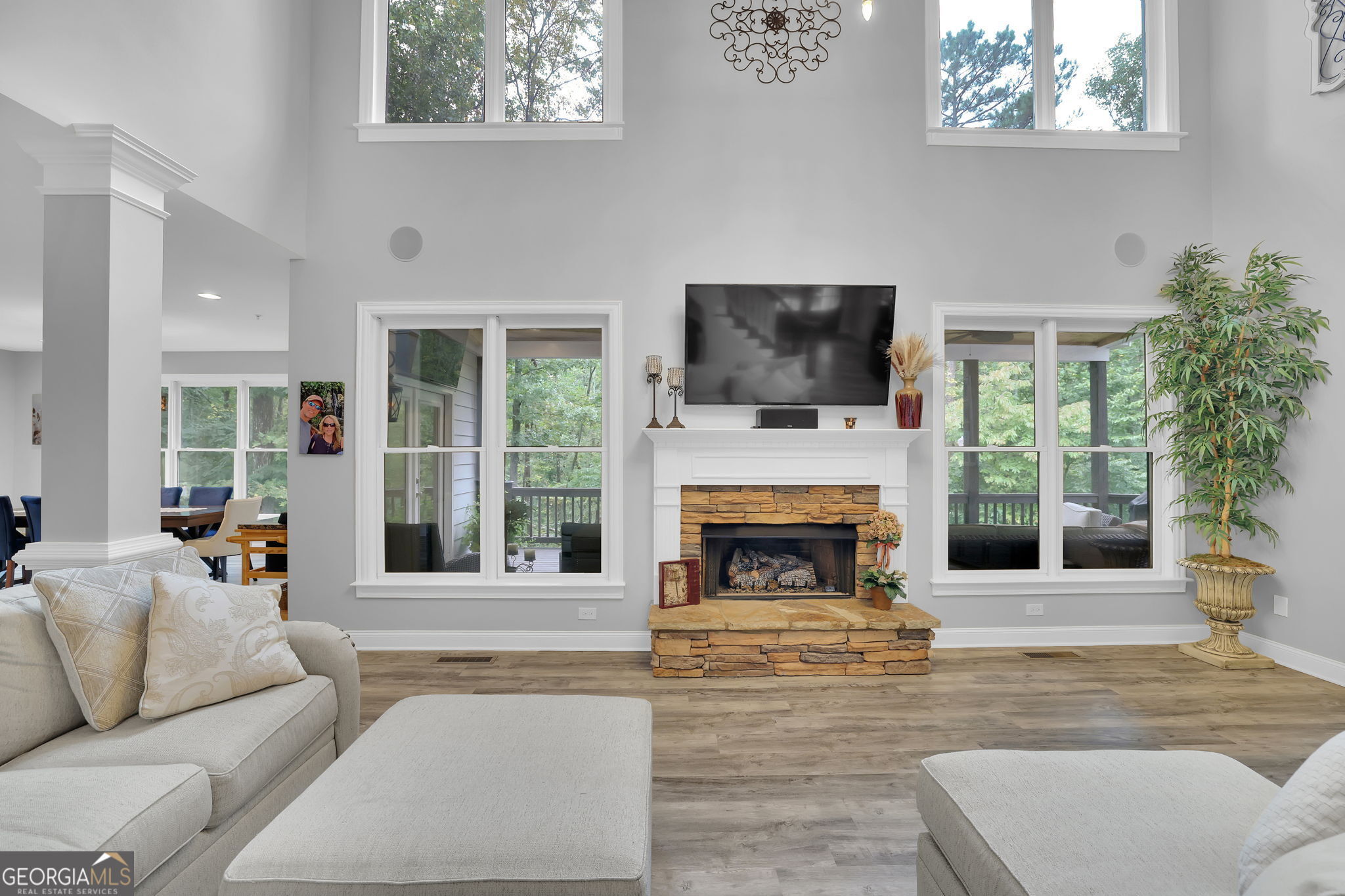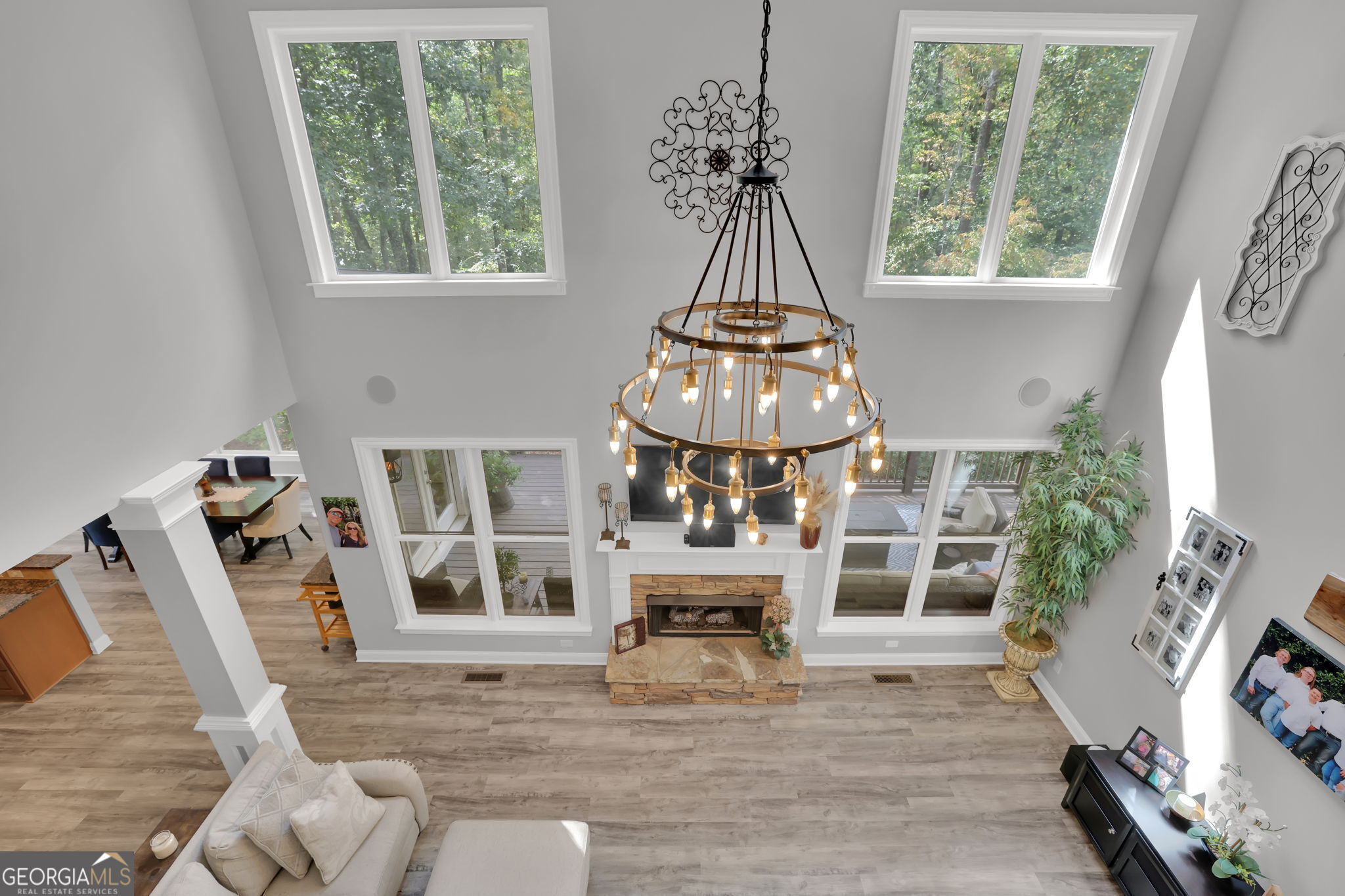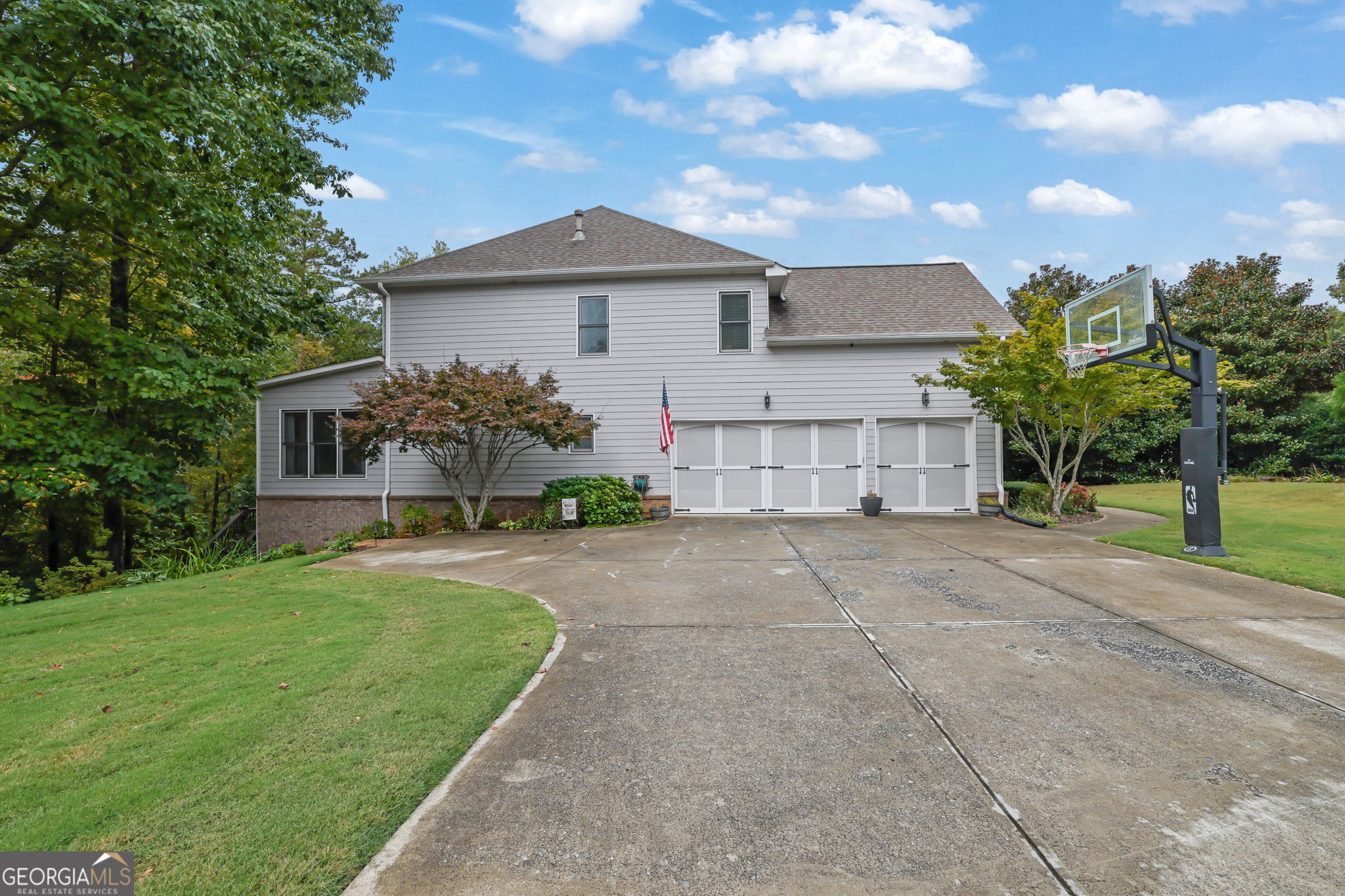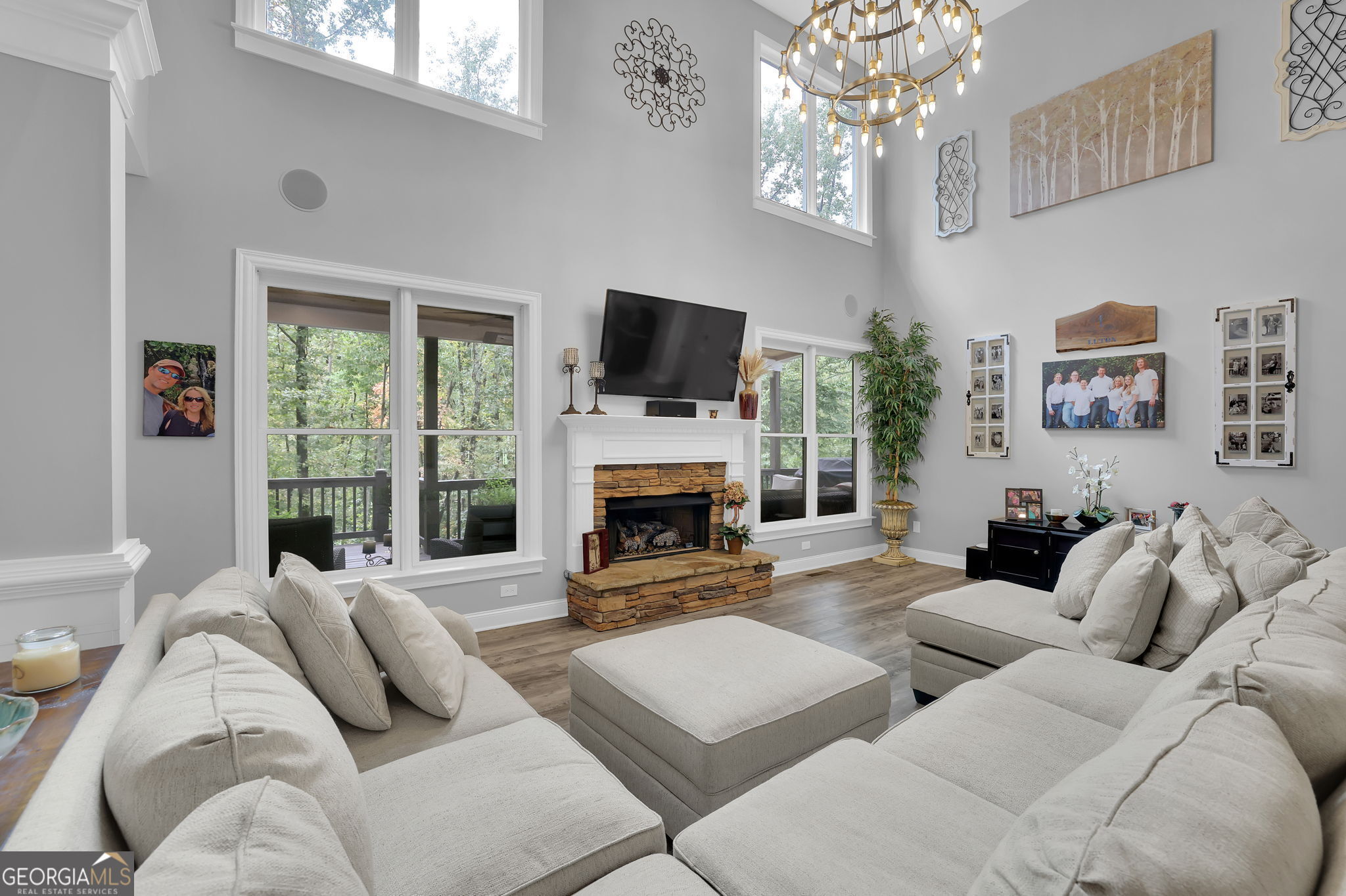 Welcome to 6010 Anchorage Quay (with deeded slip on private dock) - Lake Lanier Luxury Living at its Finest! Nestled in a quiet 10-home enclave within the prestigious gated community of St. Michaels Bay, this gorgeous 6-bedroom, 4.5-bath estate home offers the perfect blend of elegance, comfort, and lake life. This home has been extensively renovated over the past few years including updates to all flooring, bathrooms, exterior deck, patio, and back yard. With access to a private 10 slip boat dock, this property has one of the 10 slips that is deeded to the property! This is your opportunity to enjoy Lake Lanier living within a short walk or golf cart ride away to your own slip. Step inside the inviting rocking chair front porch and into the elegant foyer, where French doors open to a private den/office with custom built-in bookcases. A separate dining room with a bay window, crown molding, and wainscoting sets the stage for memorable gatherings. The heart of the home is the two-story family room, featuring a wall of windows that floods the space with natural light and a stacked-stone fireplace that adds warmth and charm. The gourmet kitchen is a chef's dream with a massive granite island with wrap-around seating, double wall ovens, gas cooktop, walk-in pantry, coffee bar, and a casual breakfast room overlooking the lush backyard. A main-level guest suite with a private bath offers convenience and comfort, while a mudroom with ample storage keeps everything organized. Upstairs, an open balcony overlooks the great room and leads to an oversized loft/living area. The luxurious primary suite is a true retreat, featuring a tray ceiling, sitting area, and a fully remodeled spa bath with vaulted ceilings, a frameless tile shower, separate soaking tub, dual granite vanities, one oversized walk-in closet and a separate custom built deluxe closet/suite with a center island. Three additional bedrooms complete the upper level with two sharing an updated Jack-and-Jill bathroom. The laundry room is conveniently located upstairs and includes a sink and additional cabinetry. The fourth level is perfect for a movie/gaming room or whatever your heart desires. This level comes with a half bath. The fully finished basement provides exceptional entertaining space with a granite wet bar (complete with wrap-around seating and wine fridge), recreation room, exercise room, guest room, full bath, and additional living area. Step outside to your brand new covered back deck and covered patio overlooking the beautifully landscaped backyard, complete with flowering shrubs, landscape lighting, stepping stones, perimeter hedges, and a fire pit-all backing up to 10+ acres of protected Army Corps of Engineers land for unmatched privacy and direct access to Lake Lanier. Additional features include a three-car garage with charging station and extra parking pad, four HVAC units (three replaced within the last two years), whole-house water filtration system, and basement dehumidifier connected to the HVAC system. Located in the East Forsyth school district, St. Michaels Bay offers luxury amenities including tennis and pickleball courts, a clubhouse, resort-style pool, playground, nature trails, and a community dock for residents. Schedule your private tour today!