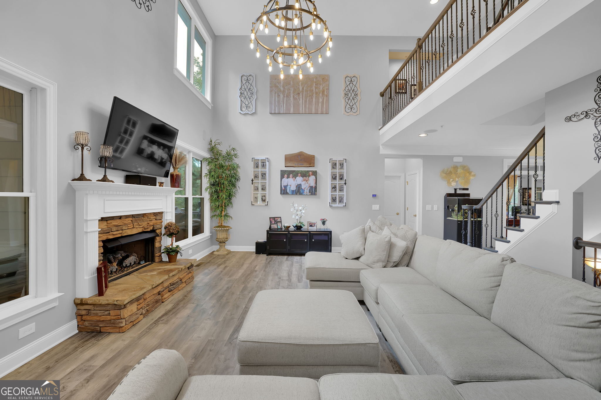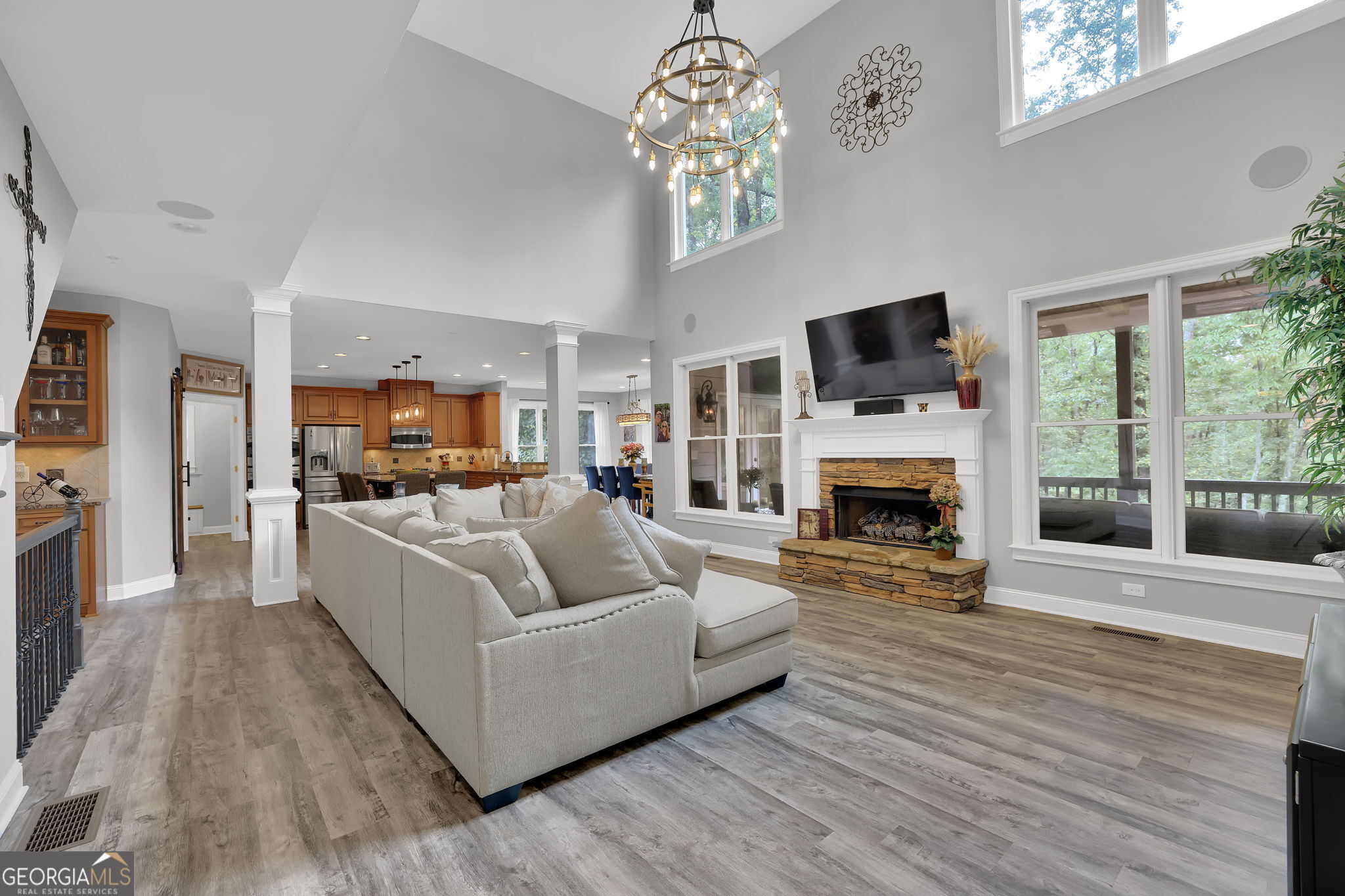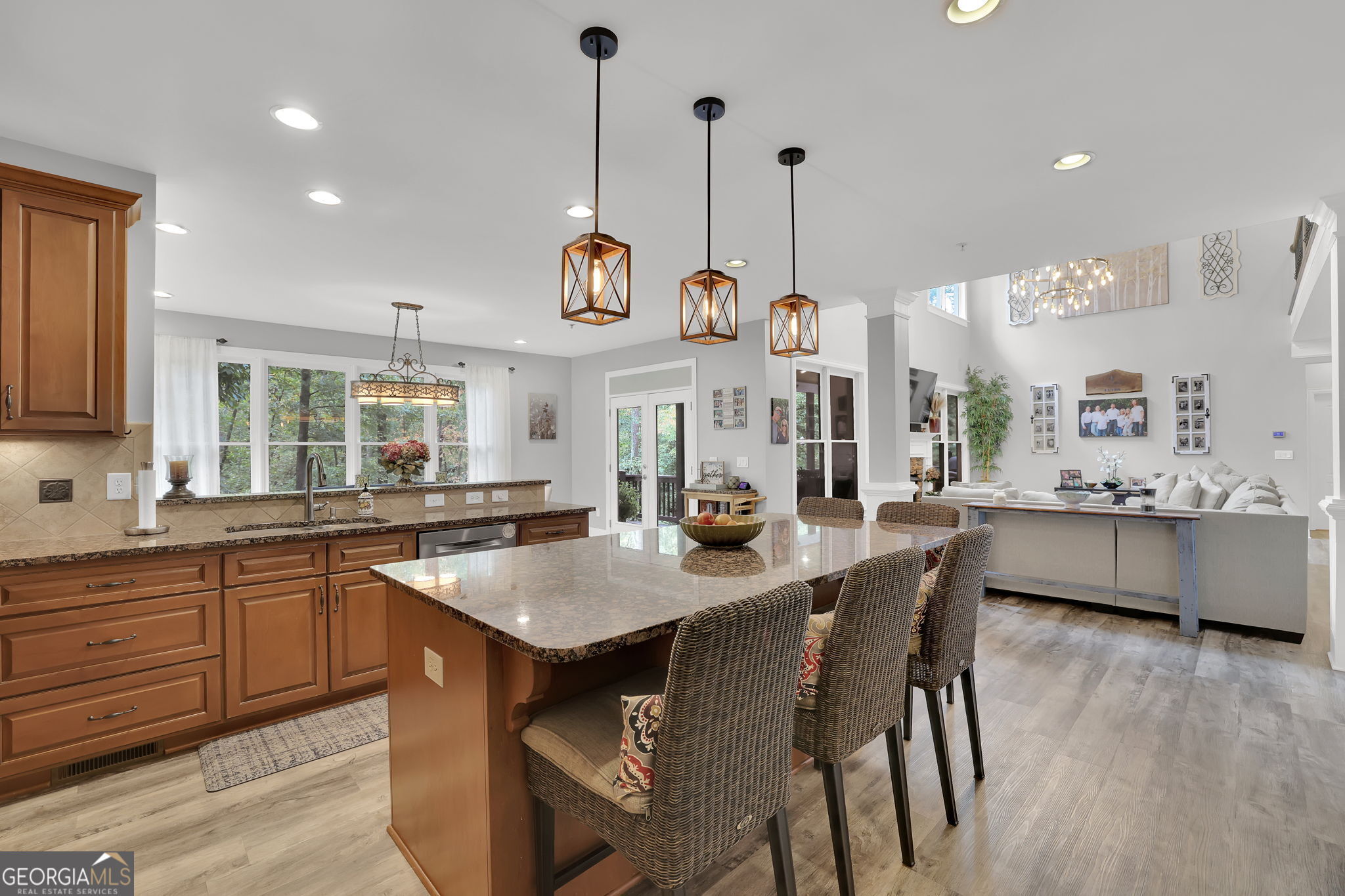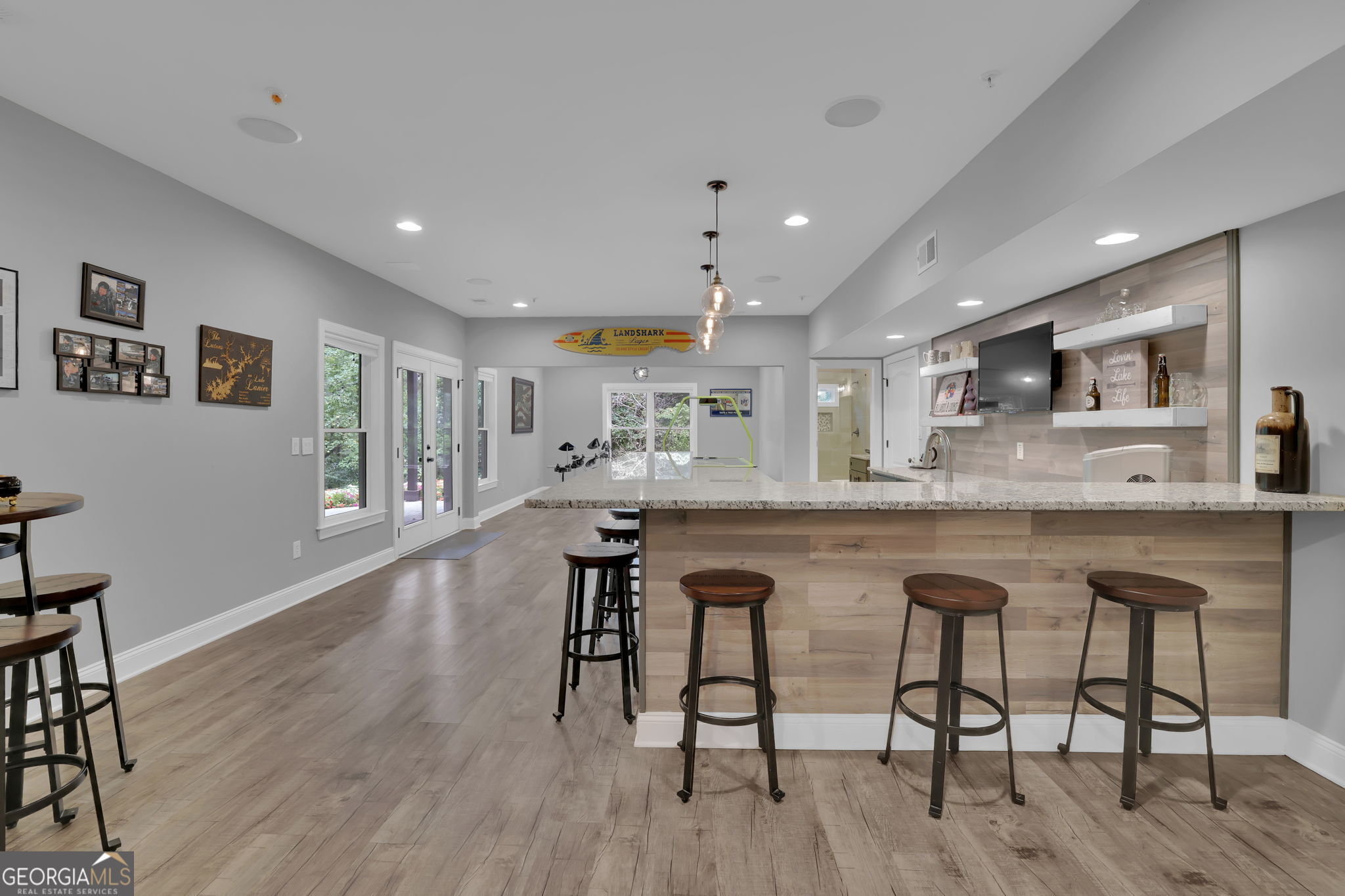 Welcome to 6010 Anchorage Quay (with deeded slip on private dock) - Lake Lanier Luxury Living at its Finest! Nestled in a quiet 10-home enclave within the prestigious gated community of St. Michaels Bay, this gorgeous 6-bedroom, 4.5-bath estate home offers the perfect blend of elegance, comfort, and lake life. This home has been extensively renovated over the past few years including updates to all flooring, bathrooms, exterior deck, patio, and back yard. With access to a private 10 slip boat dock, this property has one of the 10 slips that is deeded to the property! This is your opportunity to enjoy Lake Lanier living within a short walk or golf cart ride away to your own slip. Step inside the inviting rocking chair front porch and into the elegant foyer, where French doors open to a private den/office with custom built-in bookcases. A separate dining room with a bay window, crown molding, and wainscoting sets the stage for memorable gatherings. The heart of the home is the two-story family room, featuring a wall of windows that floods the space with natural light and a stacked-stone fireplace that adds warmth and charm. The gourmet kitchen is a chef's dream with a massive granite island with wrap-around seating, double wall ovens, gas cooktop, walk-in pantry, coffee bar, and a casual breakfast room overlooking the lush backyard. A main-level guest suite with a private bath offers convenience and comfort, while a mudroom with ample storage keeps everything organized. Upstairs, an open balcony overlooks the great room and leads to an oversized loft/living area. The luxurious primary suite is a true retreat, featuring a tray ceiling, sitting area, and a fully remodeled spa bath with vaulted ceilings, a frameless tile shower, separate soaking tub, dual granite vanities, one oversized walk-in closet and a separate custom built deluxe closet/suite with a center island. Three additional bedrooms complete the upper level with two sharing an updated Jack-and-Jill bathroom. The laundry room is conveniently located upstairs and includes a sink and additional cabinetry. The fourth level is perfect for a movie/gaming room or whatever your heart desires. This level comes with a half bath. The fully finished basement provides exceptional entertaining space with a granite wet bar (complete with wrap-around seating and wine fridge), recreation room, exercise room, guest room, full bath, and additional living area. Step outside to your brand new covered back deck and covered patio overlooking the beautifully landscaped backyard, complete with flowering shrubs, landscape lighting, stepping stones, perimeter hedges, and a fire pit-all backing up to 10+ acres of protected Army Corps of Engineers land for unmatched privacy and direct access to Lake Lanier. Additional features include a three-car garage with charging station and extra parking pad, four HVAC units (three replaced within the last two years), whole-house water filtration system, and basement dehumidifier connected to the HVAC system. Located in the East Forsyth school district, St. Michaels Bay offers luxury amenities including tennis and pickleball courts, a clubhouse, resort-style pool, playground, nature trails, and a community dock for residents. Schedule your private tour today!