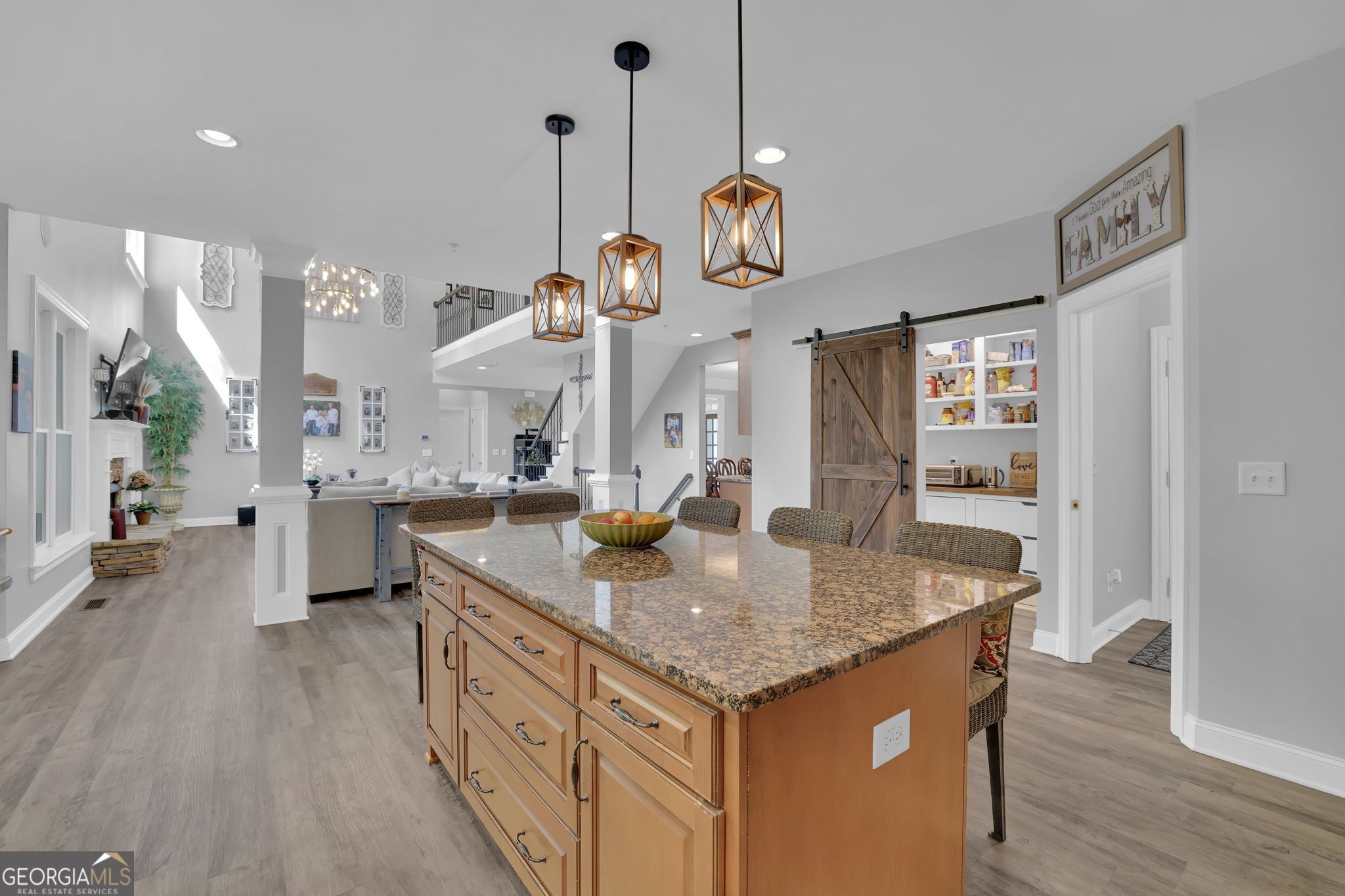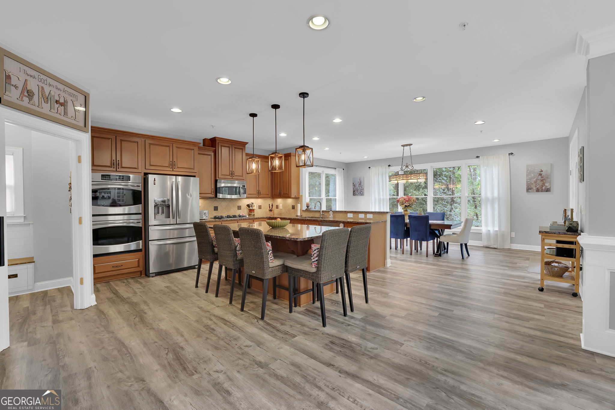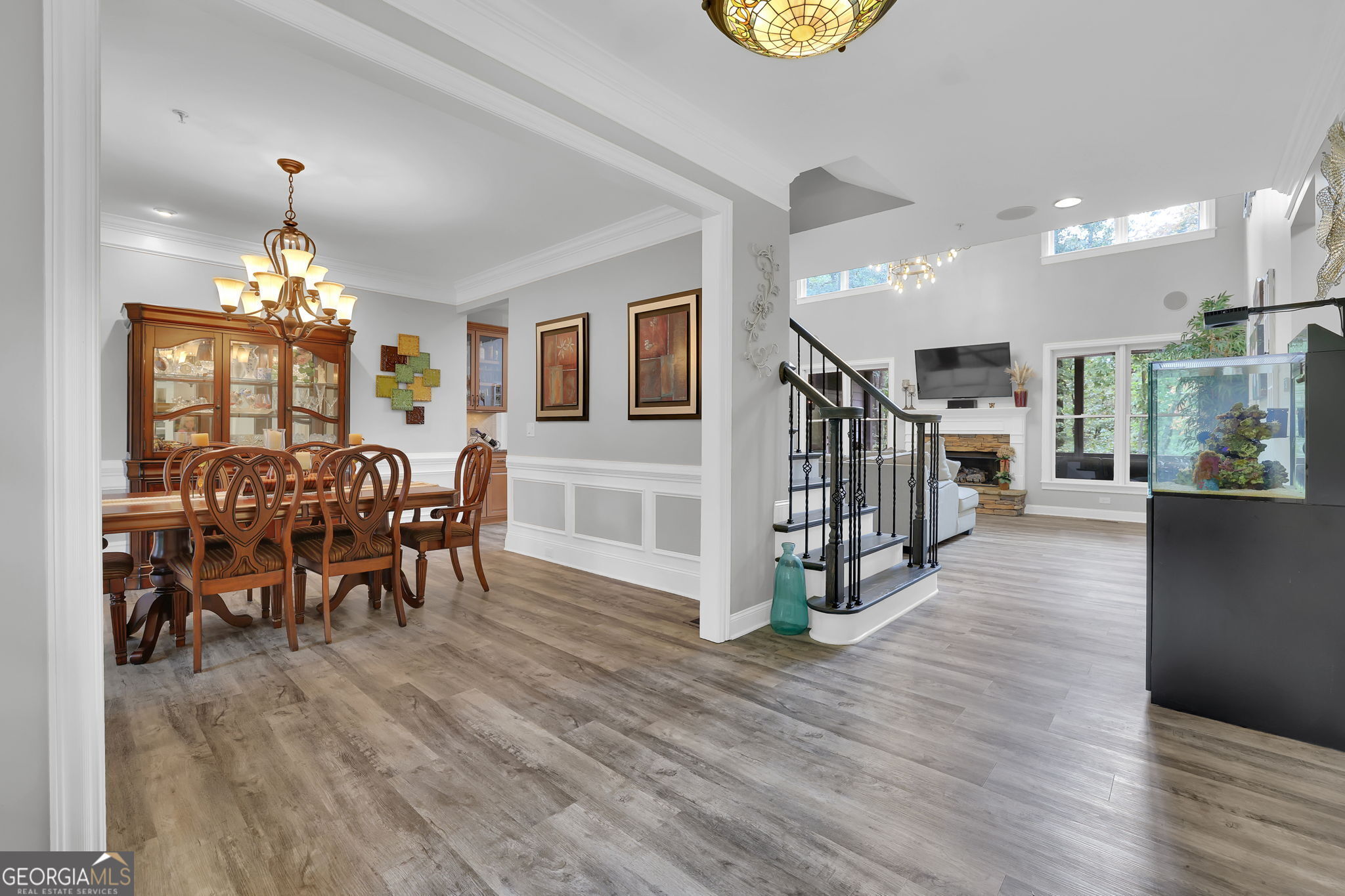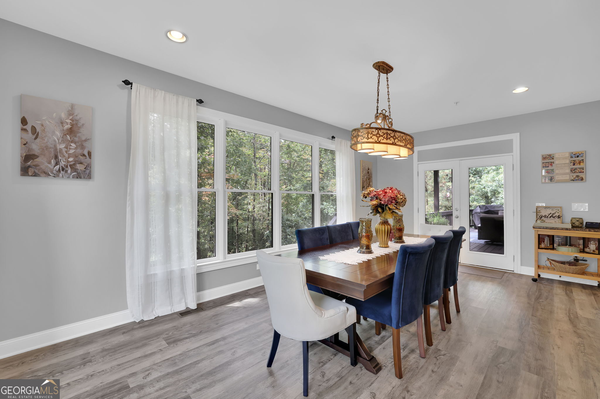 Welcome to 6010 Anchorage Quay (with deeded slip on private dock) - Lake Lanier Luxury Living at its Finest! Nestled in a quiet 10-home enclave within the prestigious gated community of St. Michaels Bay, this gorgeous 6-bedroom, 4.5-bath estate home offers the perfect blend of elegance, comfort, and lake life. This home has been extensively renovated over the past few years including updates to all flooring, bathrooms, exterior deck, patio, and back yard. With access to a private 10 slip boat dock, this property has one of the 10 slips that is deeded to the property! This is your opportunity to enjoy Lake Lanier living within a short walk or golf cart ride away to your own slip. Step inside the inviting rocking chair front porch and into the elegant foyer, where French doors open to a private den/office with custom built-in bookcases. A separate dining room with a bay window, crown molding, and wainscoting sets the stage for memorable gatherings. The heart of the home is the two-story family room, featuring a wall of windows that floods the space with natural light and a stacked-stone fireplace that adds warmth and charm. The gourmet kitchen is a chef's dream with a massive granite island with wrap-around seating, double wall ovens, gas cooktop, walk-in pantry, coffee bar, and a casual breakfast room overlooking the lush backyard. A main-level guest suite with a private bath offers convenience and comfort, while a mudroom with ample storage keeps everything organized. Upstairs, an open balcony overlooks the great room and leads to an oversized loft/living area. The luxurious primary suite is a true retreat, featuring a tray ceiling, sitting area, and a fully remodeled spa bath with vaulted ceilings, a frameless tile shower, separate soaking tub, dual granite vanities, one oversized walk-in closet and a separate custom built deluxe closet/suite with a center island. Three additional bedrooms complete the upper level with two sharing an updated Jack-and-Jill bathroom. The laundry room is conveniently located upstairs and includes a sink and additional cabinetry. The fourth level is perfect for a movie/gaming room or whatever your heart desires. This level comes with a half bath. The fully finished basement provides exceptional entertaining space with a granite wet bar (complete with wrap-around seating and wine fridge), recreation room, exercise room, guest room, full bath, and additional living area. Step outside to your brand new covered back deck and covered patio overlooking the beautifully landscaped backyard, complete with flowering shrubs, landscape lighting, stepping stones, perimeter hedges, and a fire pit-all backing up to 10+ acres of protected Army Corps of Engineers land for unmatched privacy and direct access to Lake Lanier. Additional features include a three-car garage with charging station and extra parking pad, four HVAC units (three replaced within the last two years), whole-house water filtration system, and basement dehumidifier connected to the HVAC system. Located in the East Forsyth school district, St. Michaels Bay offers luxury amenities including tennis and pickleball courts, a clubhouse, resort-style pool, playground, nature trails, and a community dock for residents. Schedule your private tour today!