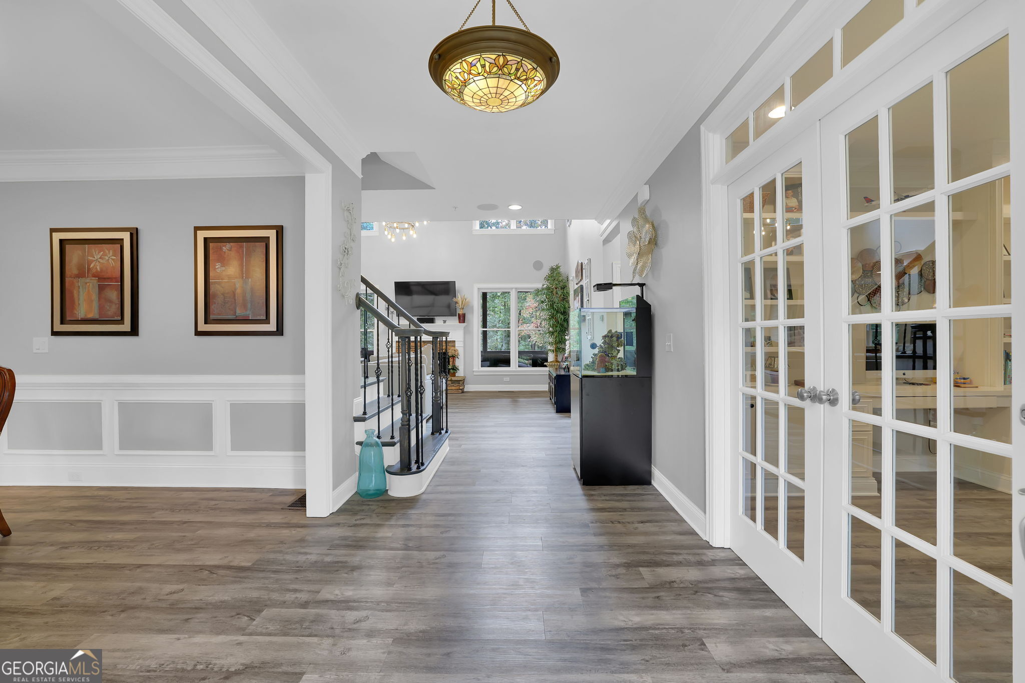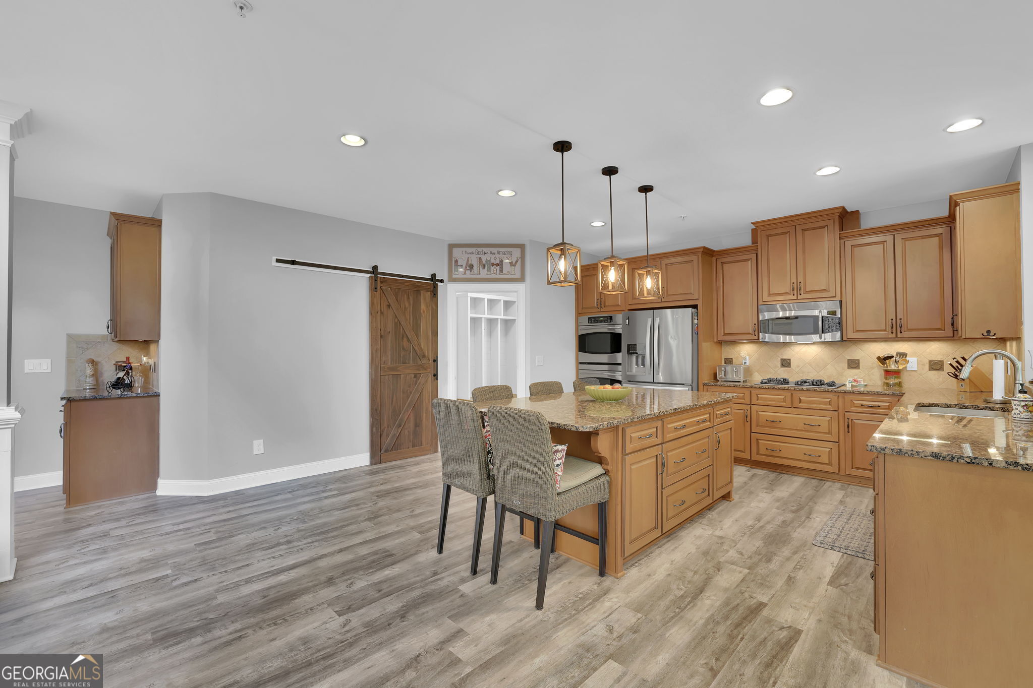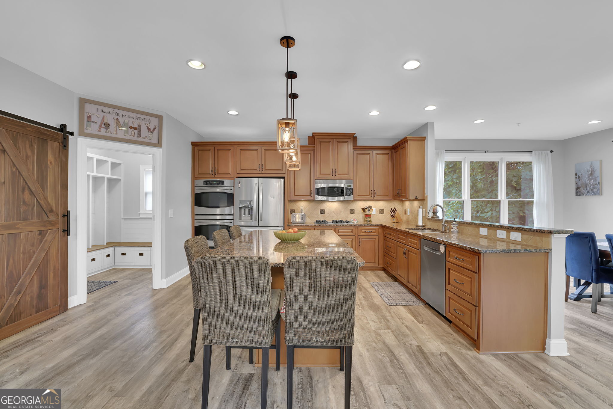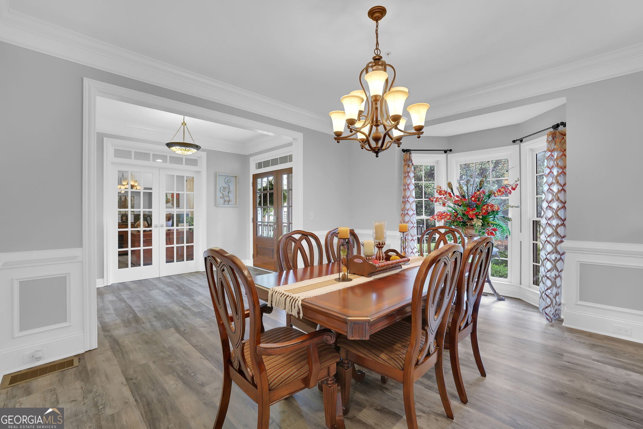 Welcome to 6010 Anchorage Quay (with deeded slip on private dock) - Lake Lanier Luxury Living at its Finest! Nestled in a quiet 10-home enclave within the prestigious gated community of St. Michaels Bay, this gorgeous 6-bedroom, 4.5-bath estate home offers the perfect blend of elegance, comfort, and lake life. This home has been extensively renovated over the past few years including updates to all flooring, bathrooms, exterior deck, patio, and back yard. With access to a private 10 slip boat dock, this property has one of the 10 slips that is deeded to the property! This is your opportunity to enjoy Lake Lanier living within a short walk or golf cart ride away to your own slip. Step inside the inviting rocking chair front porch and into the elegant foyer, where French doors open to a private den/office with custom built-in bookcases. A separate dining room with a bay window, crown molding, and wainscoting sets the stage for memorable gatherings. The heart of the home is the two-story family room, featuring a wall of windows that floods the space with natural light and a stacked-stone fireplace that adds warmth and charm. The gourmet kitchen is a chef's dream with a massive granite island with wrap-around seating, double wall ovens, gas cooktop, walk-in pantry, coffee bar, and a casual breakfast room overlooking the lush backyard. A main-level guest suite with a private bath offers convenience and comfort, while a mudroom with ample storage keeps everything organized. Upstairs, an open balcony overlooks the great room and leads to an oversized loft/living area. The luxurious primary suite is a true retreat, featuring a tray ceiling, sitting area, and a fully remodeled spa bath with vaulted ceilings, a frameless tile shower, separate soaking tub, dual granite vanities, one oversized walk-in closet and a separate custom built deluxe closet/suite with a center island. Three additional bedrooms complete the upper level with two sharing an updated Jack-and-Jill bathroom. The laundry room is conveniently located upstairs and includes a sink and additional cabinetry. The fourth level is perfect for a movie/gaming room or whatever your heart desires. This level comes with a half bath. The fully finished basement provides exceptional entertaining space with a granite wet bar (complete with wrap-around seating and wine fridge), recreation room, exercise room, guest room, full bath, and additional living area. Step outside to your brand new covered back deck and covered patio overlooking the beautifully landscaped backyard, complete with flowering shrubs, landscape lighting, stepping stones, perimeter hedges, and a fire pit-all backing up to 10+ acres of protected Army Corps of Engineers land for unmatched privacy and direct access to Lake Lanier. Additional features include a three-car garage with charging station and extra parking pad, four HVAC units (three replaced within the last two years), whole-house water filtration system, and basement dehumidifier connected to the HVAC system. Located in the East Forsyth school district, St. Michaels Bay offers luxury amenities including tennis and pickleball courts, a clubhouse, resort-style pool, playground, nature trails, and a community dock for residents. Schedule your private tour today!