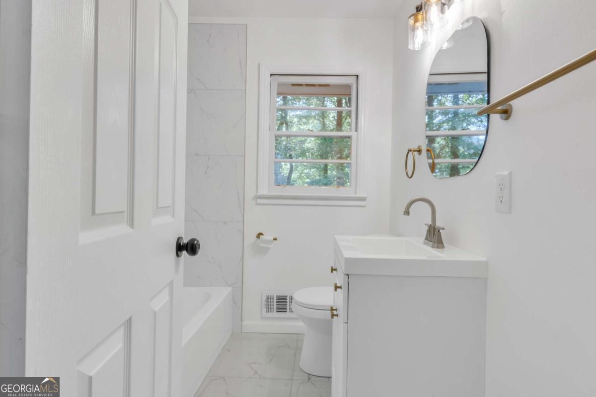 This home is a renter's delight! This charming 3-bedroom, 2-bath, 4-sided brick ranch in Southeast Atlanta blends classic character with modern updates. Inside, enjoy stylish new light fixtures, updated faucets, and a beautifully renovated en suite bathroom featuring a sliding barn door for added flair and privacy. The kitchen boasts stainless steel appliances and a clean, modern design ideal for everyday living. Recent upgrades include a new roof, gutters, and front door-giving you peace of mind for years to come. A spacious living room offers great entertaining potential, and the private-entry basement is a blank canvas ready for a studio, in-law suite, or home office. Conveniently located near downtown, parks, shopping, and just 3 minutes from Browns Mill Golf Course, this home puts everything within easy reach!