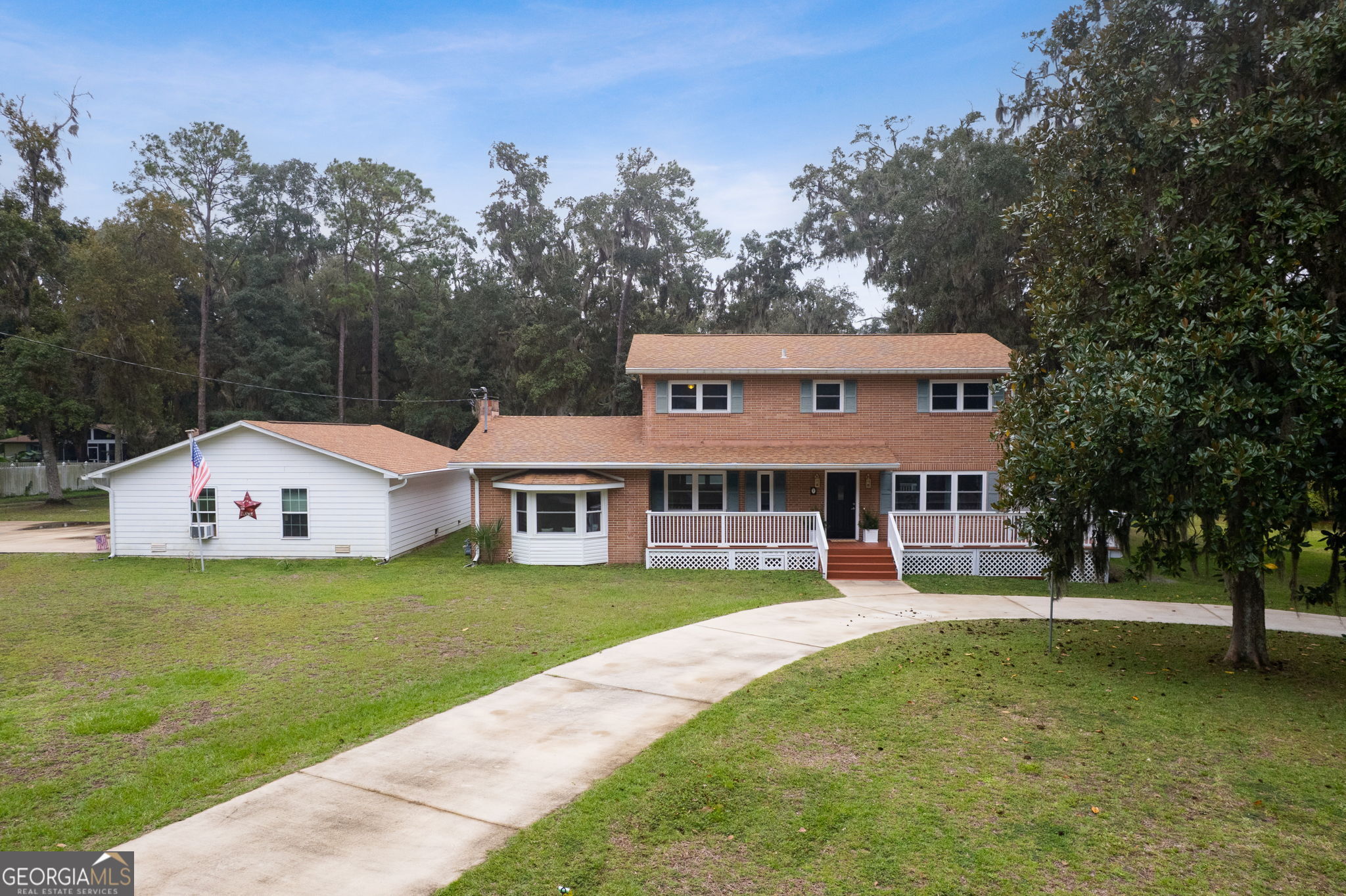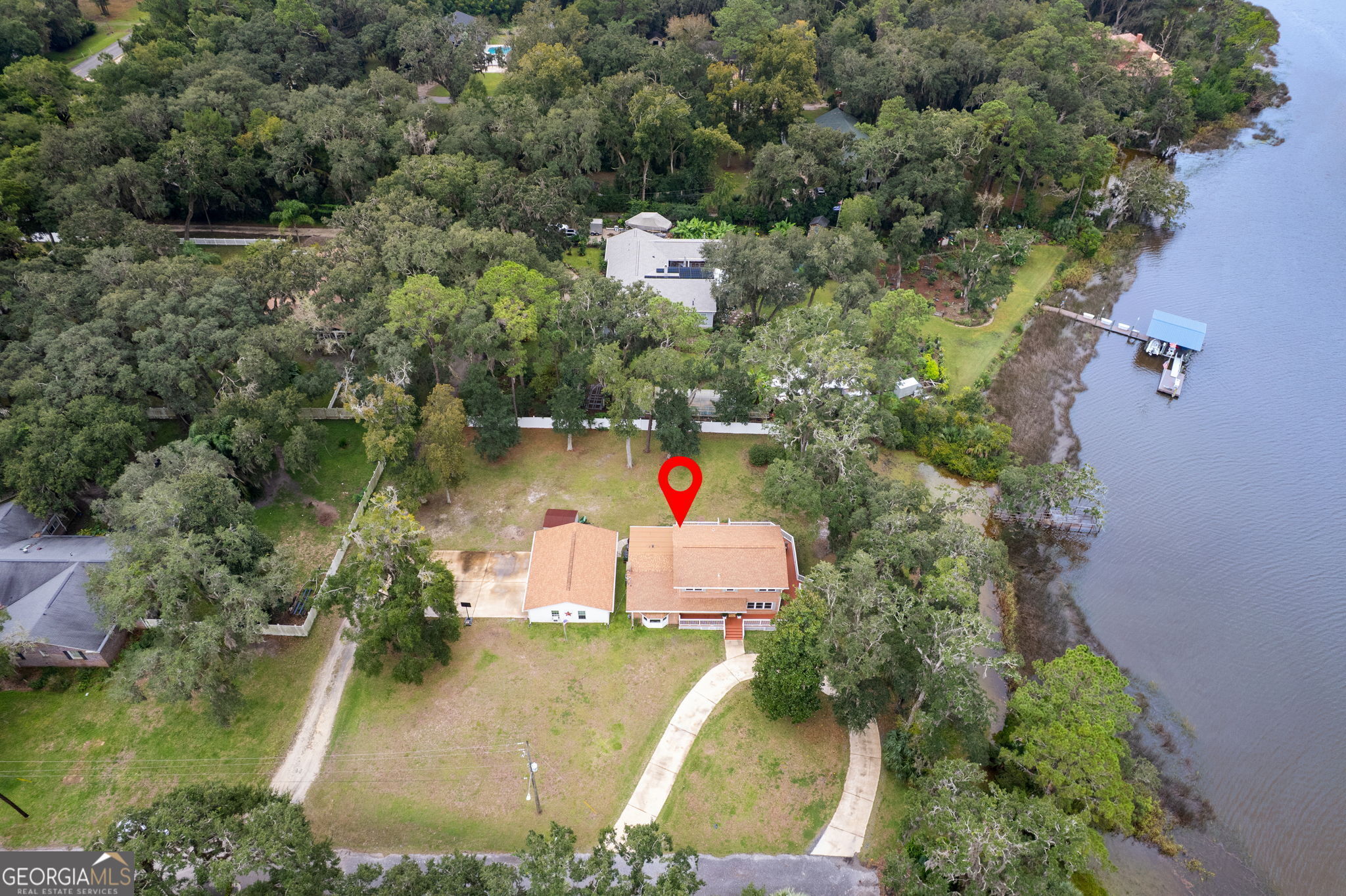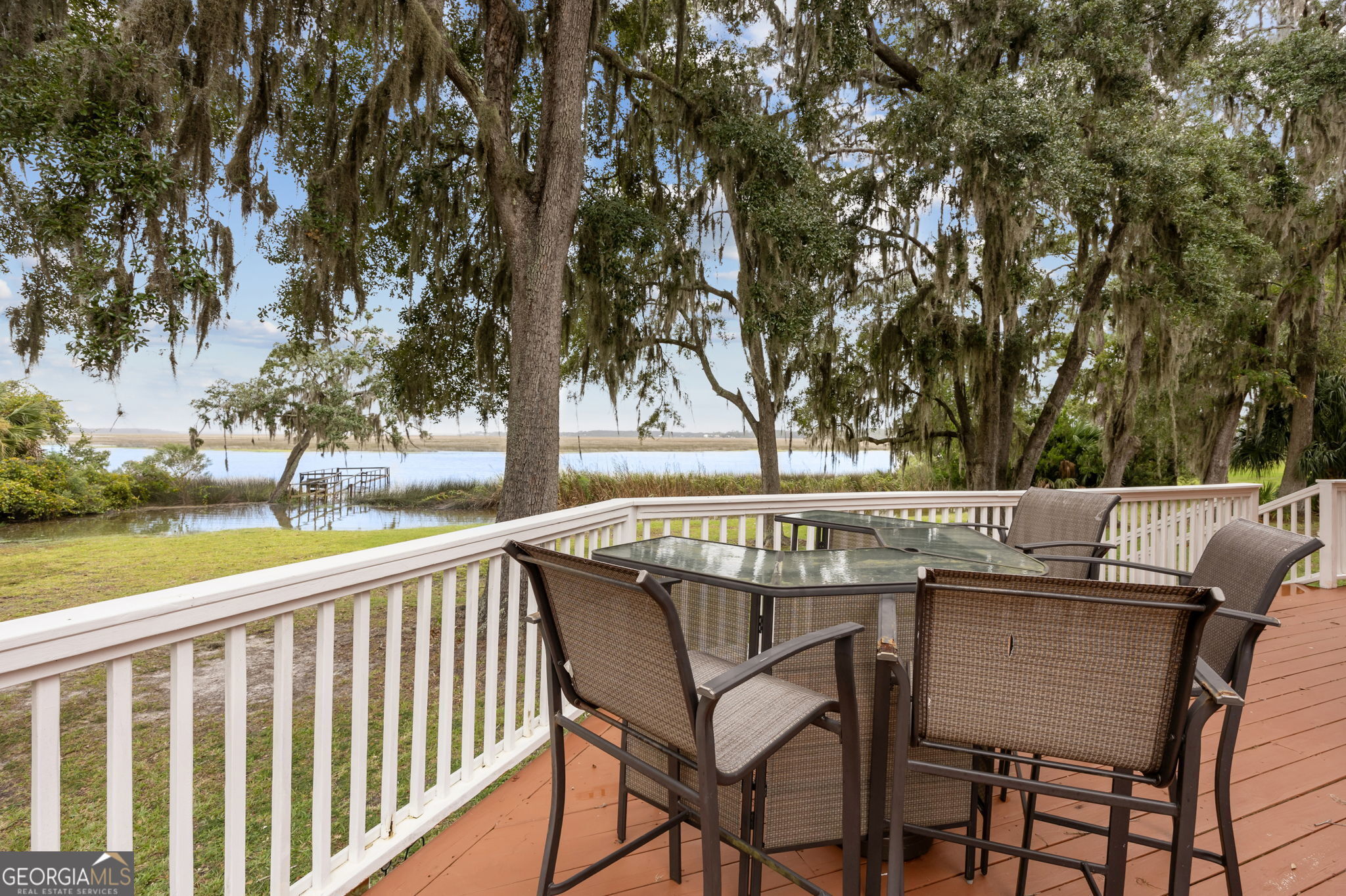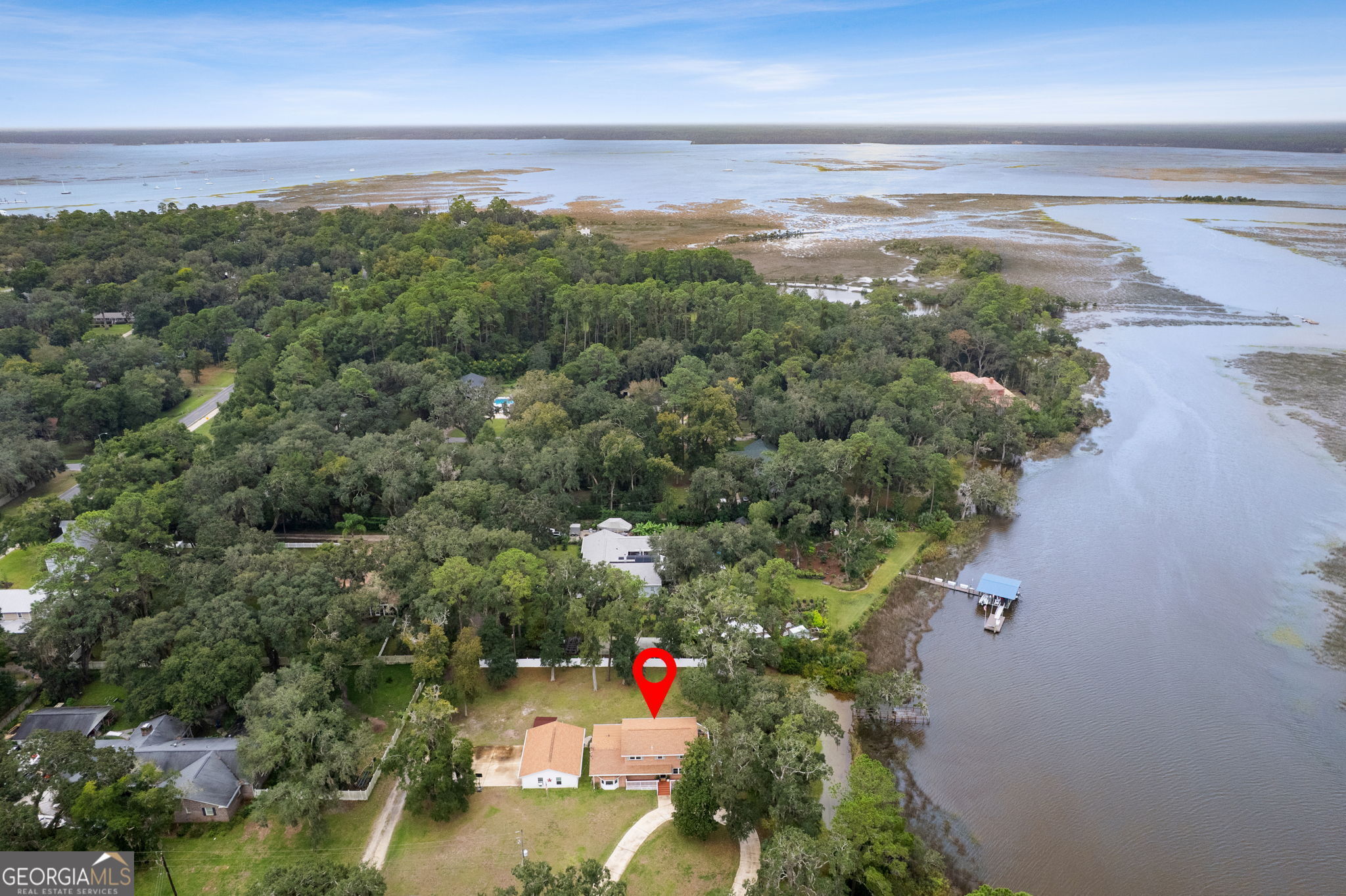 This property presents a unique opportunity to be in downtown St. Marys, on the water, have almost an acre of land and drive your golf cart to shopping, restaurants and the waterfront. The sunset views from the wraparound deck and the dock are beautiful year round. This all brick constructed home has a wrap around porch on three sides, a recently remodeled kitchen, a 10 x 12 laundry room, original hardwood floors, den with a wood burning fireplace, eat in kitchen, powder room, spacious dining room and living room with a dynamite view. Upstairs, there's the primary suite, three guest bedrooms and a bath room. Alpha foundation has a transferrable life guarantee on the complete foundation. In addition, there is a newer concrete circular driveway detached oversize 3 car garage can store your cars, golf cart, boat and anything else you might need. We left room in the price for you to make this your waterfront oasis. Call to see this opportunity before it's gone.