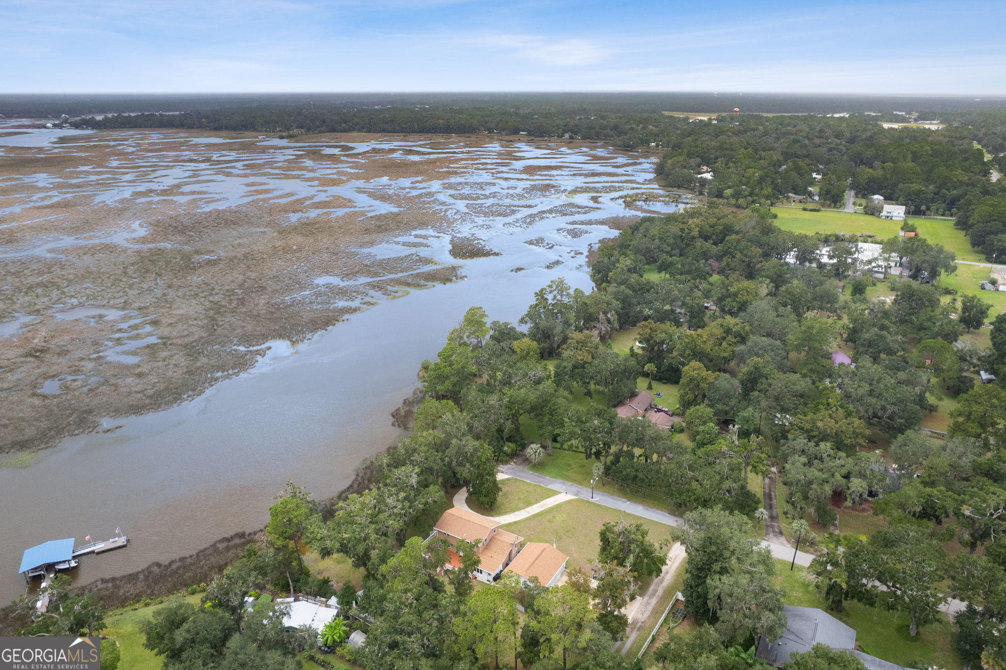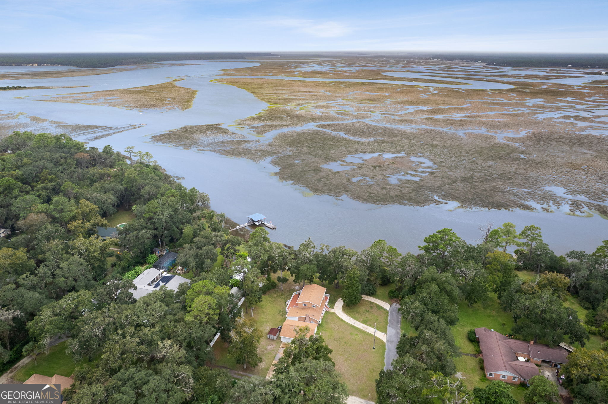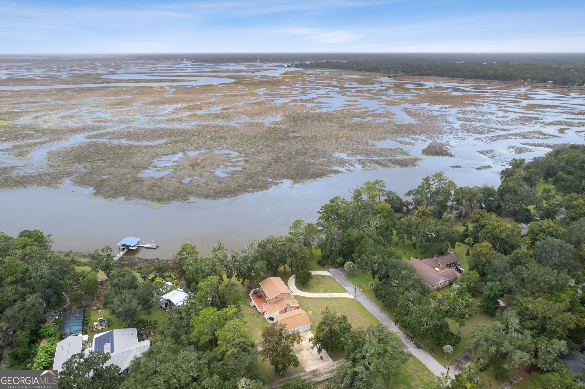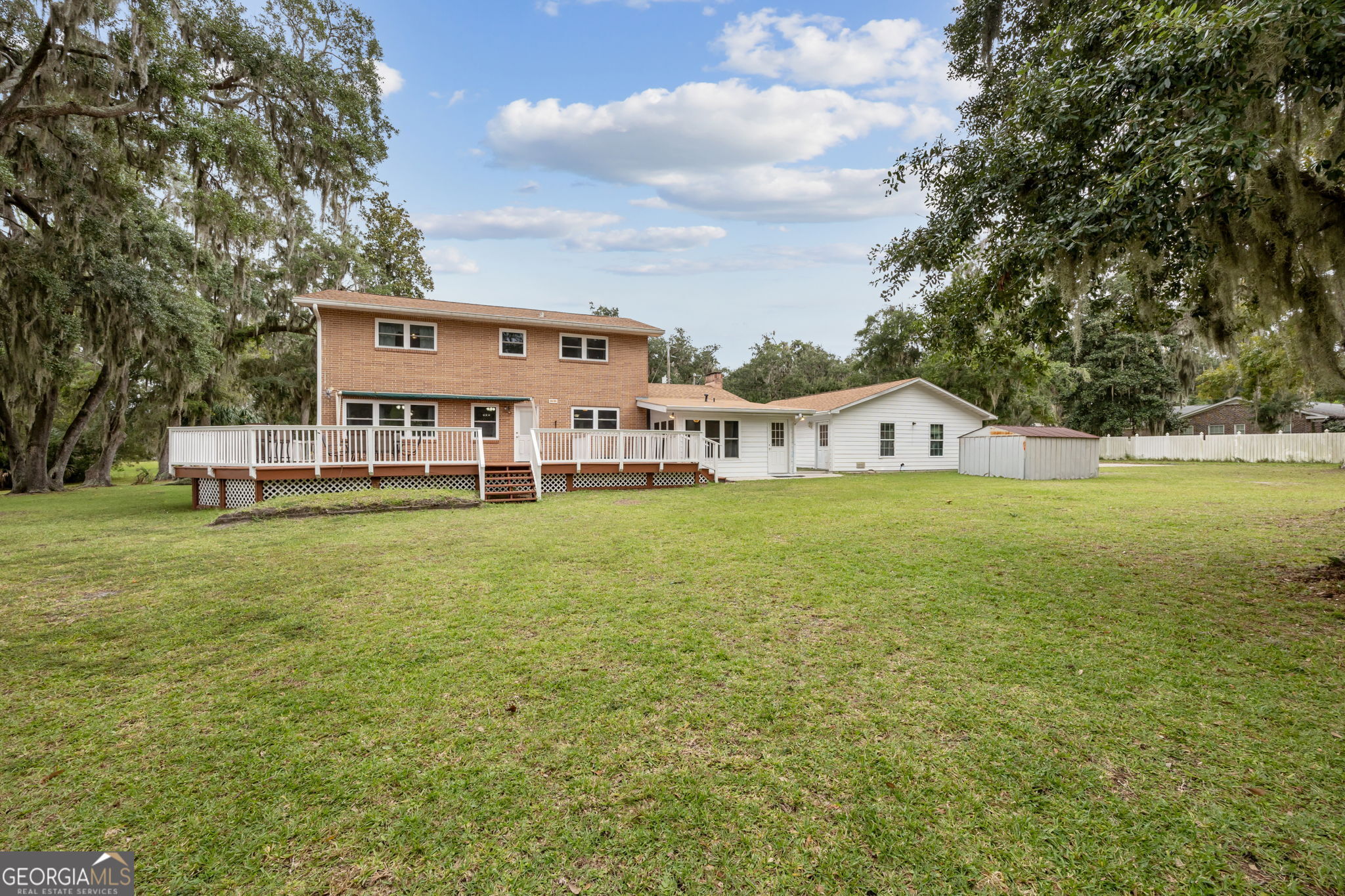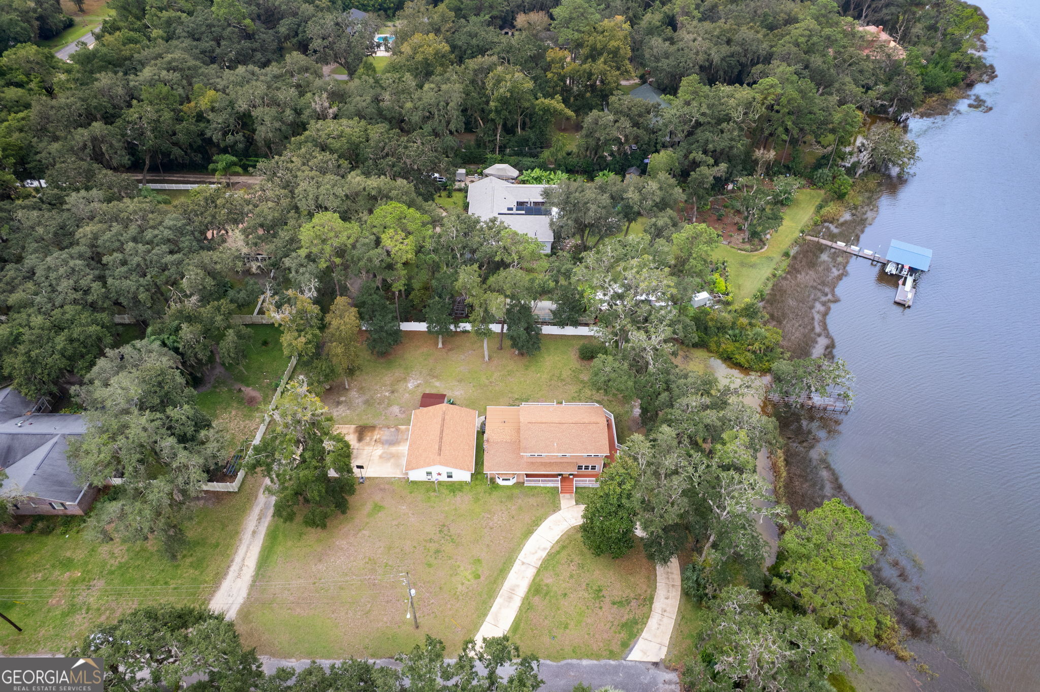 This property presents a unique opportunity to be in downtown St. Marys, on the water, have almost an acre of land and drive your golf cart to shopping, restaurants and the waterfront. The sunset views from the wraparound deck and the dock are beautiful year round. This all brick constructed home has a wrap around porch on three sides, a recently remodeled kitchen, a 10 x 12 laundry room, original hardwood floors, den with a wood burning fireplace, eat in kitchen, powder room, spacious dining room and living room with a dynamite view. Upstairs, there's the primary suite, three guest bedrooms and a bath room. Alpha foundation has a transferrable life guarantee on the complete foundation. In addition, there is a newer concrete circular driveway detached oversize 3 car garage can store your cars, golf cart, boat and anything else you might need. We left room in the price for you to make this your waterfront oasis. Call to see this opportunity before it's gone.