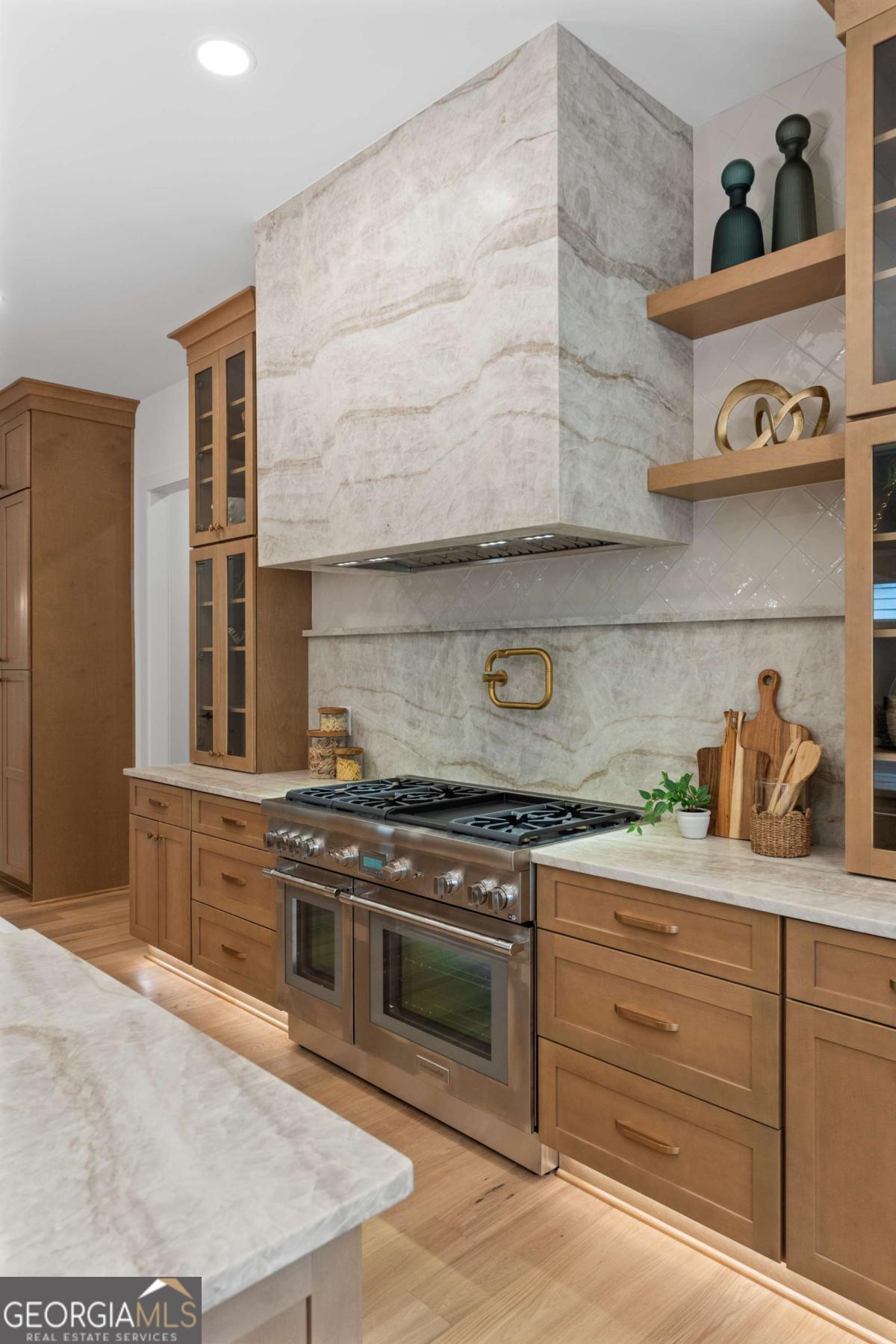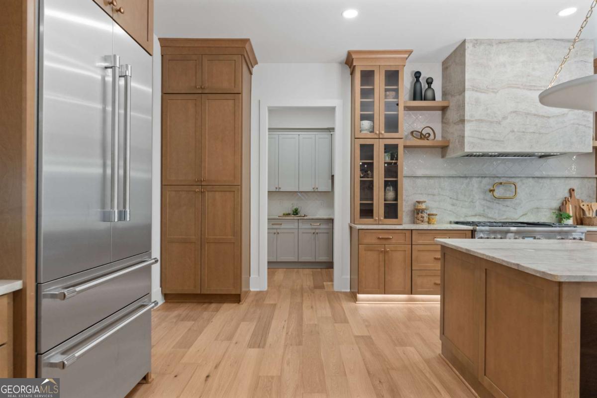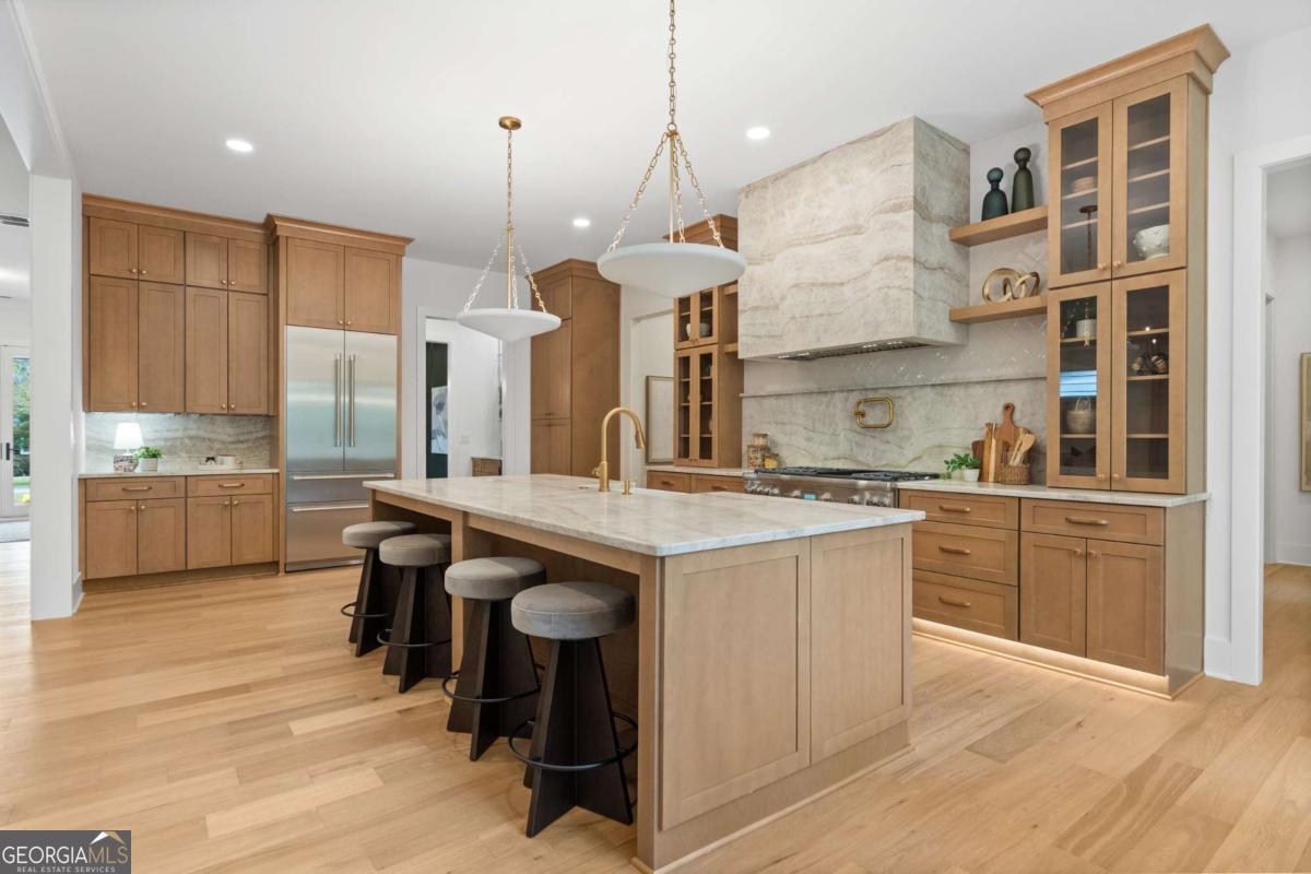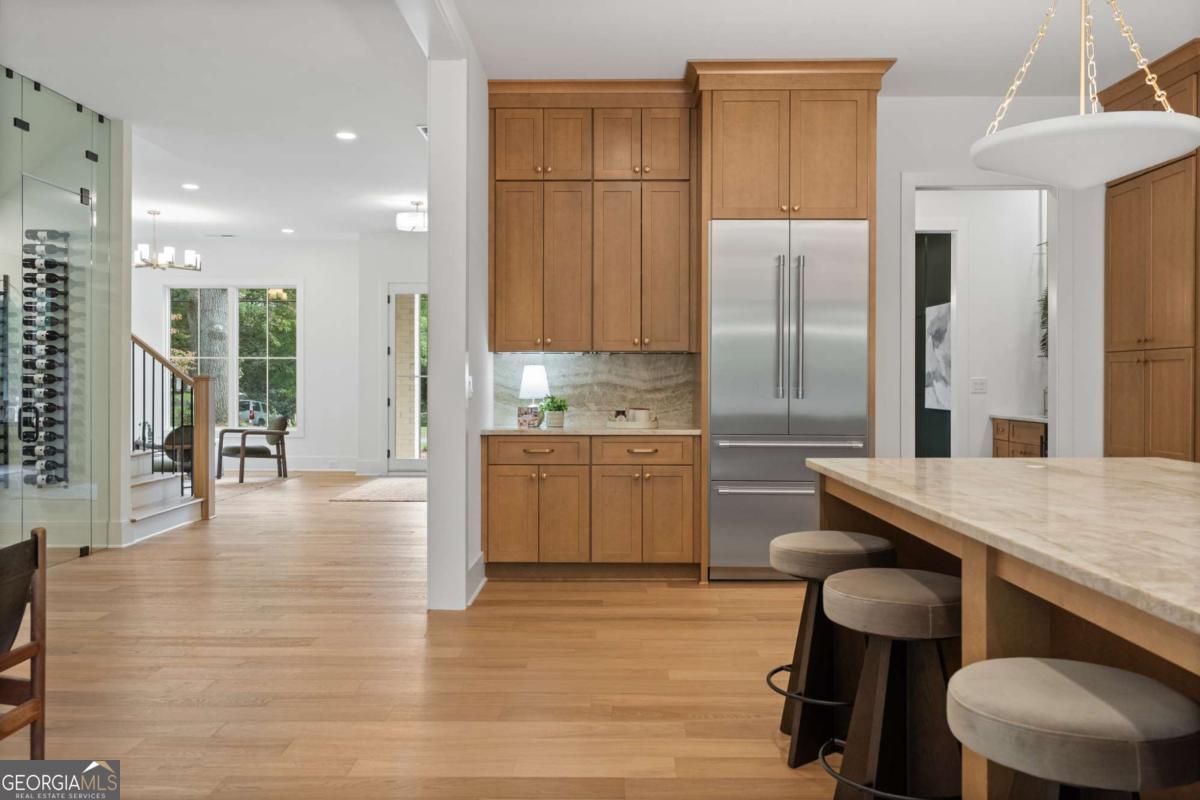 Love where you live in this COMPLETED NEW CONSTRUCTION residence in Historic Roswell! You'll easily learn why Roswell was voted one of the best places to live in Georgia in 2024. Offering a suburban feel with a true thriving downtown acting as the heart of the community. There is no shortage of activity from your doorstep when you live here. Golf cart to Canton St to eat at award winning restaurants, stroll the River boardwalk along the banks of the Chattahoochee, join the street party of Alive in Roswell, or enjoy summer evening concerts at Roswell's Riverside Sounds. In Roswell, you can easily get carried away because there is something impressive for everyone at every stage of life. At 125 Spring Dr, it all begins on a tree lined street filled with mature residences. Tucked away is a curated transitional residence with a timeless design for modern living. Serenity awaits in this well thought out floorplan. Here's a quick summary of the highlights: 5200 sq ft across TWO LEVELS with an ELEVATOR SHAFT, Owner's suite up, KT, FAM ROOM & Eating Area open onthe rear of the home, Guest Suite on Main, Laundry Rooms UP & DOWN, Separate BONUS ROOM plumbed for WET BAR, COVERED REAR PORCH with fireplace, DOG WASH & BIG BACK YARD! Now let's talk through the details! An inviting foyer gives you a moment to take it all in; you're immediately greeted with a straight line of sight to the 8' tall, 16' wide sliding doors that lead to the covered outdoor porch with a fireplace and stairs that descend to a FLAT BACKYARD with room for a POOL (subject to Roswell permitting)! Back inside, adjacent to the foyer is an open flex space that easily serves as a comfortable lounge or study. Opposite this space sits a paneled dining room bathed in natural daylight with a pass-through butler's pantry equipped with a wet bar with Kohler fixtures and a Zephyr Preserve beverage cooler. Pass through to the HEART of the home where a grand Kitchen, eating area, and family room await. The meticulously designed kitchen features natural wood tone contemporary cabinets, a 9' island, SS Thermador appliances, commercial grade refrigerator and elegant quartzite countertops. Keep this space guest ready and keep the mess in the connected SCULLERY with 2nd Thermador dishwasher, microwave drawer, space for an additional refrigerator and wall to wall pantry shelving. Entertain in the seamlessly connected family room with wood burning fireplace and under stair wine storage with the option of climate control. Two sets of sliding doors, 12' in the eating area and 16' in the family room, keep you connected to a blank palette for outdoor living with a rear porch, open grilling deck with outdoor gas line connection, and private, generous rear yard that can accommodate your future plans for a firepit, pool, play space for kids and yard for the dog. Rounding out the main floor is a guest bedroom with ensuite bathroom and a rear entry hall with mudroom, laundry room with pet wash and a home office. The staircase to the upper level is a tunnel of natural light with a 10' tall window! Here you'll find an impressive owner's suite with 15' vaulted ceiling, view to a private back yard and a resort style bathroom. No detail is spared with dual vanities, a soaking tub, shower stall with designer fixtures and two closets- one equipped with a storage system and the other as a dressing room. Also on this level are three additional bedrooms all with private baths. A surprise bonus room with wrap around neighborhood views, a private bath and a potential wet bar space give you the man cave you needed! Other modern comforts include an ELEVATOR SHAFT, 3 car garage wired for EV charger, tankless hot water heater and energy efficient spray foam attic insulation. HOME is COMPLETE! Perfectly situated near the Roswell Mill with Canton St to the North, Chattahoochee River boardwalk to the south, East Cobb to the west and 400 to the east. Location, Luxury and Lifestyle all converge here!