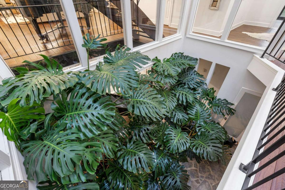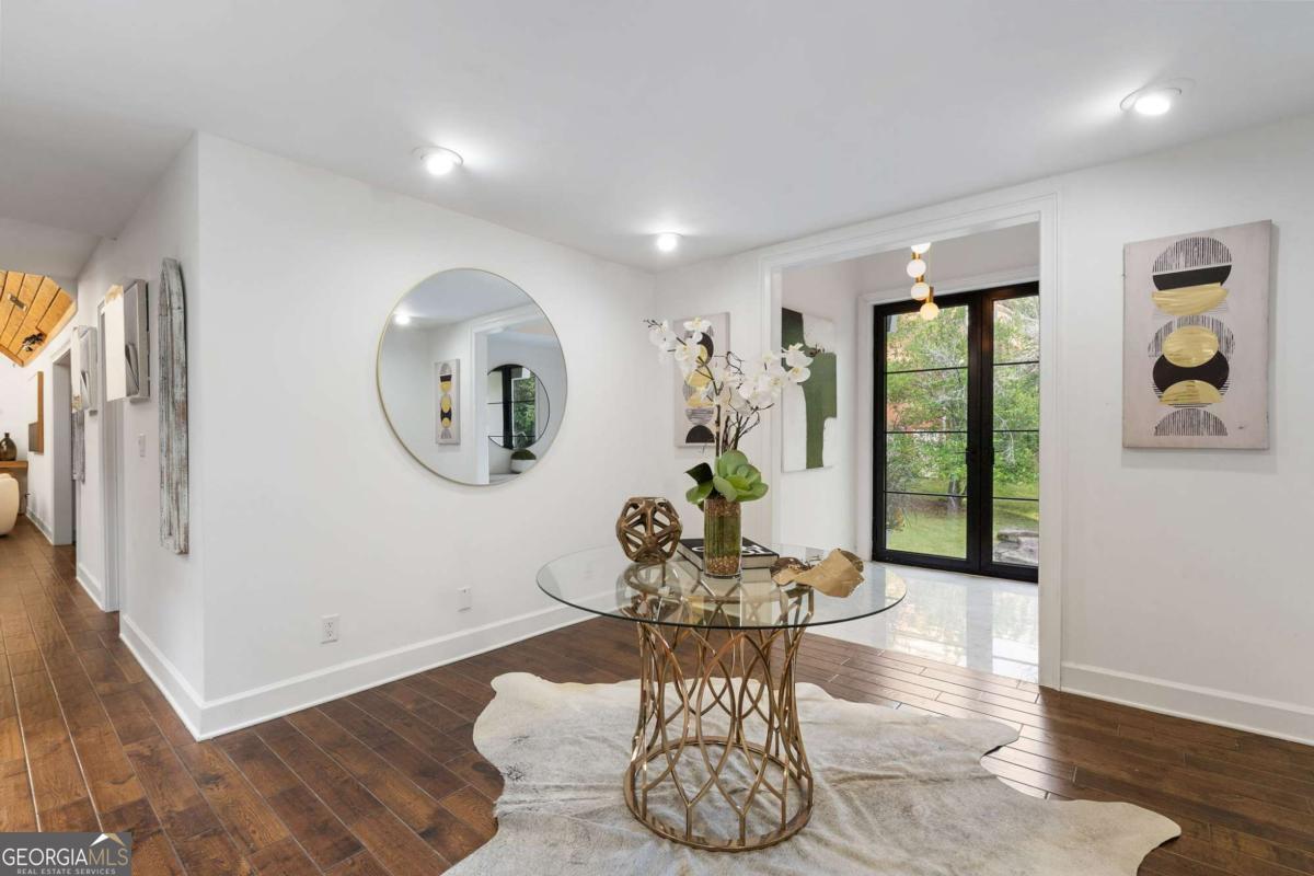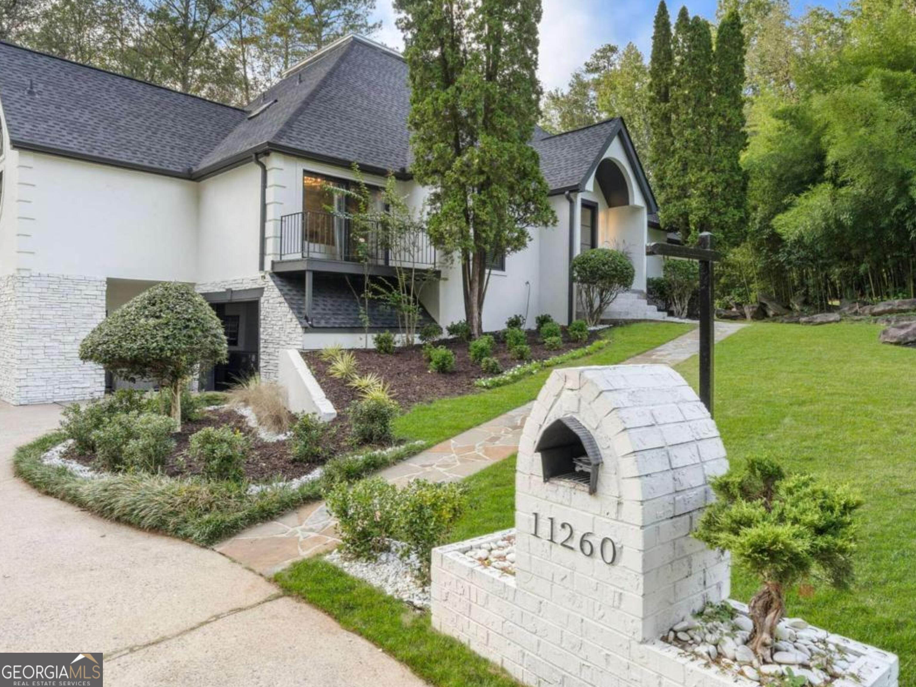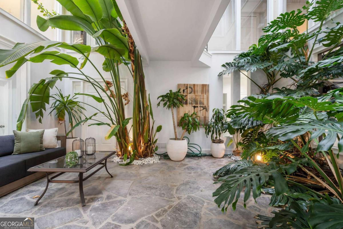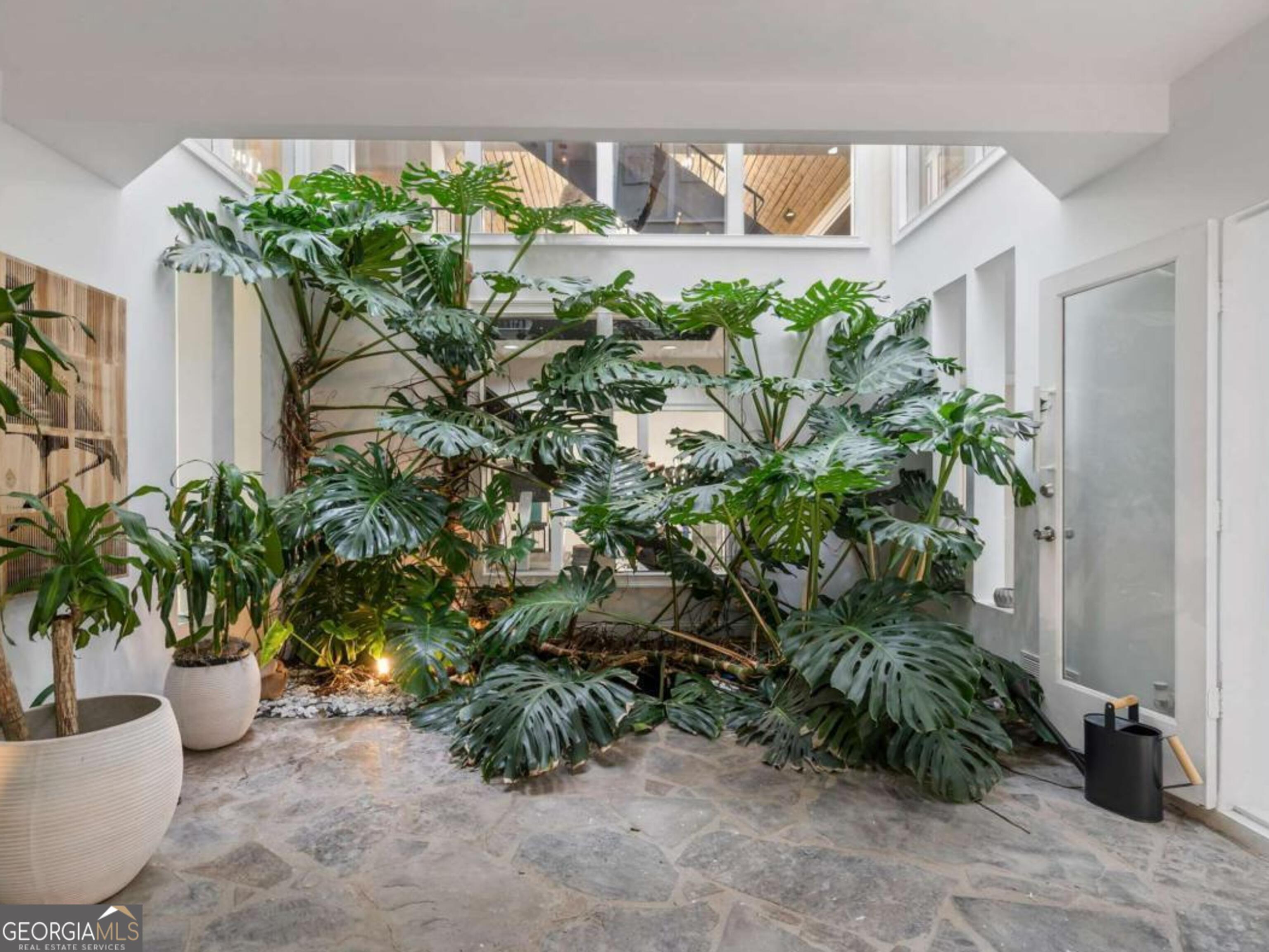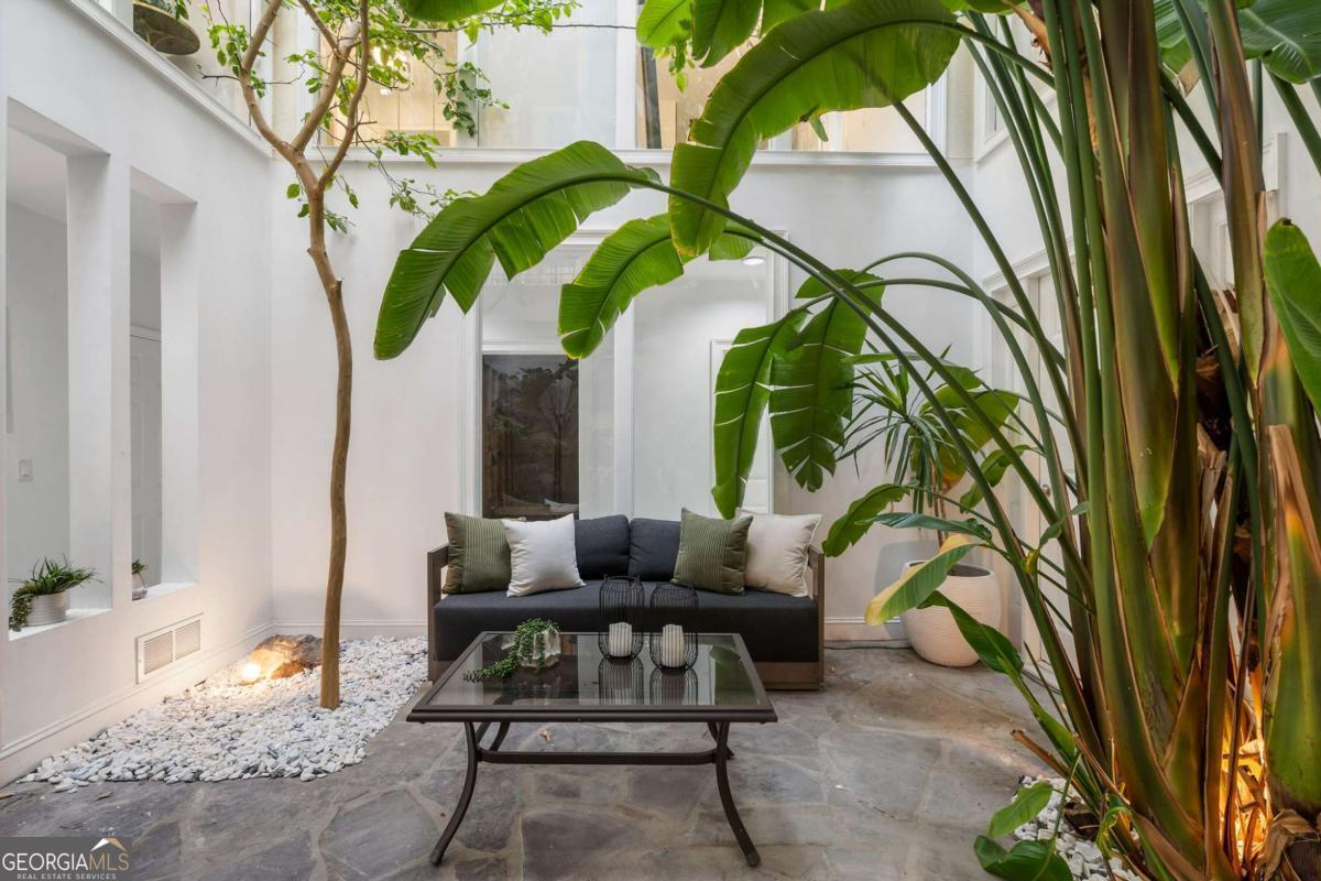 At the end of a long, tree-lined private lane awaits a rare architectural masterpiece that's been renovated with over 8,001-square-feet. Resting on 1.42 secluded acres, this Roswell sanctuary, 11260 Houze Road, is a symphony of light, space, and design, created for those who seek beauty in balance and intention in every detail. From the moment you step inside, you are enveloped by a calm zen experience. A three-story skylit atrium anchors the home-its soaring glass canopy and collection of towering greenery creating a living sculpture that breathes vitality into the interiors. Natural light pours through every level, revealing serene vignettes framed by walls of glass and the ever-changing dance of sun and shadow. Architectural ironwork and an open floating staircase rise through the space, leading to a tranquil loft that overlooks the heart of the home. The great room inspires awe with its cathedral wood ceilings, custom wood-burning fireplace, and sunroom lined in glass-an ideal space to pause with doors out to the deck. The gourmet kitchen is both art and utility: Quartzite Tahiti matte countertops, Esca white cabinetry with glass fronts, and a seamless wall of windows that opens to the expansive deck beyond. A sculptural island invites conversation, while the butler's pantry and wet bar-finished in Alpinus granite and smoked glass-elevate entertaining to ritual. The formal dining room exudes understated elegance, while the main level primary suite becomes a private retreat unto itself-complete with doors out to balcony, and a spa-inspired separate vanities and bathrooms that feel more like a meditation space. A freestanding soaking tub, custom stone floors, and a jetted shower framed in glass create a sense of refined serenity. Upstairs, a loft and lounge study area that overlook the atrium, offering perfect spaces for reflection or creative work plus two more bedrooms. On the terrace level, the rhythm of the home shifts-welcoming an in-law suite with kitchenette and separate entrance. Enjoy a skylit gym and recreation areas, and flexible rooms ideal for art, wellness, or gathering. Two separate garages with tinted black glass doors and EV chargers. Outside, the experience unfolds into nature. Natural stone walkways weave through lush landscaping, boulders, bamboo, koi ponds, a tiki bar, and generous decks designed for connection or solitude. Beyond lies a broad, level lawn-an open canvas for a future pool or garden retreat. This residence is not merely a home, but a state of being-where light, architecture, and nature exist in harmony. New roof put on 2024 and all new windows. Minutes from the energy of downtown Roswell and Canton Street yet hidden in a quiet cul-de-sac, it offers a life that feels both grounded and elevated-modern living with a soul. In minutes enjoy numerous parks like Azalea Park, Riverside Park and Big Creek Park. Or biking trails on Roswell Riverwalk and jogging trails, cayaking, fishing all along the Chattahoochee river corridor that Roswell is known for. Hike to the mill ruins and the Vickery Creek waterfall. Dining and shopping is nearby as well including downtown Roswell/Canton street, Village Walk, North Point Mall and Avalon.