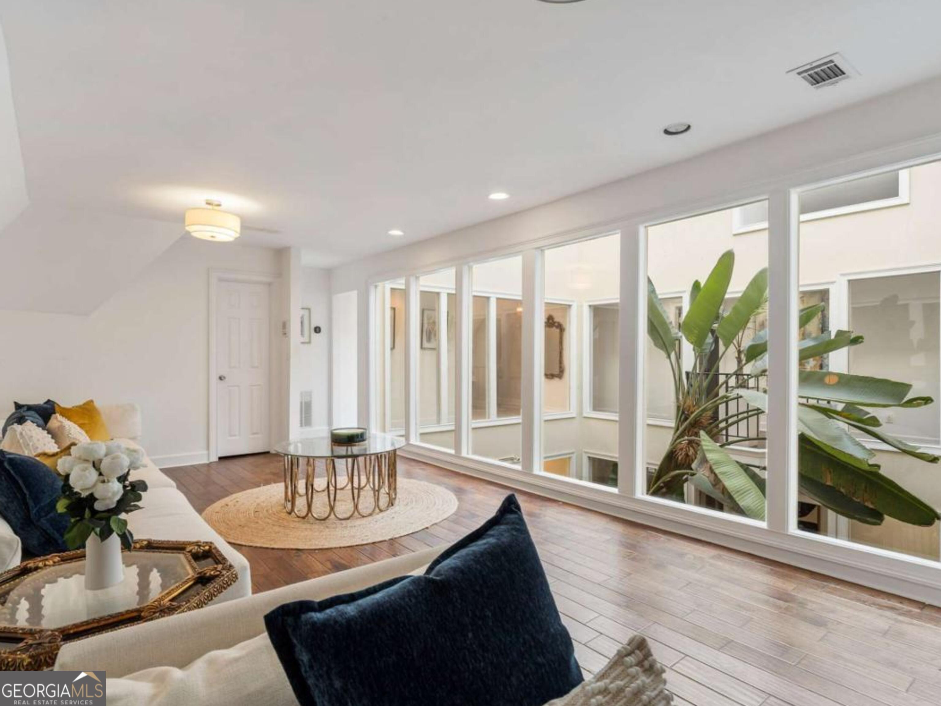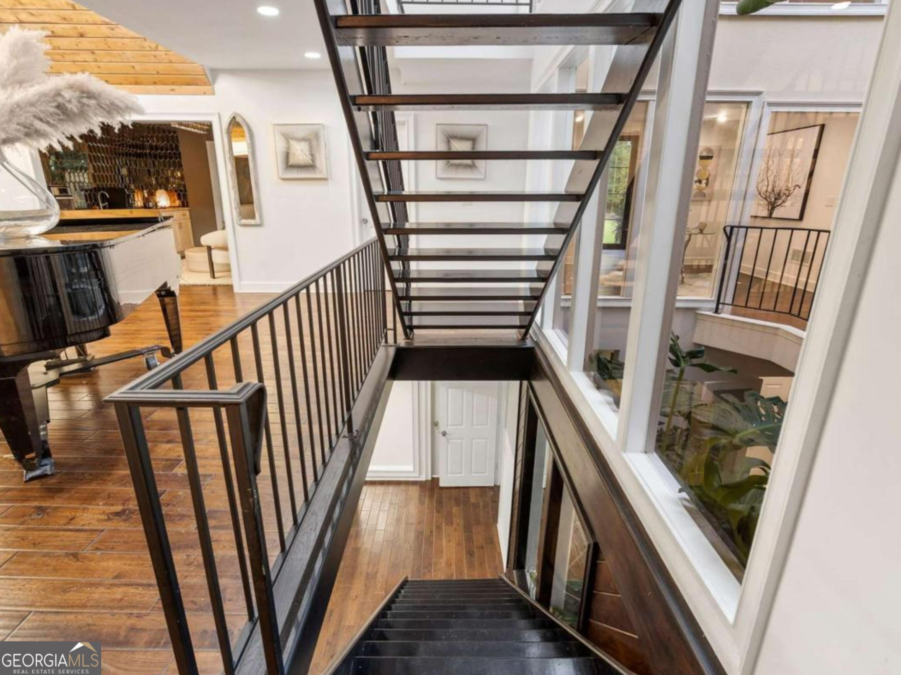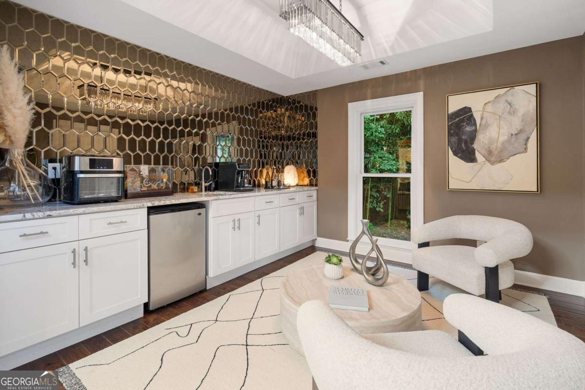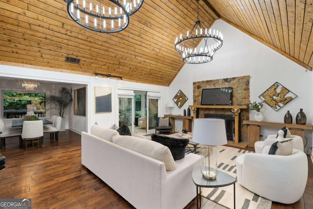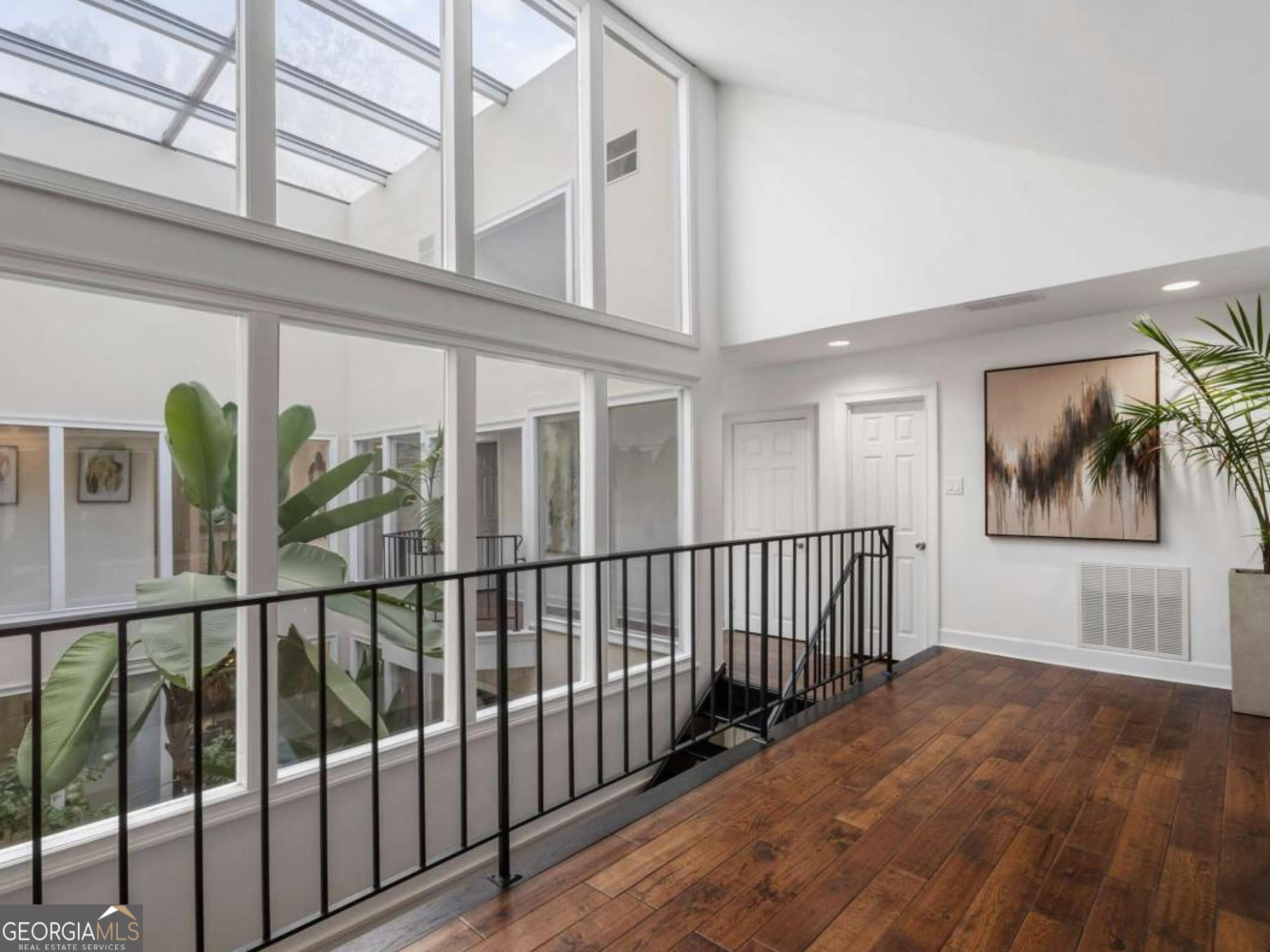 At the end of a long, tree-lined private lane awaits a rare architectural masterpiece that's been renovated with over 8,001-square-feet. Resting on 1.42 secluded acres, this Roswell sanctuary, 11260 Houze Road, is a symphony of light, space, and design, created for those who seek beauty in balance and intention in every detail. From the moment you step inside, you are enveloped by a calm zen experience. A three-story skylit atrium anchors the home-its soaring glass canopy and collection of towering greenery creating a living sculpture that breathes vitality into the interiors. Natural light pours through every level, revealing serene vignettes framed by walls of glass and the ever-changing dance of sun and shadow. Architectural ironwork and an open floating staircase rise through the space, leading to a tranquil loft that overlooks the heart of the home. The great room inspires awe with its cathedral wood ceilings, custom wood-burning fireplace, and sunroom lined in glass-an ideal space to pause with doors out to the deck. The gourmet kitchen is both art and utility: Quartzite Tahiti matte countertops, Esca white cabinetry with glass fronts, and a seamless wall of windows that opens to the expansive deck beyond. A sculptural island invites conversation, while the butler's pantry and wet bar-finished in Alpinus granite and smoked glass-elevate entertaining to ritual. The formal dining room exudes understated elegance, while the main level primary suite becomes a private retreat unto itself-complete with doors out to balcony, and a spa-inspired separate vanities and bathrooms that feel more like a meditation space. A freestanding soaking tub, custom stone floors, and a jetted shower framed in glass create a sense of refined serenity. Upstairs, a loft and lounge study area that overlook the atrium, offering perfect spaces for reflection or creative work plus two more bedrooms. On the terrace level, the rhythm of the home shifts-welcoming an in-law suite with kitchenette and separate entrance. Enjoy a skylit gym and recreation areas, and flexible rooms ideal for art, wellness, or gathering. Two separate garages with tinted black glass doors and EV chargers. Outside, the experience unfolds into nature. Natural stone walkways weave through lush landscaping, boulders, bamboo, koi ponds, a tiki bar, and generous decks designed for connection or solitude. Beyond lies a broad, level lawn-an open canvas for a future pool or garden retreat. This residence is not merely a home, but a state of being-where light, architecture, and nature exist in harmony. New roof put on 2024 and all new windows. Minutes from the energy of downtown Roswell and Canton Street yet hidden in a quiet cul-de-sac, it offers a life that feels both grounded and elevated-modern living with a soul. In minutes enjoy numerous parks like Azalea Park, Riverside Park and Big Creek Park. Or biking trails on Roswell Riverwalk and jogging trails, cayaking, fishing all along the Chattahoochee river corridor that Roswell is known for. Hike to the mill ruins and the Vickery Creek waterfall. Dining and shopping is nearby as well including downtown Roswell/Canton street, Village Walk, North Point Mall and Avalon.