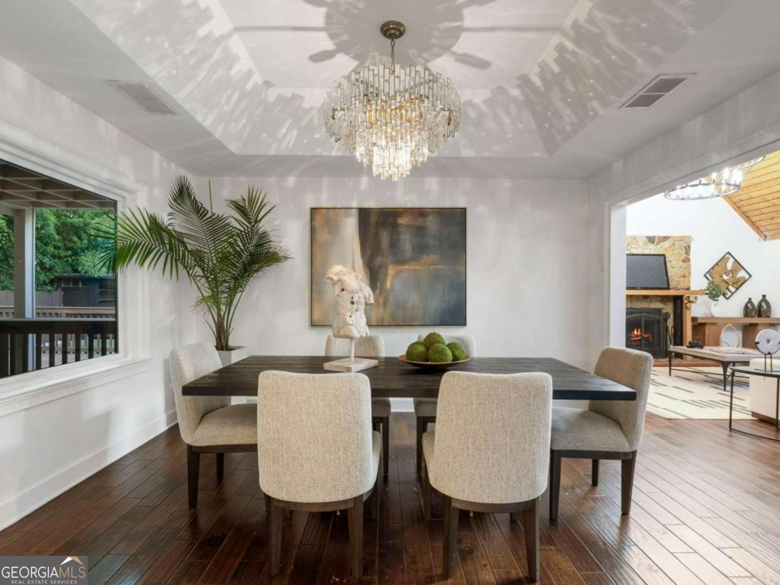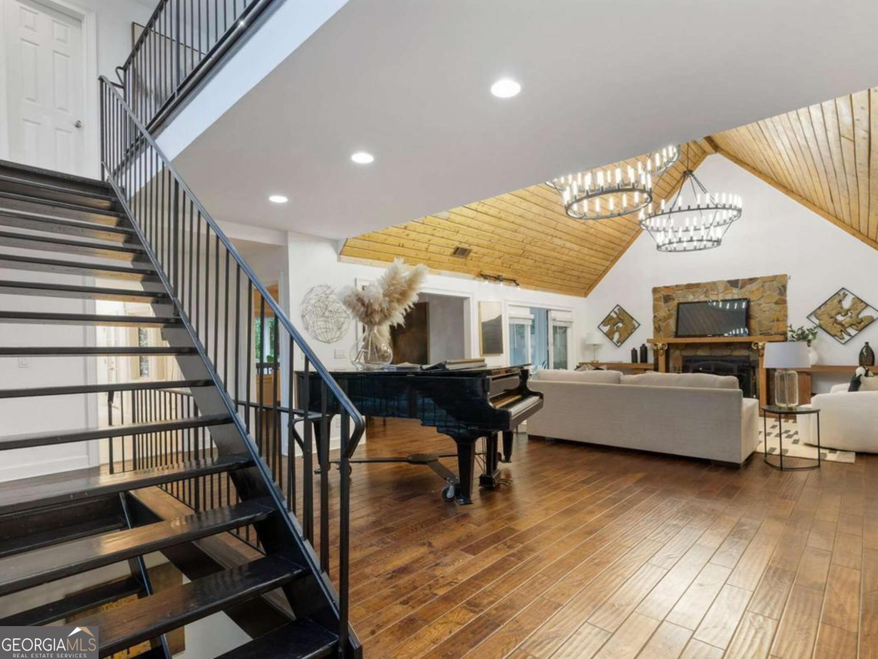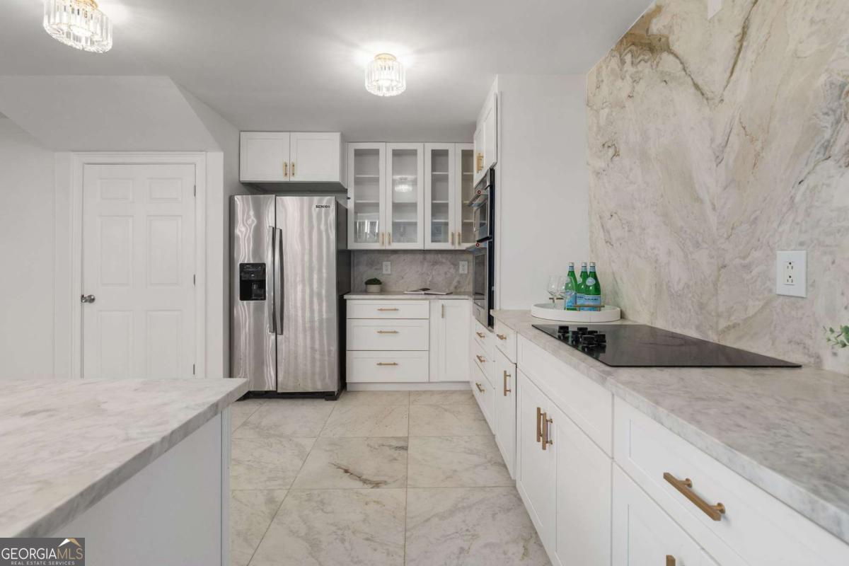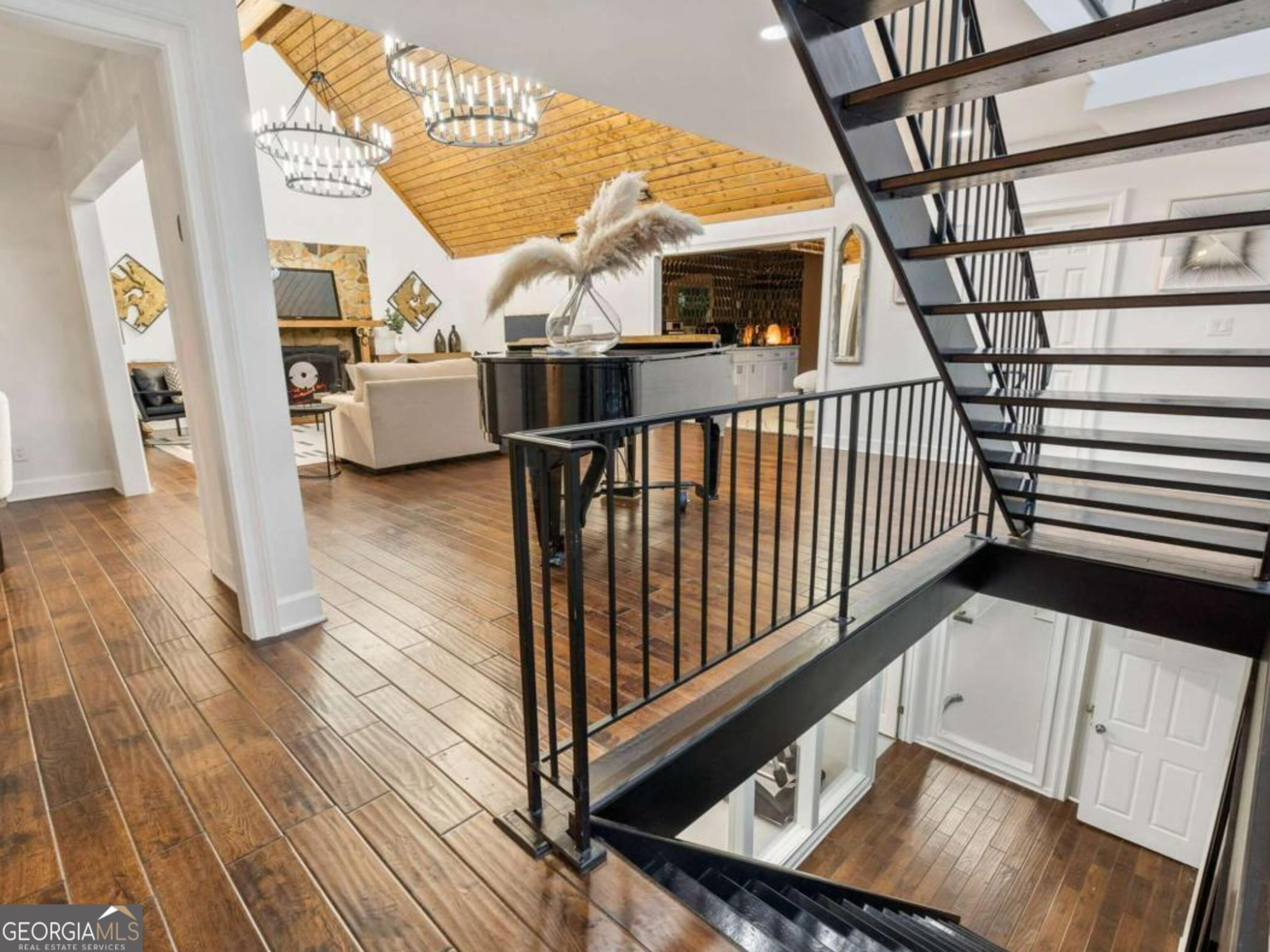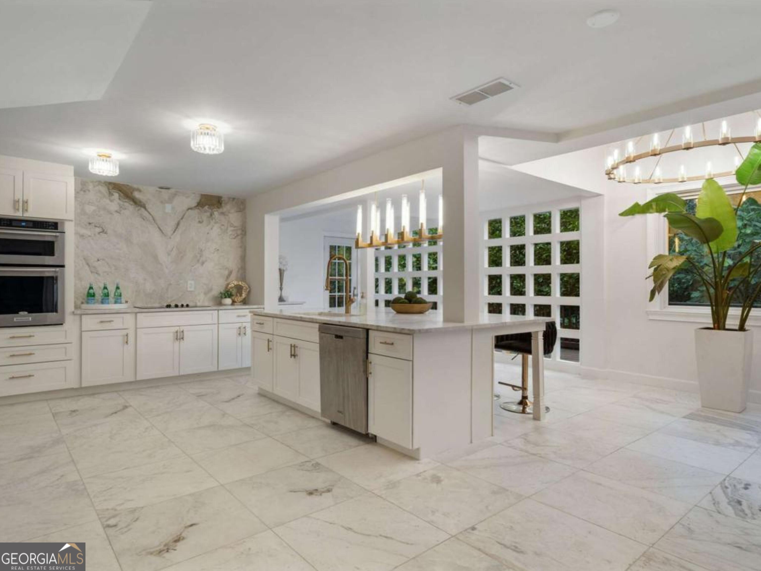 At the end of a long, tree-lined private lane awaits a rare architectural masterpiece that's been renovated with over 8,001-square-feet. Resting on 1.42 secluded acres, this Roswell sanctuary, 11260 Houze Road, is a symphony of light, space, and design, created for those who seek beauty in balance and intention in every detail. From the moment you step inside, you are enveloped by a calm zen experience. A three-story skylit atrium anchors the home-its soaring glass canopy and collection of towering greenery creating a living sculpture that breathes vitality into the interiors. Natural light pours through every level, revealing serene vignettes framed by walls of glass and the ever-changing dance of sun and shadow. Architectural ironwork and an open floating staircase rise through the space, leading to a tranquil loft that overlooks the heart of the home. The great room inspires awe with its cathedral wood ceilings, custom wood-burning fireplace, and sunroom lined in glass-an ideal space to pause with doors out to the deck. The gourmet kitchen is both art and utility: Quartzite Tahiti matte countertops, Esca white cabinetry with glass fronts, and a seamless wall of windows that opens to the expansive deck beyond. A sculptural island invites conversation, while the butler's pantry and wet bar-finished in Alpinus granite and smoked glass-elevate entertaining to ritual. The formal dining room exudes understated elegance, while the main level primary suite becomes a private retreat unto itself-complete with doors out to balcony, and a spa-inspired separate vanities and bathrooms that feel more like a meditation space. A freestanding soaking tub, custom stone floors, and a jetted shower framed in glass create a sense of refined serenity. Upstairs, a loft and lounge study area that overlook the atrium, offering perfect spaces for reflection or creative work plus two more bedrooms. On the terrace level, the rhythm of the home shifts-welcoming an in-law suite with kitchenette and separate entrance. Enjoy a skylit gym and recreation areas, and flexible rooms ideal for art, wellness, or gathering. Two separate garages with tinted black glass doors and EV chargers. Outside, the experience unfolds into nature. Natural stone walkways weave through lush landscaping, boulders, bamboo, koi ponds, a tiki bar, and generous decks designed for connection or solitude. Beyond lies a broad, level lawn-an open canvas for a future pool or garden retreat. This residence is not merely a home, but a state of being-where light, architecture, and nature exist in harmony. New roof put on 2024 and all new windows. Minutes from the energy of downtown Roswell and Canton Street yet hidden in a quiet cul-de-sac, it offers a life that feels both grounded and elevated-modern living with a soul. In minutes enjoy numerous parks like Azalea Park, Riverside Park and Big Creek Park. Or biking trails on Roswell Riverwalk and jogging trails, cayaking, fishing all along the Chattahoochee river corridor that Roswell is known for. Hike to the mill ruins and the Vickery Creek waterfall. Dining and shopping is nearby as well including downtown Roswell/Canton street, Village Walk, North Point Mall and Avalon.