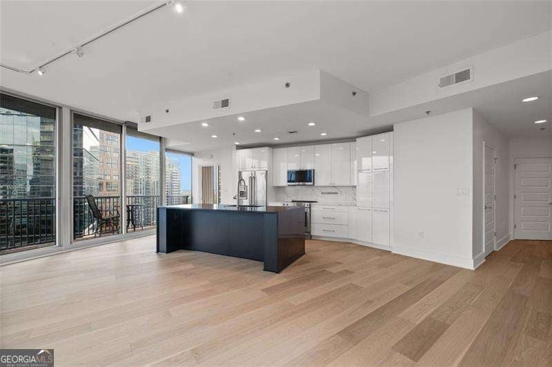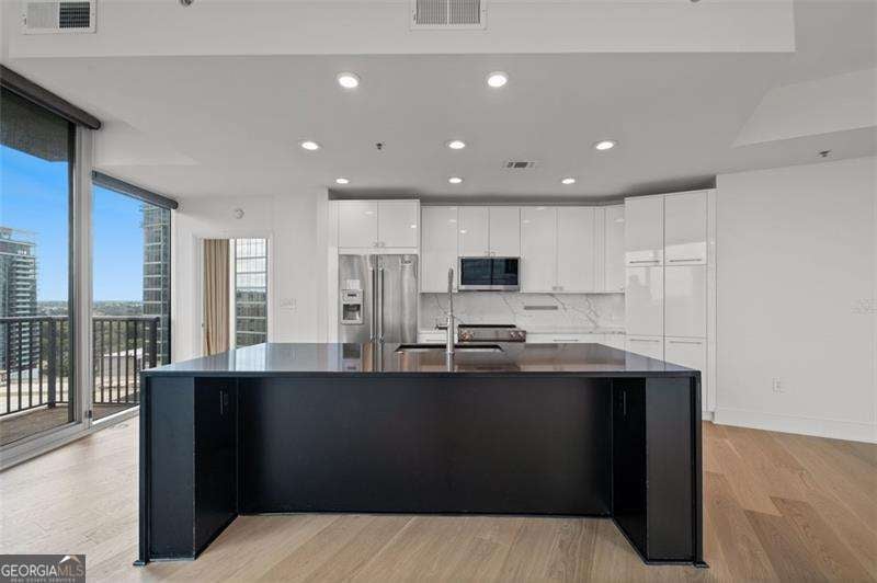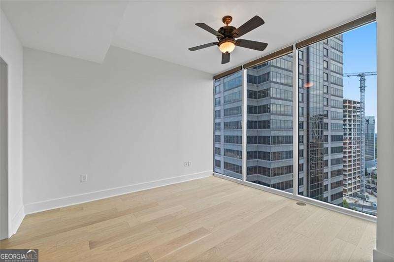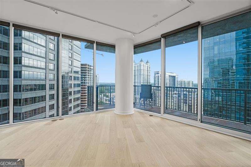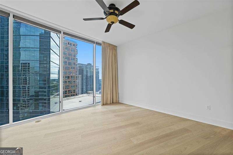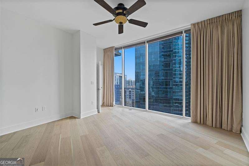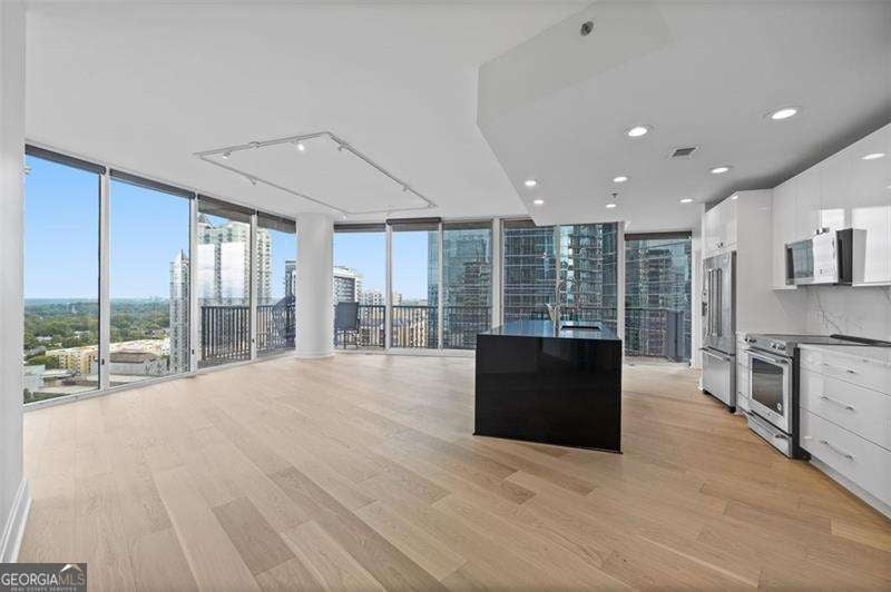 Step into the future of city living with this stunning luxury condo in the heart of Midtown. Located on the 17th floor, this spacious unit offers unobstructed panoramic views of the city skyline and a wraparound balcony perfect for entertaining or relaxing. Inside, you'll find all-new engineered hardwood floors throughout and an open-concept floor plan featuring floor-to-ceiling windows in every room, flooding the space with natural light. The renovated chef's kitchen is a showstopper, boasting high-end stainless-steel appliances, quartz countertops, a large farmhouse sink, and a sleek center island for casual dining or hosting guests. The primary suite includes a custom walk-in closet, blackout drapes, and a luxury en-suite bath with double vanity, separate soaking tub, and glass-enclosed shower. The guest bedroom also features a custom closet, premium blinds, and access to its own luxury bath. Powder room with custom vanity. Laundry room with storage space. Brand new HVAC system and water heater (2025). Gated private 2 dedicated parking spaces. 24-hour concierge and amazing amenities including, state of the art fitness center, Clubroom/ game room with large outdoor patio and resort style pool with beautifully landscaped grounds.