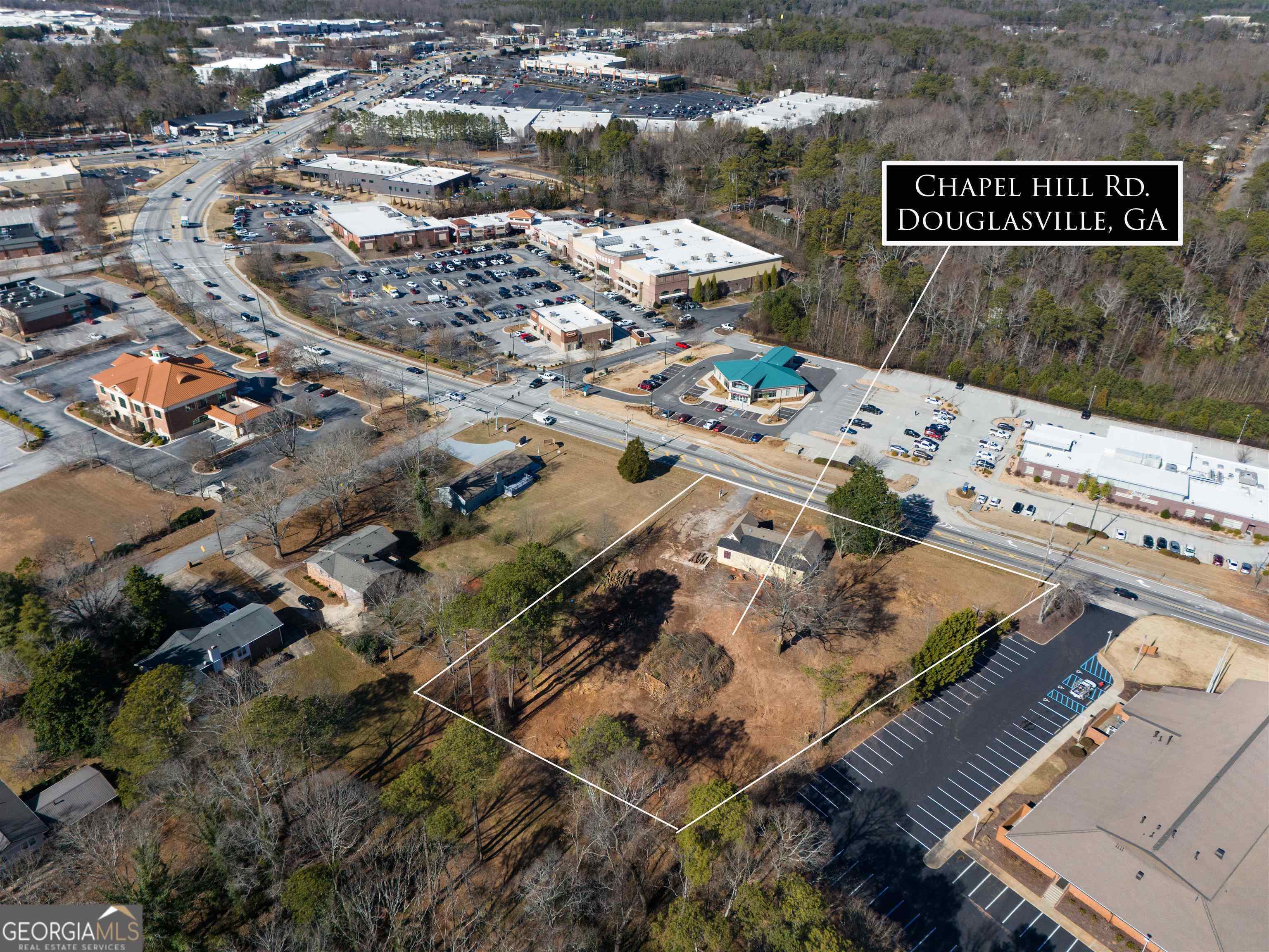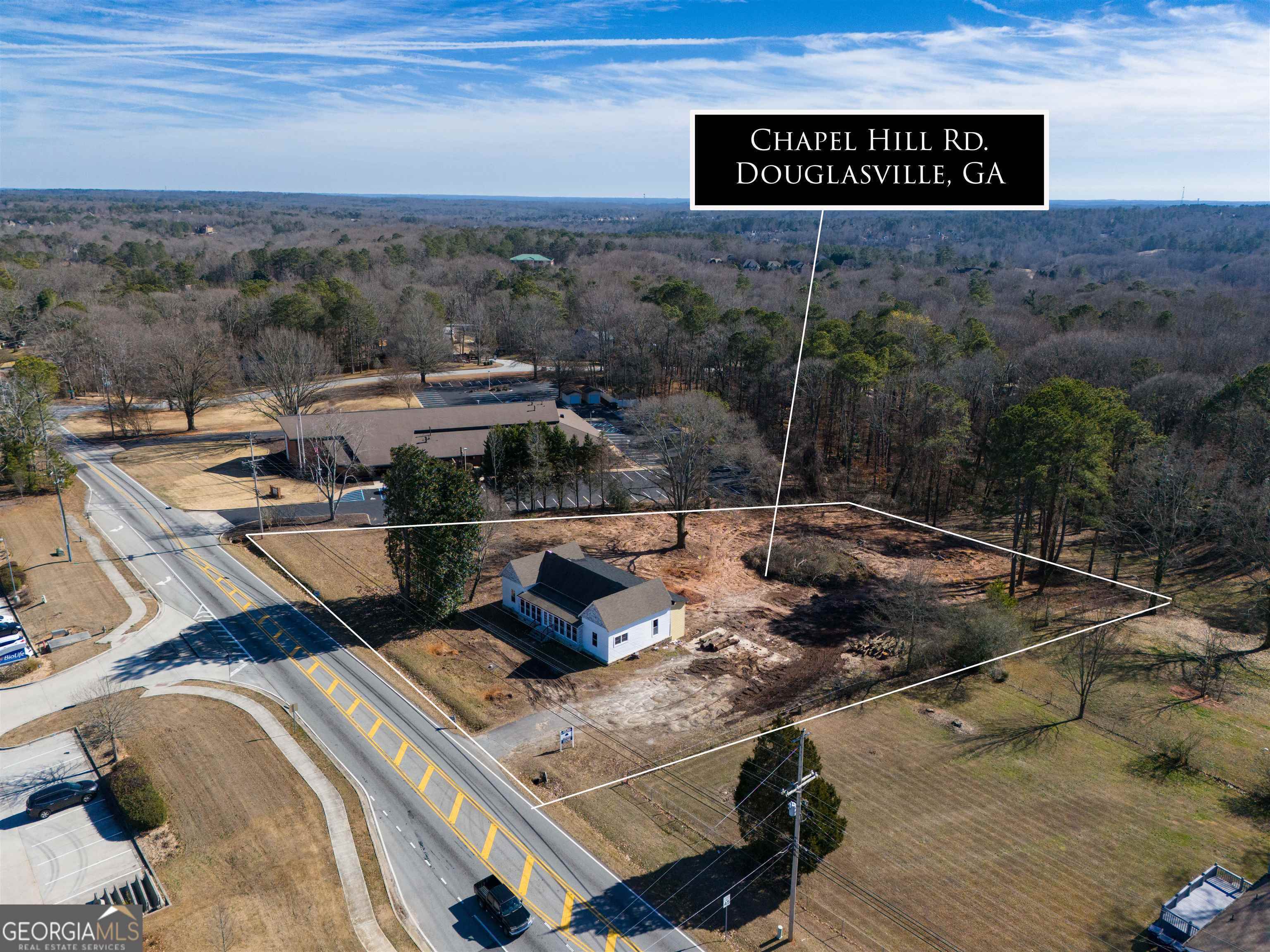 LOCATION, LOCATION, LOCATION - 1.4 Acre Lot on Chapel Hill Road in Douglasville! This Unique Property is Zoned Commercial and awaits your business aspirations. Surrounded by upscale retail, dining and residential developments. Douglasville, GA: A city on the rise! Exciting growth and opportunities are transforming this vibrant community. Large economic developments like Sam's Club's new fulfillment center in Douglas County, creating 600 jobs and investing over $142 million will significantly boost the local economy and increase the need for new thriving businesses and expansions. Douglasville is also becoming a destination for movie magic. Lionsgate Studios has chosen the city for its new film and TV complex, "Great Point Studios." Covering 40 acres and costing $160 million, this state-of-the-art facility will feature 11 sound stages. It promises to be an epicenter for creativity and a haven for filmmakers. Amidst this wave of development, Douglasville maintains its charm and sense of community. Historic downtown offers unique shops and delightful dining options. Located near Atlanta, Douglasville provides easy access to the city's opportunities while offering a close-knit community where neighbors support each other and local businesses thrive. BRING YOUR VENTURE OR JOINT VENTURES AND REALIZE THE TRUE POTENTIAL OF THIS AMAZING OPPORTUNITY!!