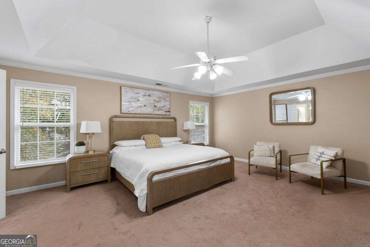 Welcome to Creekside - where space, comfort, and community come together! Tucked inside one of Hiram's most desirable swim/tennis neighborhoods, this home delivers everything you've been searching for on a generous corner lot. The entry opens to a bright, soaring foyer that sets a warm and inviting tone. On the main level you'll find a thoughtful layout with multiple gathering spaces, including a fireside family room, separate dining room, and a flexible office or study. The kitchen is designed for both everyday living and entertaining, featuring abundant cabinetry, solid-surface counters, and a breakfast area overlooking the family room. Step right out onto the oversized deck - perfect for backyard barbecues, celebrations, or simply relaxing outdoors. Upstairs, a spacious loft creates an additional lounge or reading area, while the owner's suite offers a true retreat with tray ceilings and a spa-style bath. Secondary bedrooms are generously sized, providing comfort and versatility for family or guests. The finished terrace level adds even more function - ideal for a theater, gym, playroom, or guest suite with its own private bath. Outside, the fenced backyard offers privacy and room to spread out. With resort-style amenities, a convenient location, and unmatched square footage, this Creekside home is a standout opportunity. Don't miss the chance to make it yours!