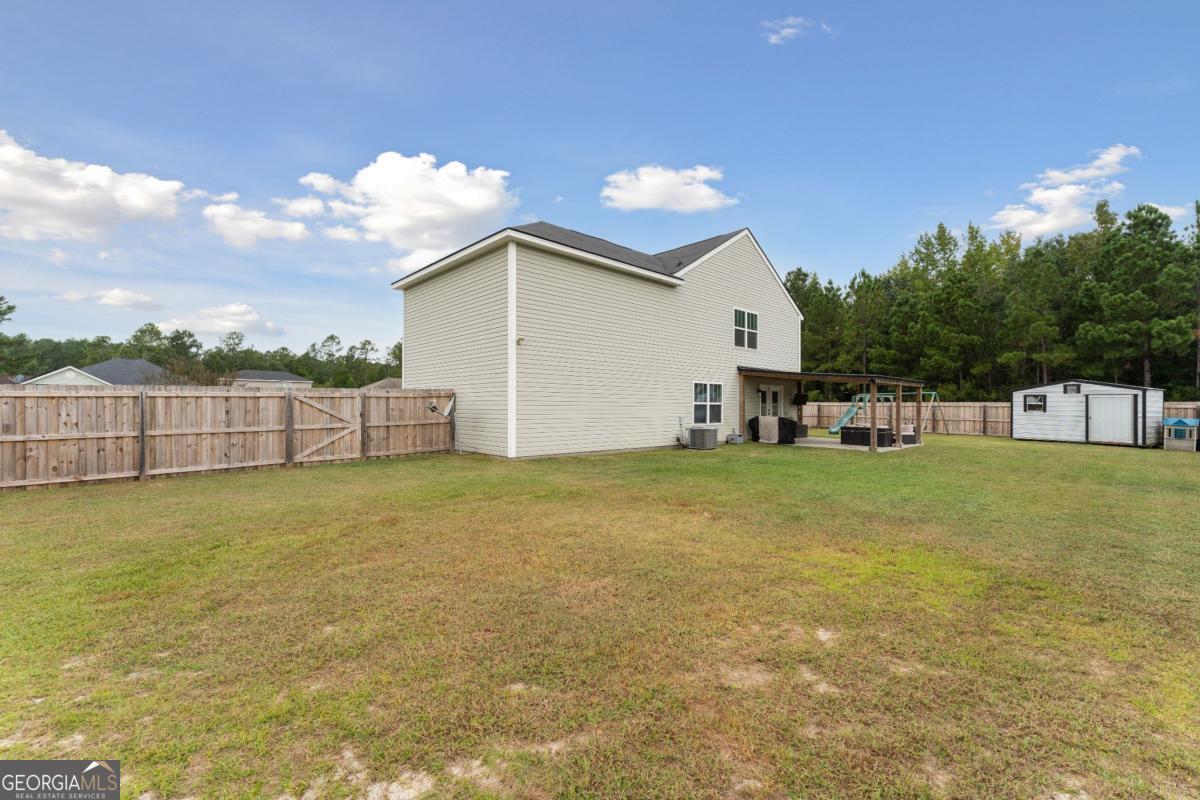 Welcome to this beautiful, 4 bedroom home located on a corner, which offers the perfect blend of comfort, style, and functionality. Inside, the open concept floor plan showcases LVP flooring throughout the main living areas. The spacious living room flows seamlessly into the kitchen, which is equipped with stainless steel appliances, an island with bar seating, and a pantry. Upstairs, the primary suite includes a large walk-in closet, a double sink vanity, and a 42" garden tub/shower. Additional bedrooms and a full bath are located down the hall, providing plenty of space for family or guests. The fenced backyard features an extended patio with a pergola, a swing set, a 14x8 storage shed, and an epoxied garage floor, creating both convenience and outdoor enjoyment. The expansive backyard is ideal for entertaining, relaxing, or play. Shadowbrook is an established neighborhood surrounded by protected wetlands and offers access to a community boat ramp. Dont miss your chance!