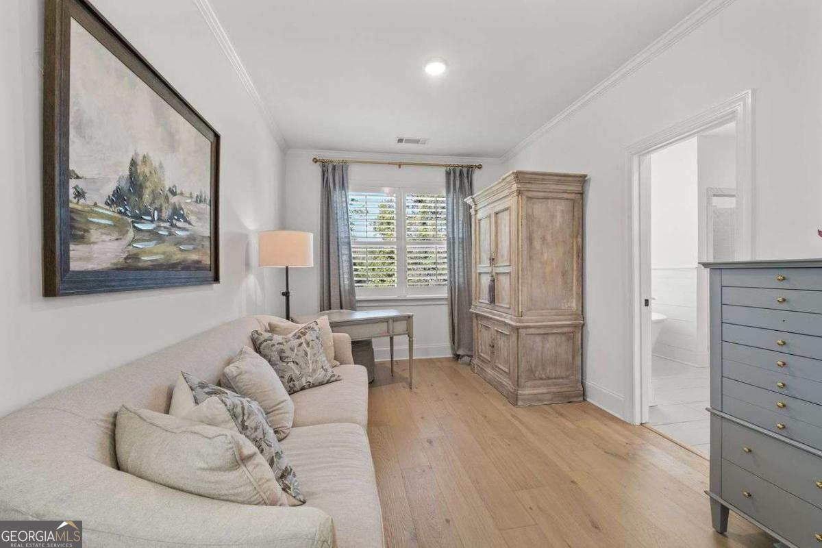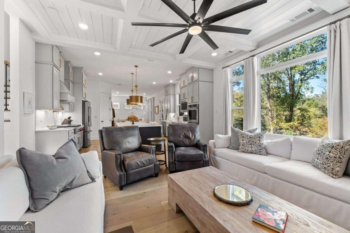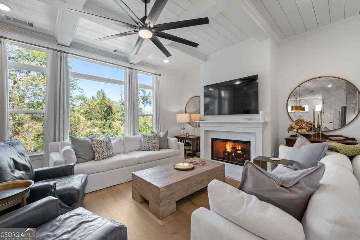 Luxury Living in Smyrna's Premier Gated Enclave! Experience designer luxury in this stunning 5-bedroom, 5-bath home perfectly situated in one of Smyrna's most sought-after gated communities! Backing up to serene woods and Nickajack Creek, this home offers privacy, elegance, and top-tier upgrades throughout! Sure to captivate Buyers with an eye for quality and design! Step inside to discover high-end hardwood floors, custom wainscoting, and coffered ceilings. The gourmet kitchen is a showpiece with an extended island, Wolf appliances, custom cabinetry, and designer lighting - ideal for entertaining. The open-concept layout flows effortlessly to a screened-in porch with a brick gas fireplace, creating the perfect indoor-outdoor living space. A main-level bedroom with a full bath doubles as a stylish office or guest suite. Upstairs, the luxurious owner's suite features a sitting area and a spa-inspired marble bathroom with a separate garden tub and shower. Two secondary bedrooms share a Jack-and-Jill bath, while another has its own private en suite. The finished basement is built for entertaining - complete with a media room, large open space, and a full bath. Nestled near premier shopping, dining, and recreation - including The Battery/Atlanta Braves Stadium, Silver Comet Trail, downtown Atlanta, and Hartsfield-Jackson Airport - all within an Excellent School District! This home has attention to details and will delight the most sophisticated buyer!