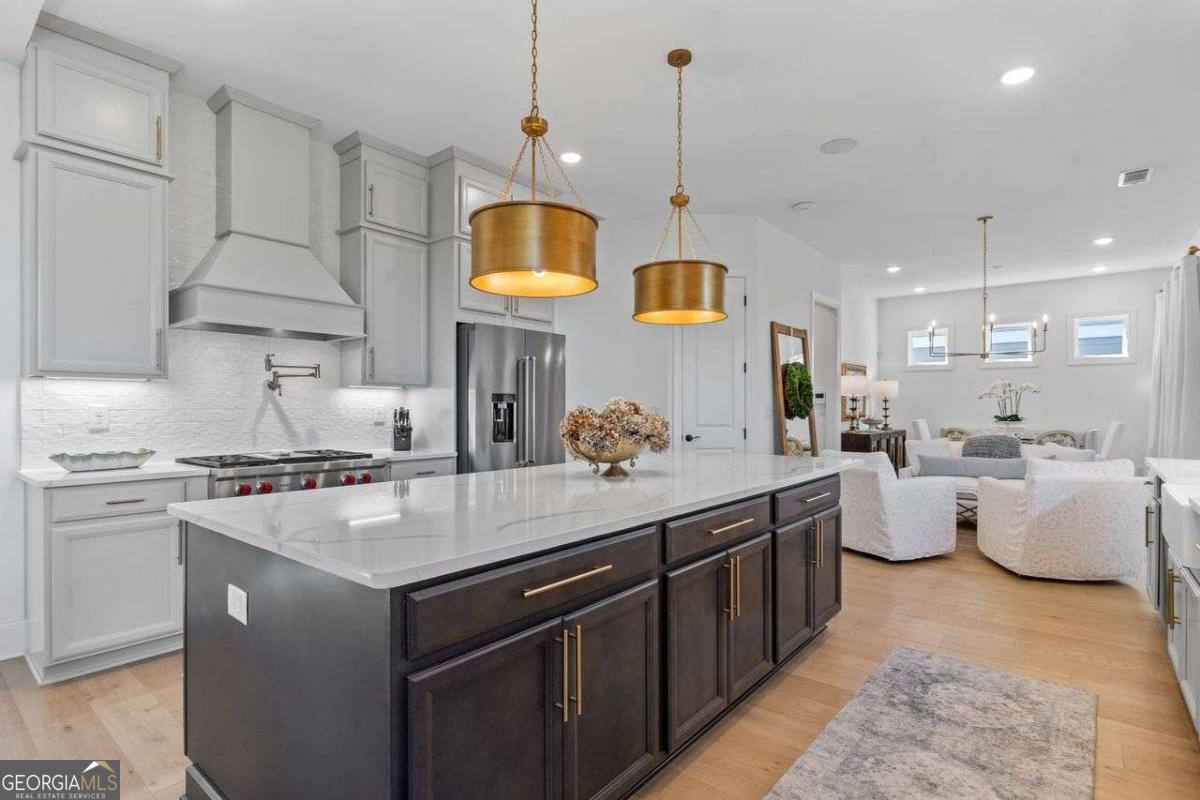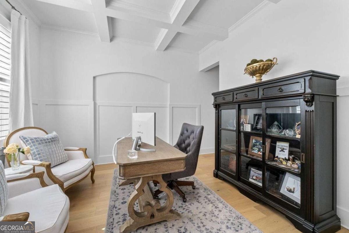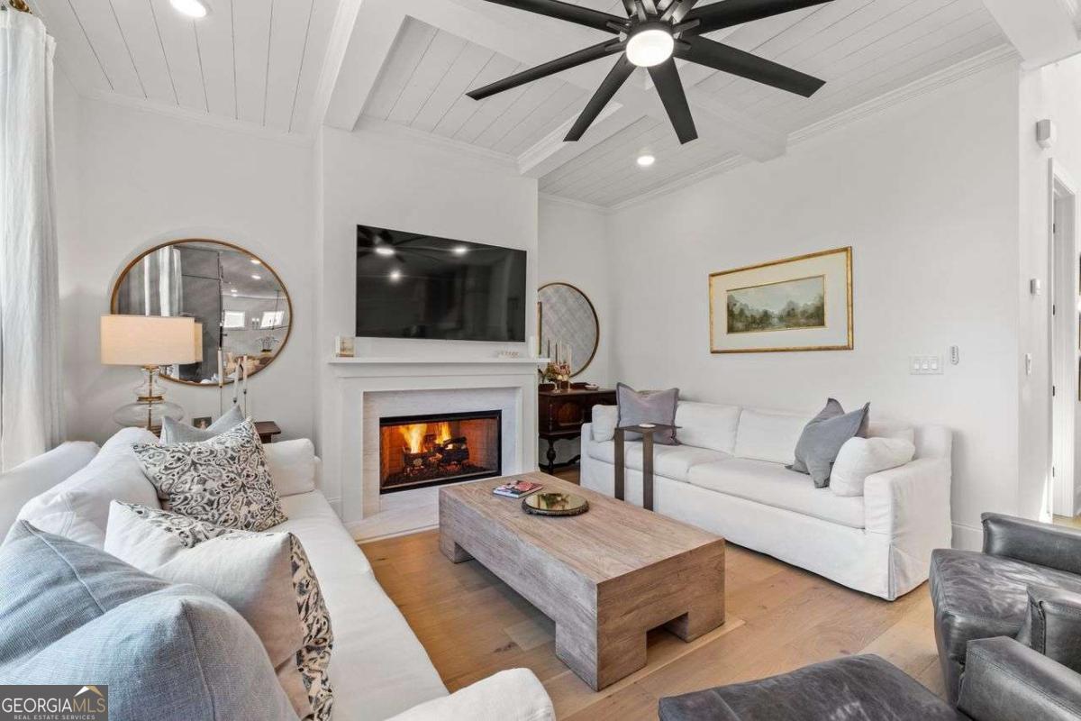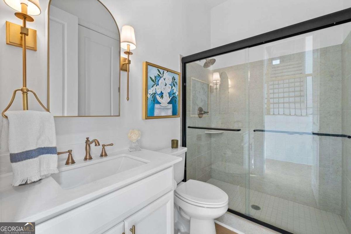 Luxury Living in Smyrna's Premier Gated Enclave! Experience designer luxury in this stunning 5-bedroom, 5-bath home perfectly situated in one of Smyrna's most sought-after gated communities! Backing up to serene woods and Nickajack Creek, this home offers privacy, elegance, and top-tier upgrades throughout! Sure to captivate Buyers with an eye for quality and design! Step inside to discover high-end hardwood floors, custom wainscoting, and coffered ceilings. The gourmet kitchen is a showpiece with an extended island, Wolf appliances, custom cabinetry, and designer lighting - ideal for entertaining. The open-concept layout flows effortlessly to a screened-in porch with a brick gas fireplace, creating the perfect indoor-outdoor living space. A main-level bedroom with a full bath doubles as a stylish office or guest suite. Upstairs, the luxurious owner's suite features a sitting area and a spa-inspired marble bathroom with a separate garden tub and shower. Two secondary bedrooms share a Jack-and-Jill bath, while another has its own private en suite. The finished basement is built for entertaining - complete with a media room, large open space, and a full bath. Nestled near premier shopping, dining, and recreation - including The Battery/Atlanta Braves Stadium, Silver Comet Trail, downtown Atlanta, and Hartsfield-Jackson Airport - all within an Excellent School District! This home has attention to details and will delight the most sophisticated buyer!