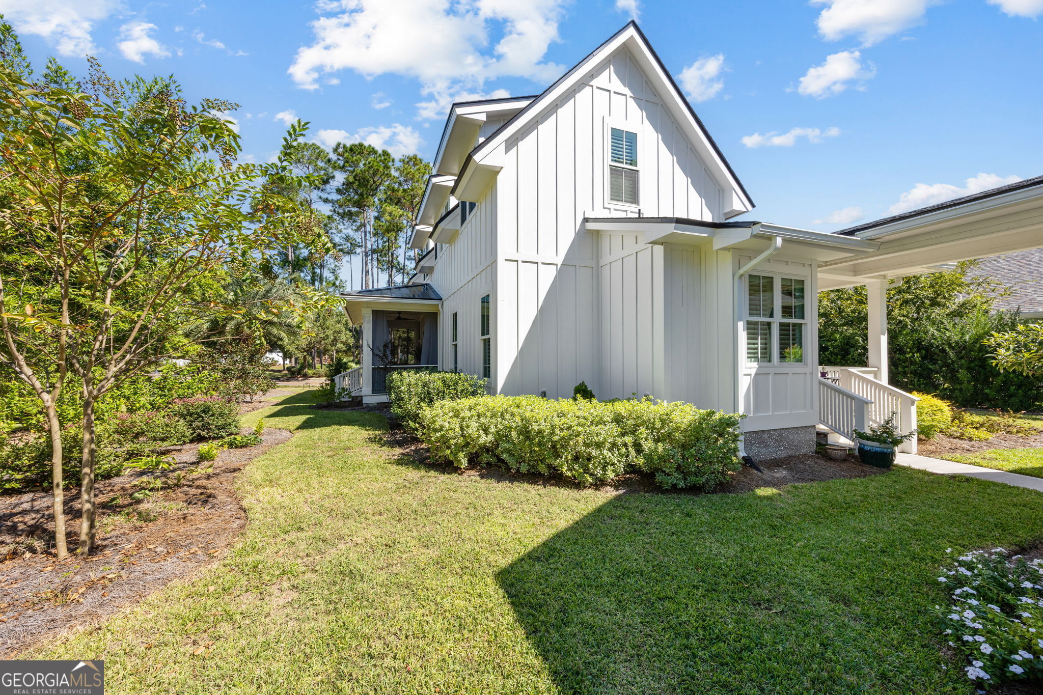 Perfect Setting. Perfect Home. Perfect Neighborhood. Welcome to Park Place at Cumberland Harbour, where charm and craftsmanship meet in this custom-built Sugarberry plan - a home that feels like the complete package. Step inside to discover luxury upgrades throughout, from the plantation shutters and designer lighting to the custom woodwork that gives every room its own personality. The main living area offers an inviting open-concept layout, anchored by a cozy great room and a beautifully finished kitchen that makes entertaining effortless. The primary suite on the main level is a true retreat, featuring a spa-inspired bath with elegant tile and thoughtful details. Upstairs, two spacious bedrooms share a full bath - perfect for guests, family, or flexible living. Enjoy outdoor living at its best with wide front and back porches that capture the peaceful, treehouse-like setting this community is known for. A screened patio, separate mud/laundry room, and half bath for guests add function and comfort. Outside, a shark-coated two-car garage is connected by a charming walkway, and the large lot provides extra privacy on both sides. Every element - from design to location - blends into a rare balance of beauty, comfort, and Southern character.
