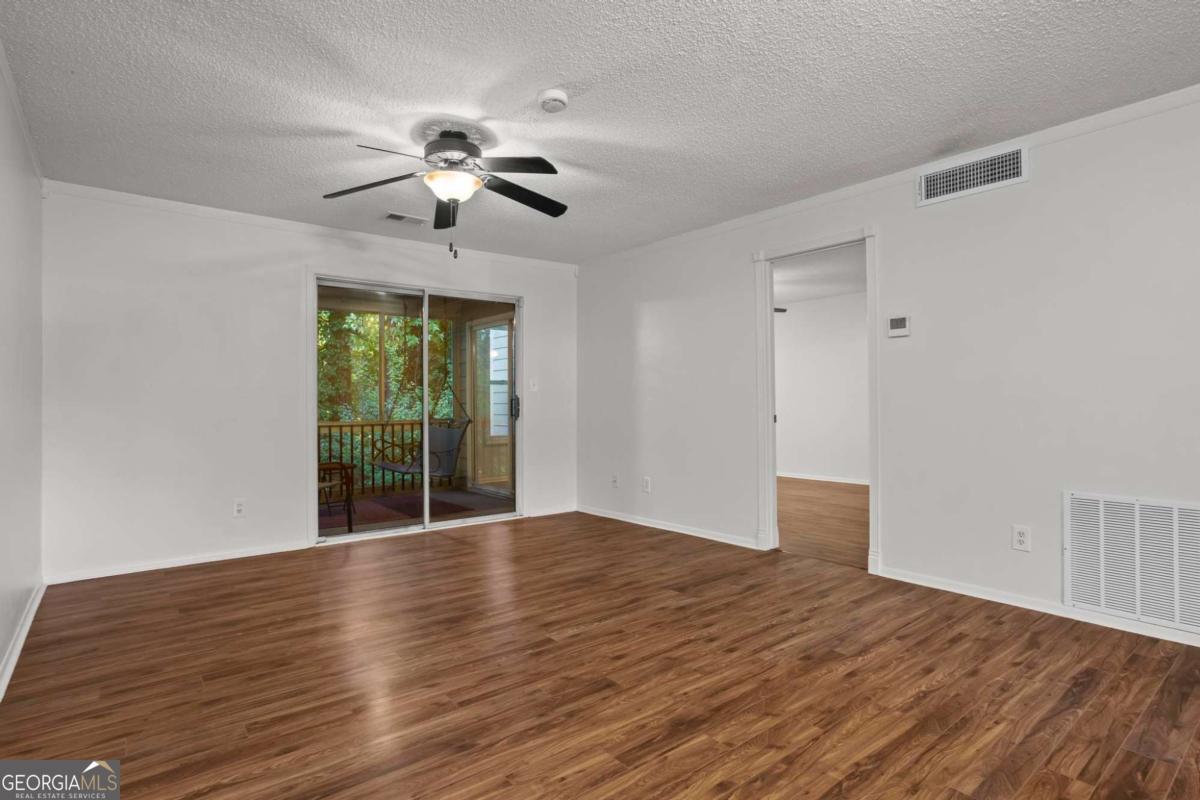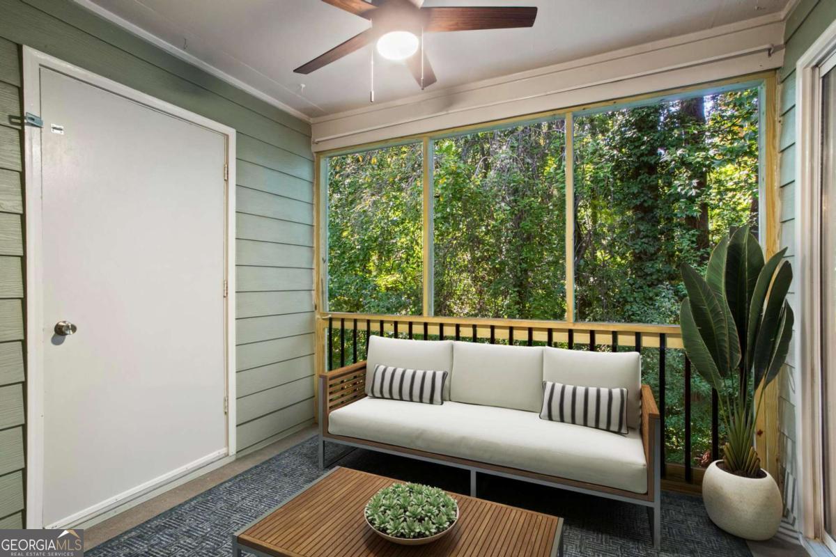 Just minutes from The Battery Atlanta, Truist Park, and the Cobb Galleria, this top-floor condo blends city convenience with peaceful surroundings. Inside, beautiful floors and a granite kitchen with stainless steel appliances flow into open living and dining spaces. The spacious bedroom suite features a cozy fireplace, an updated full bath, and access to a screened balcony with extra storage - ideal for enjoying morning coffee or unwinding in the evening with wooded views. A half bath off the main living area adds convenience for guests. Enjoy a beautifully landscaped community with a pool, clubhouse, tennis courts, and a tranquil lake for relaxing. With easy access to I-75, I-285, and all of Cobb's top shopping and dining, 36 Doranne Court offers comfort, convenience, and calm in one perfect package.