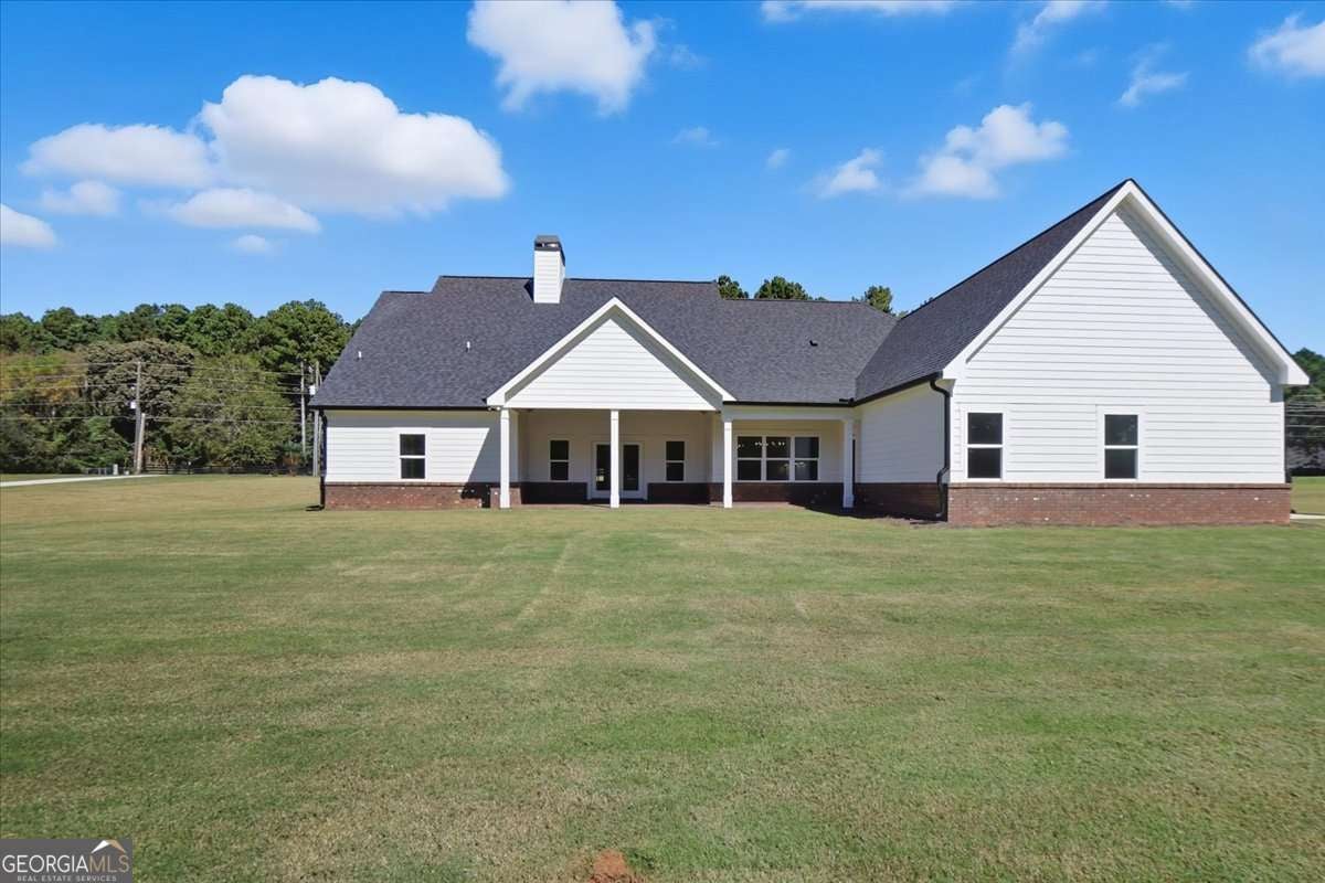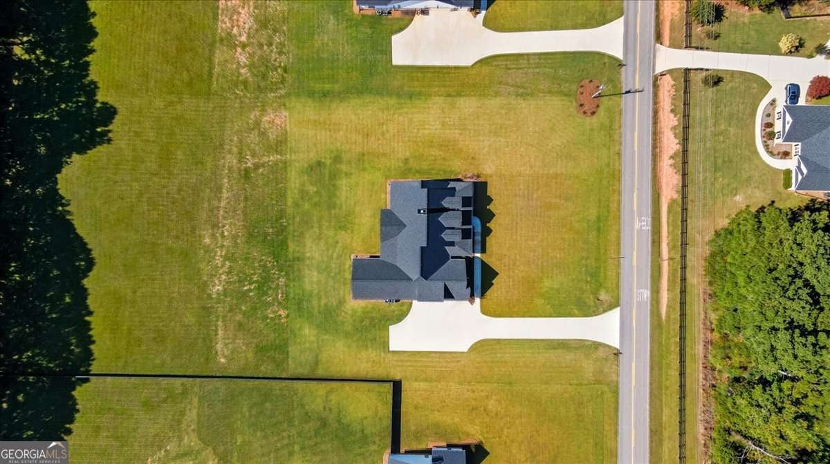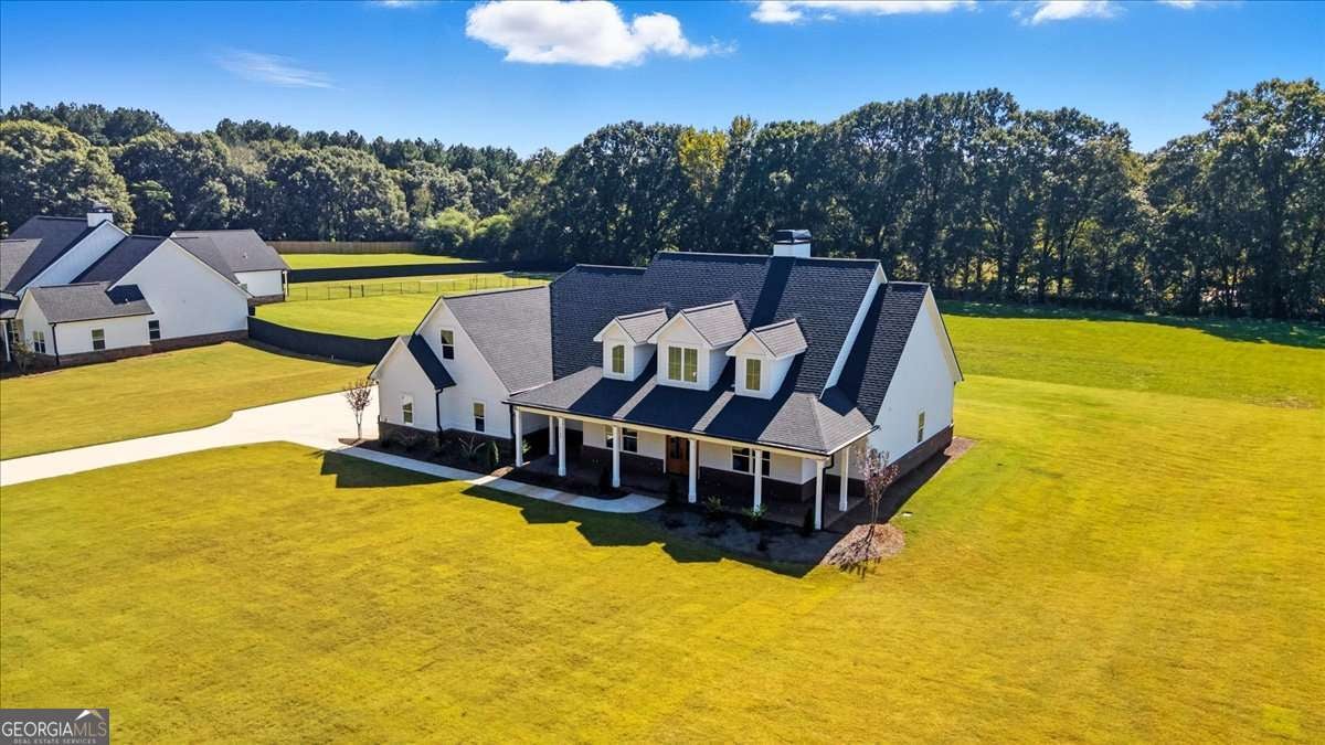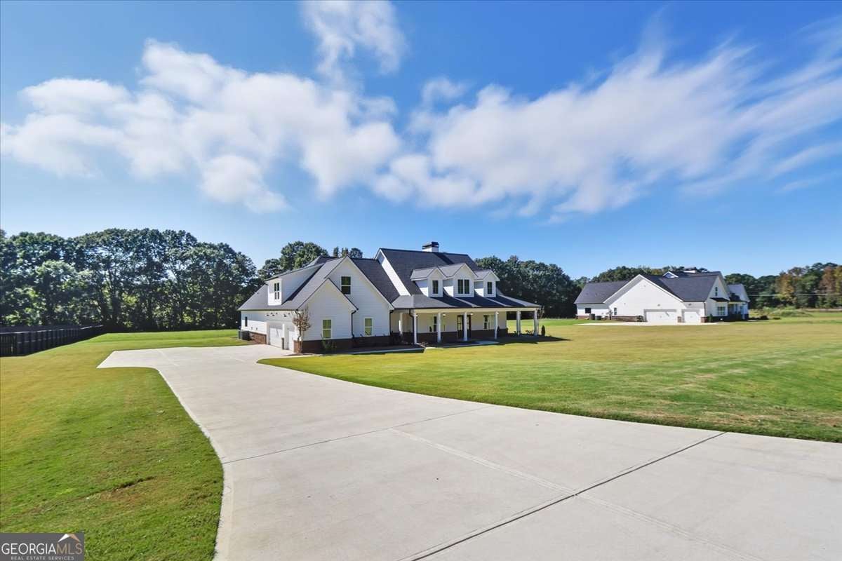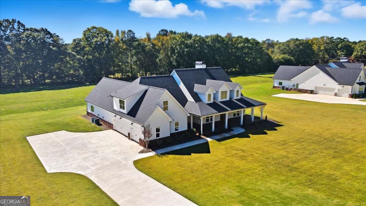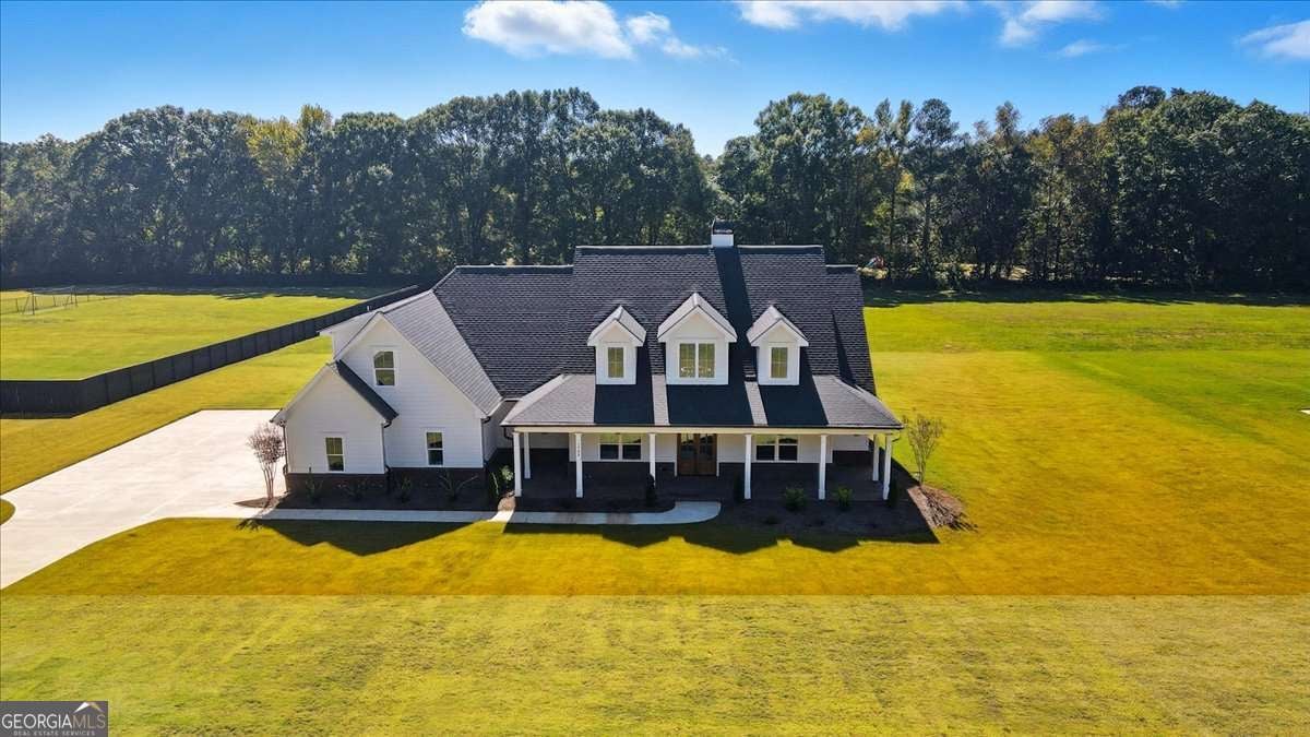 Welcome to this beautiful custom-built home, privately nestled on 2.03 acres just minutes from Downtown Monroe. Step through the front door into the grand foyer with a tongue-and-groove ceiling. You're greeted by soaring ceilings, elegant millwork, and views into the vaulted great room. The great room features a brick raised-hearth fireplace and wide-plank light flooring that continues throughout the home. Flowing seamlessly from the great room, the beautiful kitchen showcases quartz countertops, a stone backsplash, and a custom vent hood. A four-piece stainless steel appliance package, farmhouse-style sink, and island bar seating complete this inviting space-perfect for everyday living and entertaining. Off the foyer, you'll find a flex room that can serve as an office, library, or guest space, complete with French doors. The primary suite provides a relaxing retreat with a spa-inspired ensuite that includes a soaking tub, a large tiled shower with multiple rain heads, and dual vanities with quartz countertops. The oversized custom closet features built-in shelving and direct access to the laundry room, which includes built-in cabinetry for added convenience. On the opposite side of the home, you'll find three additional bedrooms and two full bathrooms. The landing area features custom cabinetry, exquisite trim work, and a half bath. Upstairs leads to a spacious bonus room with a full bathroom, walk-in closet, and ample attic storage. Step outside to enjoy the beautiful covered front and back porches featuring ceiling fans, pendant lighting, and tongue-and-groove wood ceilings. The brick paver patio offers a perfect spot to relax or entertain, overlooking the expansive backyard complete with fresh sod and an irrigation system. The three-car side-entry garage with openers and a spacious driveway provides abundant space for parking and storage. This brand-new home combines comfort, craftsmanship, and style-all within a private, no-HOA setting.