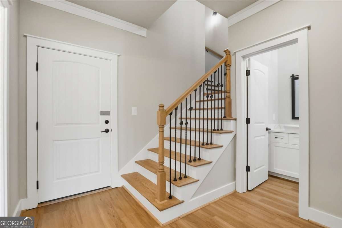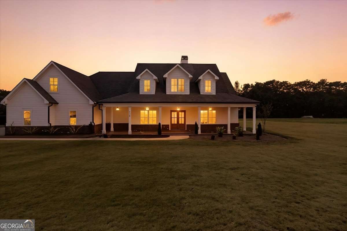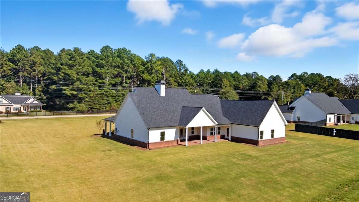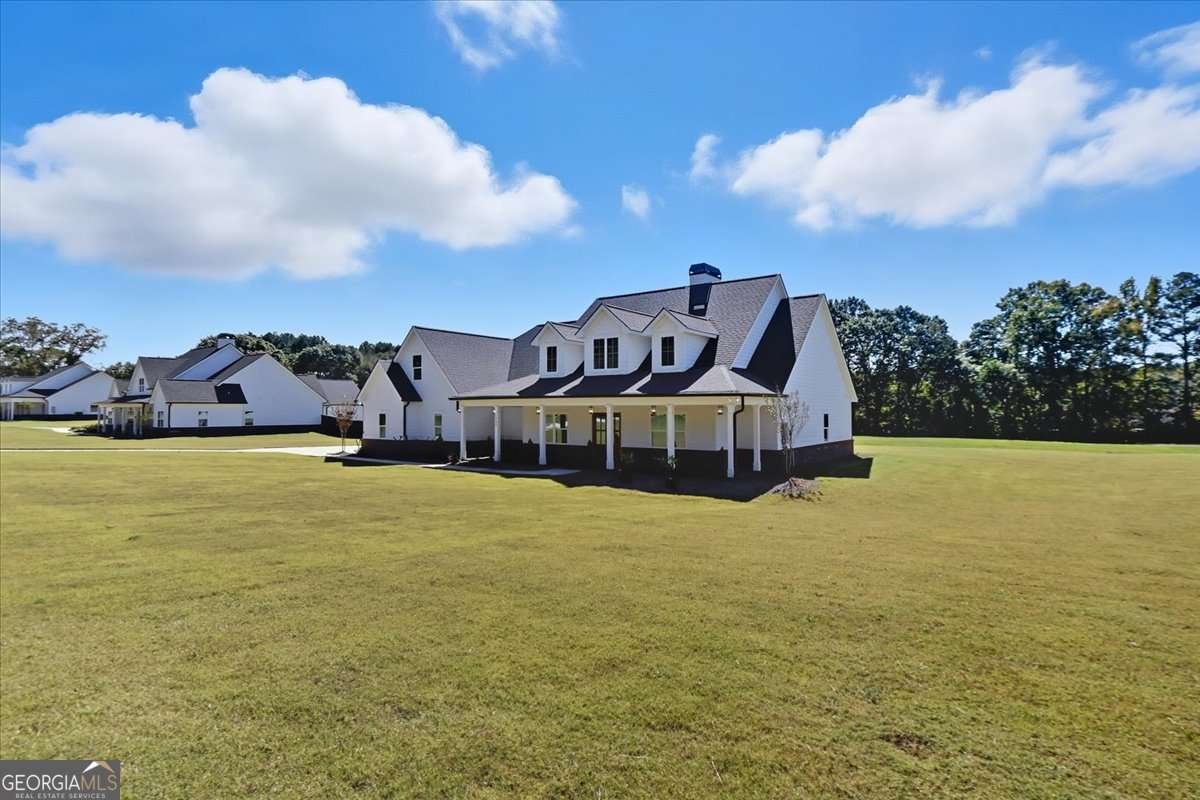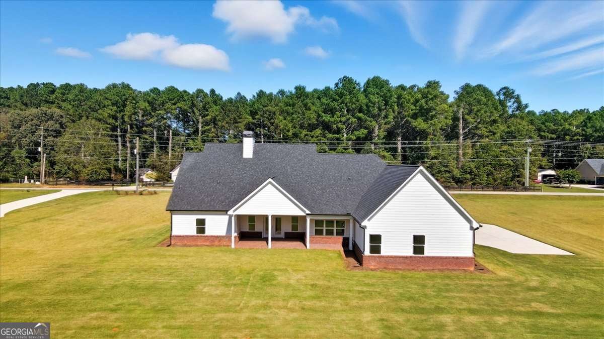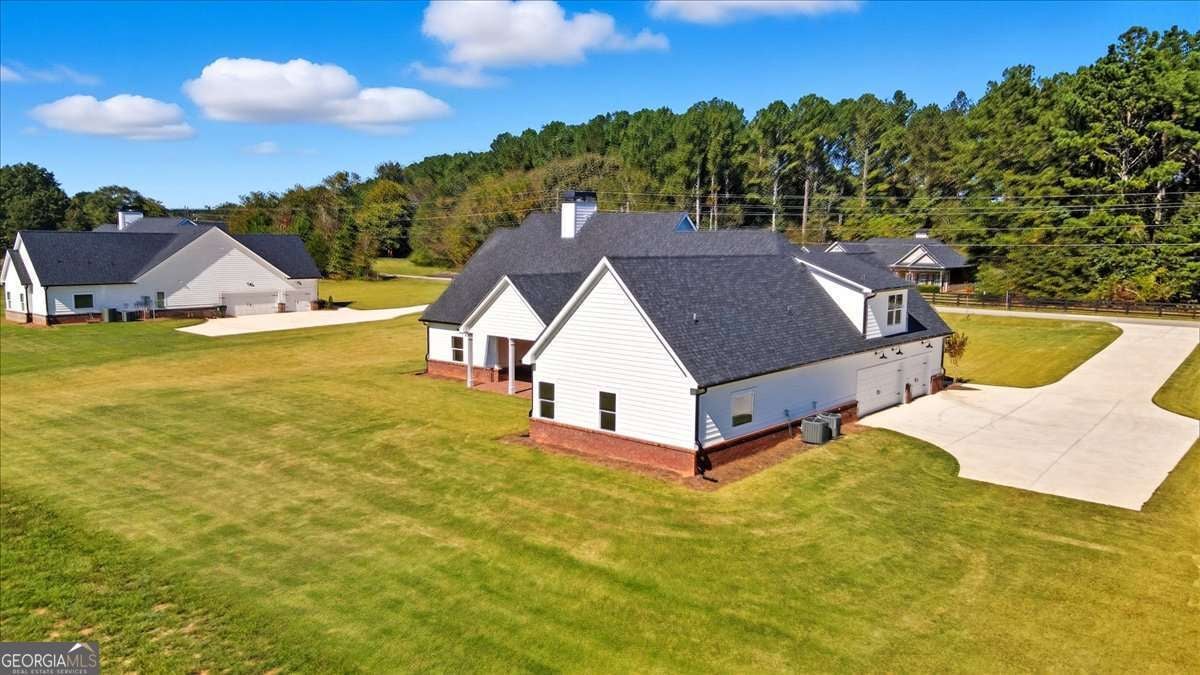 Welcome to this beautiful custom-built home, privately nestled on 2.03 acres just minutes from Downtown Monroe. Step through the front door into the grand foyer with a tongue-and-groove ceiling. You're greeted by soaring ceilings, elegant millwork, and views into the vaulted great room. The great room features a brick raised-hearth fireplace and wide-plank light flooring that continues throughout the home. Flowing seamlessly from the great room, the beautiful kitchen showcases quartz countertops, a stone backsplash, and a custom vent hood. A four-piece stainless steel appliance package, farmhouse-style sink, and island bar seating complete this inviting space-perfect for everyday living and entertaining. Off the foyer, you'll find a flex room that can serve as an office, library, or guest space, complete with French doors. The primary suite provides a relaxing retreat with a spa-inspired ensuite that includes a soaking tub, a large tiled shower with multiple rain heads, and dual vanities with quartz countertops. The oversized custom closet features built-in shelving and direct access to the laundry room, which includes built-in cabinetry for added convenience. On the opposite side of the home, you'll find three additional bedrooms and two full bathrooms. The landing area features custom cabinetry, exquisite trim work, and a half bath. Upstairs leads to a spacious bonus room with a full bathroom, walk-in closet, and ample attic storage. Step outside to enjoy the beautiful covered front and back porches featuring ceiling fans, pendant lighting, and tongue-and-groove wood ceilings. The brick paver patio offers a perfect spot to relax or entertain, overlooking the expansive backyard complete with fresh sod and an irrigation system. The three-car side-entry garage with openers and a spacious driveway provides abundant space for parking and storage. This brand-new home combines comfort, craftsmanship, and style-all within a private, no-HOA setting.