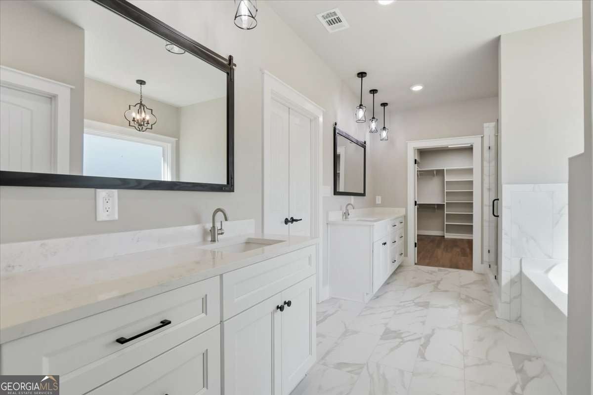 - Interior FeaturesDouble Vanity, High Ceilings, Master On Main Level, Vaulted Ceiling(s), Walk-In Closet(s)