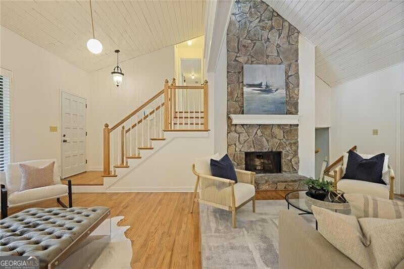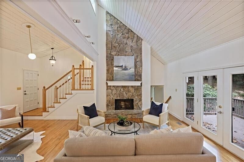 Contemporary retreat in the heart of Historic Vinings! Tucked away on a private cul-de-sac off Orchard Knob and surrounded by multimillion-dollar homes, this light-filled residence offers soaring ceilings, floor-to-ceiling windows, and two beautiful stone fireplaces. The open-concept multiple living and dining spaces connect seamlessly to a granite kitchen with breakfast room and a convenient laundry and mudroom off the garage. The upstairs primary suite features a beautifully renovated marble bathroom and dual closets, with two additional bedrooms and a shared bath. The terrace level provides another spacious family room with fireplace, a guest bedroom, full bath, and an unfinished storage room currently used as a music room. Outdoor living shines with expansive decks overlooking a private, flat backyard-perfect for entertaining or play. The community itself is equally inviting, offering a welcoming environment for neighborhood gatherings, outdoor recreation, and enjoying Atlanta's beautiful days. Additional highlights include a new roof, 2-car garage, and .58-acre lot with large, flat front and back yards. A rare opportunity to enjoy light-filled design and modern comforts in one of Vinings' most desirable neighborhoods! Close proximity to public and private schools, Truist Park and Vinings Jubilee.