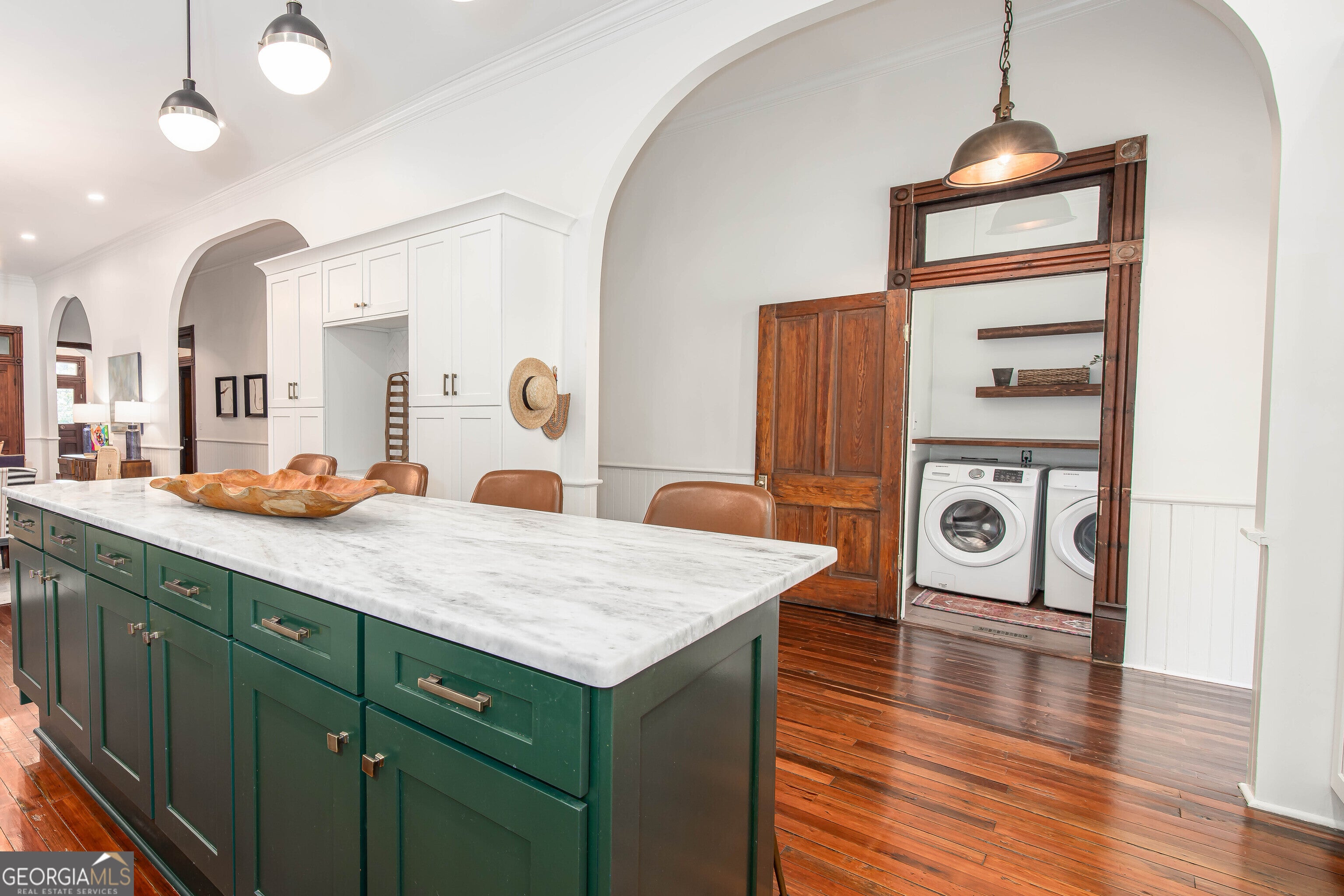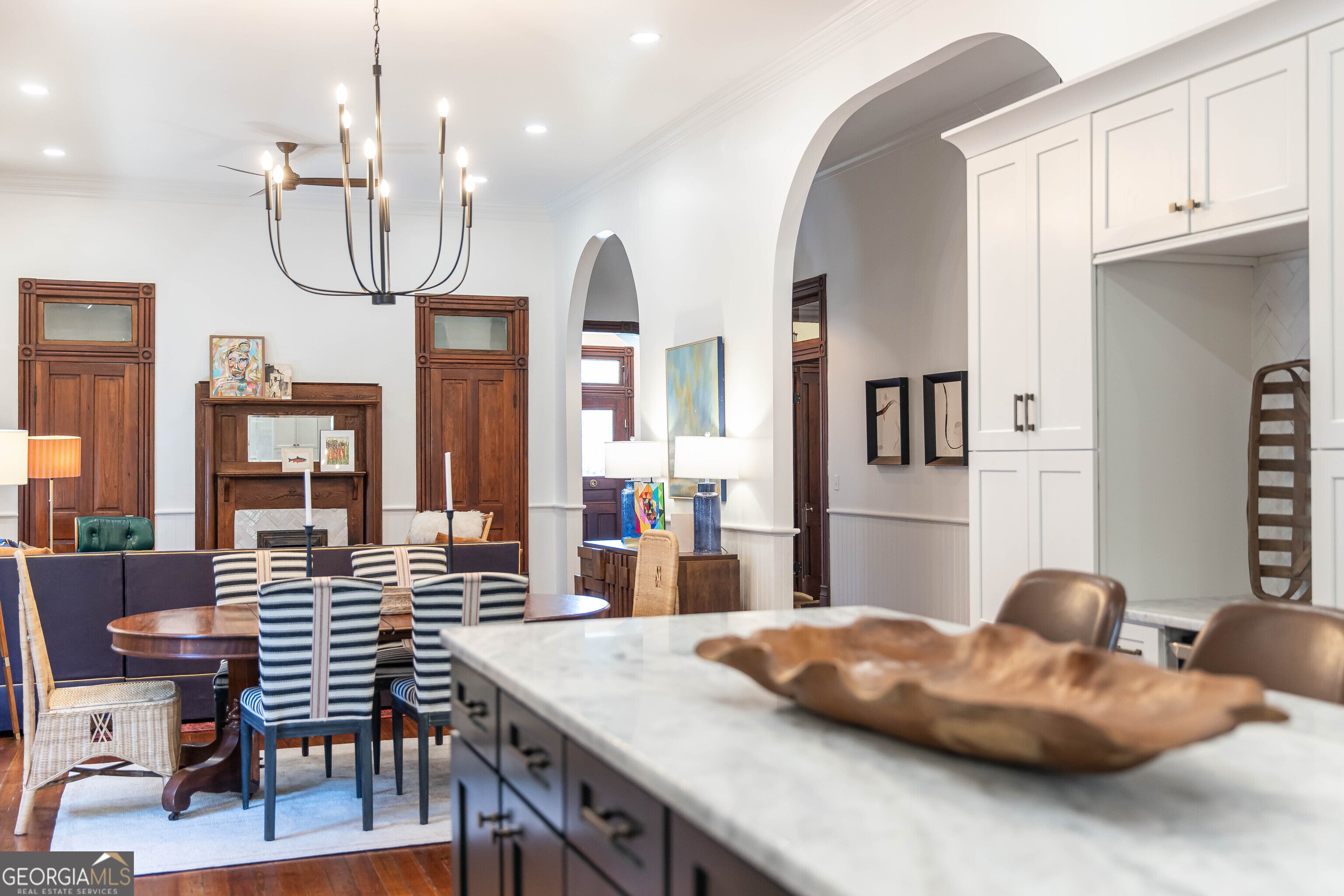 Own a Piece of History in the Heart of Uptown Columbus! Welcome to 715 1st Avenue, a beautifully preserved and thoughtfully updated historic gem located in the lively and highly sought-after Uptown Columbus district. This stunning 4-bedroom, 3-bath home blends timeless Southern charm with modern comforts - all just steps away from the best shopping, dining, and entertainment Columbus has to offer. Built 142 years ago, this home showcases original hardwood floors, soaring 12-foot ceilings, and working transom windows, setting the tone for elegance and character the moment you step inside. The downstairs level features original flooring, wainscoting, trim, and solid wood doors - all lovingly maintained to honor the home's historic integrity. The chef's kitchen is a showstopper with marble countertops, hand-crafted zellige tile backsplash, stainless steel appliances, and a huge center island perfect for entertaining or family gatherings. Watch the kids play in the freshly sodded backyard right from your kitchen window. A convenient golf cart storage area in the side yard keeps Uptown exploration within easy reach. Enjoy the practicality of laundry rooms both upstairs and downstairs, and the beauty of all new light fixtures and modern ceiling fans throughout the home. This is not just a house - it's a rare opportunity to own a piece of Columbus history while living in one of its most vibrant neighborhoods. Reach out today!