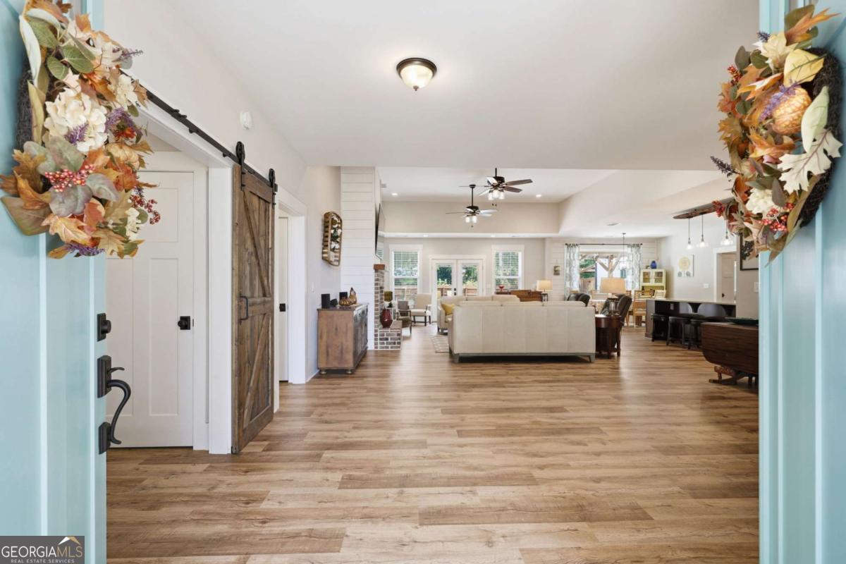Stunning Modern Farmhouse on 3.93 Acres with In-Ground Salt Water Pool and Outdoor Shower & In-Law Suite or Game Room with a Full Bathroom with direct access to the pool! Welcome to 855 Geiger Road, a custom-designed retreat in Jefferson, GA, offering the perfect blend of modern luxury and rustic charm. Set on a corner lot with 3.93 private acres, this 5-bedroom, 4-bath home was thoughtfully crafted with high-end finishes and one-of-a-kind details throughout. Step inside to find a spacious open floor plan featuring a chef's kitchen with granite countertops, a massive granite top island, and 100-year-old reclaimed wood accents used for the shelving, lighting fixture, and fireplace mantel-a true design statement that adds warmth and character. The gas stove creates the perfect ambiance for cozy winter nights, while 8-foot doors and large windows fill the home with natural light. All the bathrooms have custom tile work, the Master bath has a huge tub and huge separate tile and glass shower. Seller requires proof of funds or pre-approval letter before showing.