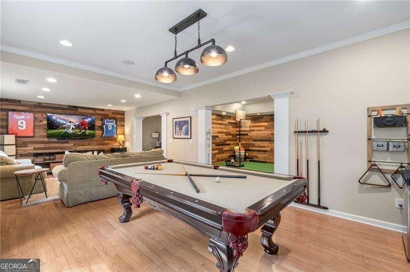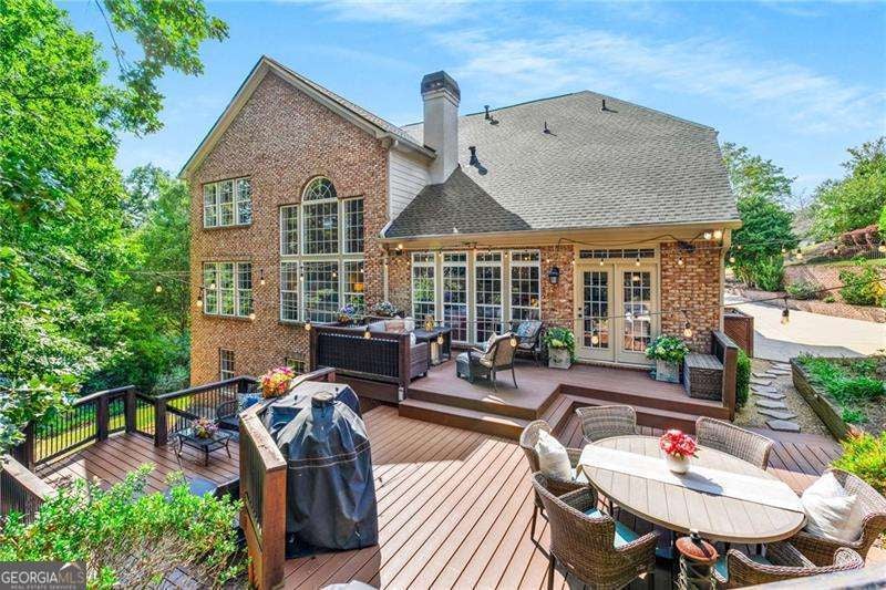 Private 1.2 Acres in a Cul-de-sac!!! One of the largest wooded lots in Edinburgh with 4 sided brick. This Prestigious home in Bear's Best award-winning golf course community designed by Jack Nicklaus and offers three levels of extraordinary living and elegance. Six spacious bedrooms and six bathrooms with a finished basement . Home features a New Roof in 2023 , NEWER AC Units with a CLEAN AIR HOME System and a tankless hot water heater installed in 2022. A luxurious HUGE backyard oasis also has a flat front and flat back backyard. There's three spacious sundecks for outdoor dining and relaxation.Upon entering a foyer with high ceilings this home offers abundant natural light.The open-concept living areas are perfect for both entertaining and everyday living, featuring a chef's gourmet kitchen with stainless appliances , mudroom, pantry and a stylish breakfast nook with a door leading to the sundeck. The keeping room boasts a cozy stacked stone fireplace. The Living Room is two stories with a double sided fireplace. Large Dining Room perfect for entertaining.There's a guest bedroom on the main floor with its own bathroom. The primary suite is a true retreat with a lavish en-suite bathroom with double vanities, a soaking tub, and a separate shower and a large closet .Each of the additional bedrooms upstairs are thoughtfully designed with 2 more bathrooms .The finished terrace level has a ton of natural lighting with windows and doors . Boasts a billiards room with pool table ,separate game room , lovely sitting room, another spacious bedroom with full bathroom and a separate room for an office. Also unfinished fitness room and storage room for a workshop. This is an entertainer's dream home perfect for gatherings outside for dining, zip liping, roasting marshmallows by the fire pit , jumping on the trampoline or walking to the river to go fishing. Don't miss this rare opportunity to own a piece of paradise. Edinburgh is a golf cart friendly neighborhood and offers fantastic amenities, including an Olympic-size pool, a waterslide, tennis courts, a fitness center, a playground and a basketball court. The very active homeowners association plans multiple social events throughout the year. The neighborhood is moments from the Chattahoochee River, a short ride to Suwanee Town Center, Lake Lanier, destination shopping, dining and entertainment. All this in North Gwinnett's award winning schools. Riverside Elementary, North Gwinnett Middle School and North Gwinnett High School. HURRY THIS HOME WON'T LAST LONG.