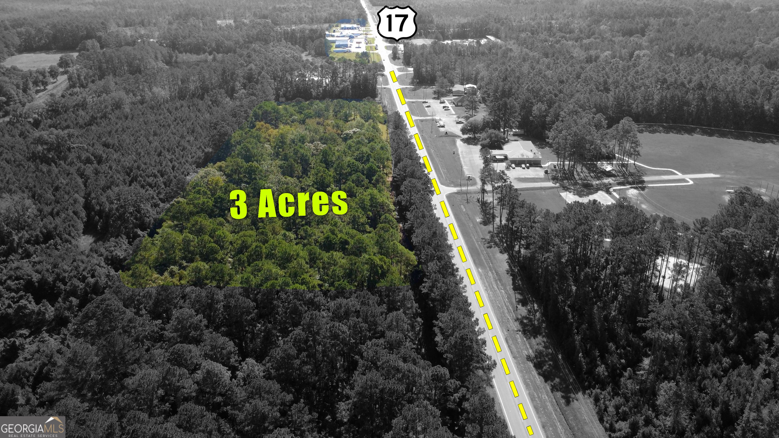 Prime 3-acre commercial parcel just 1/2 mile from I-95 and Hwy 17, offering outstanding visibility and accessibility. Positioned directly across from a bustling recreation complex-home to local baseball and youth football-this site benefits from steady community traffic. With gas stations and dining options nearby, it's an ideal location for a business seeking prominence and convenience. High and dry, this property is well-suited for a wide range of commercial or civic development projects. With major roadways nearby and constant local activity, this could be the address that elevates your vision from plans to lasting success.