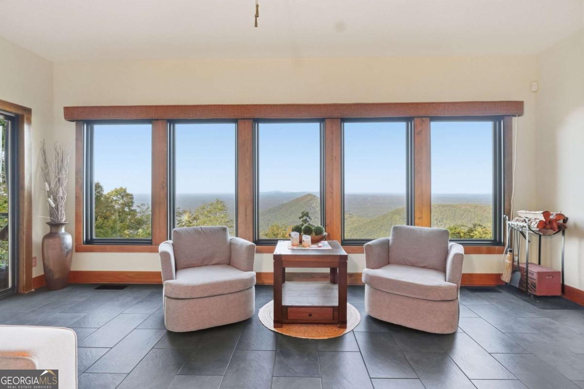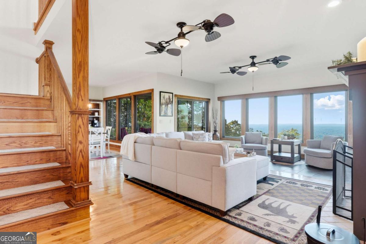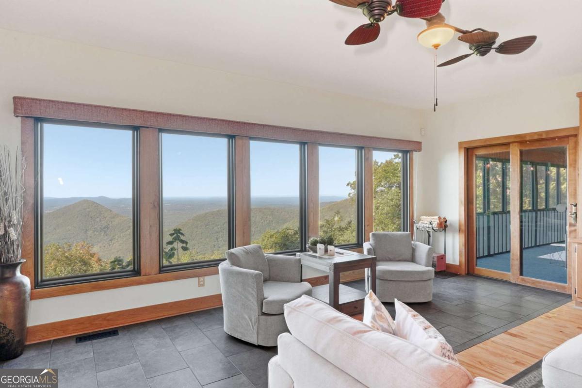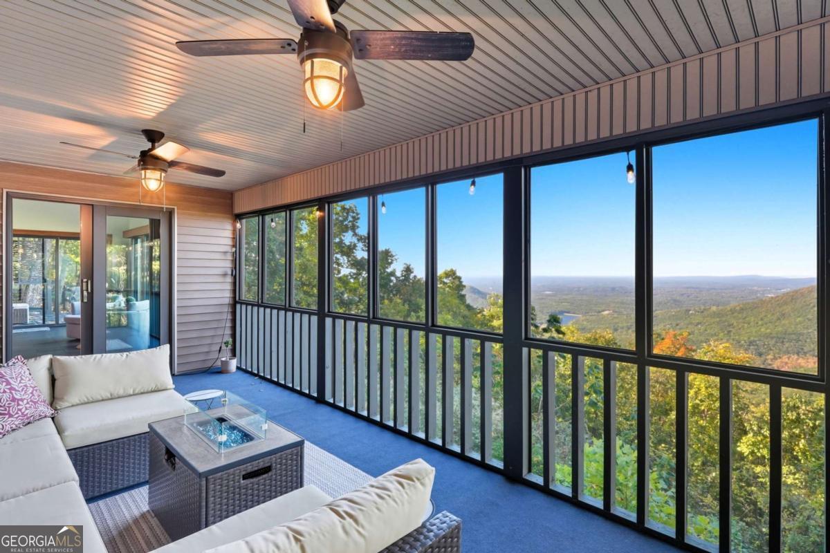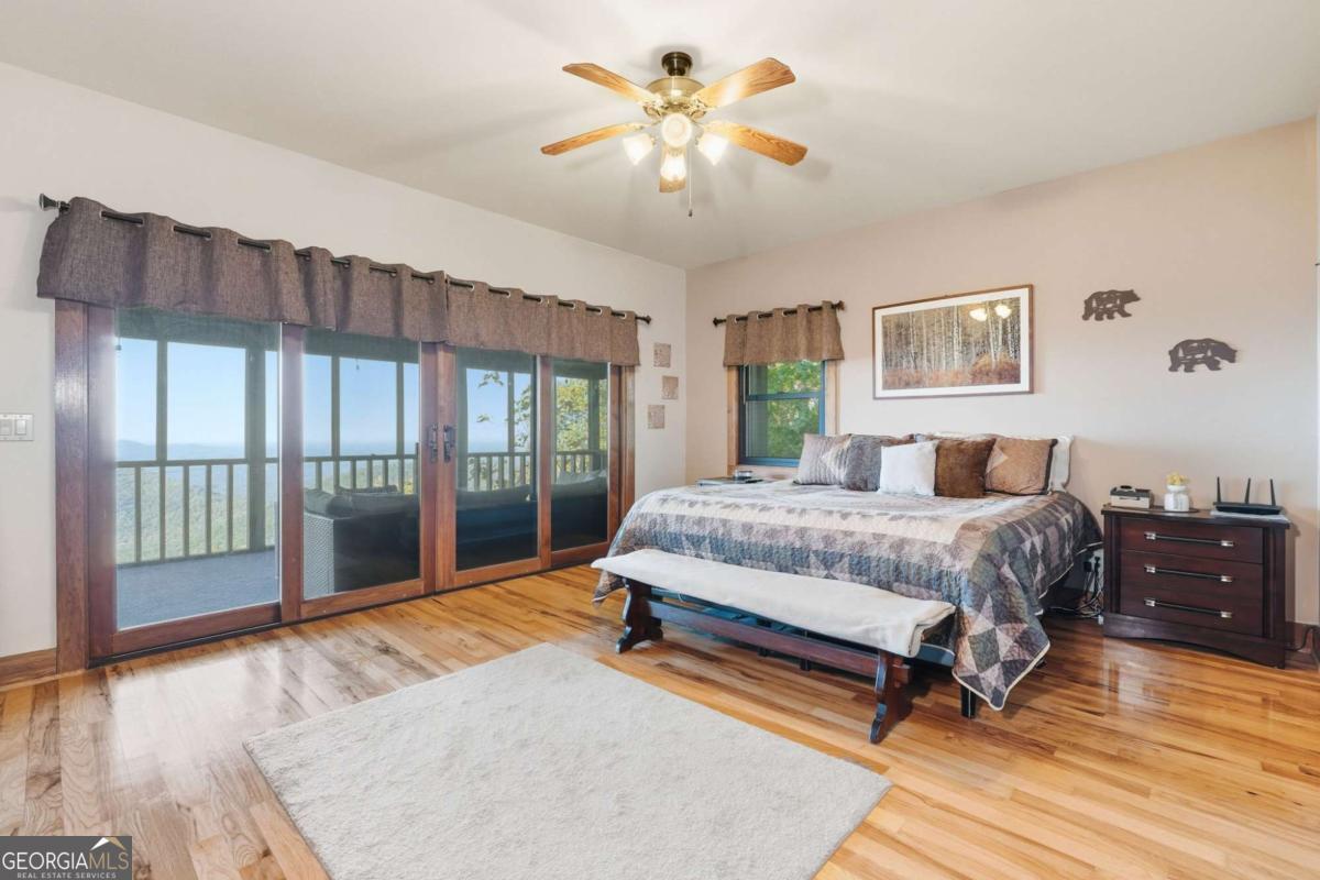 Experience breathtaking long-range southwest mountain and lake views (sunsets included!) from this exceptional custom home perched high on a private ridge in one of Jasper's most desirable mountain communities. This 5-bedroom, 3-bath retreat sits behind a private gated entrance with a circular driveway for easy access and convenient kitchen-level garage parking. Truly one of a kind, this home combines elegant design with thoughtful updates, offering an ideal blend of luxury and everyday comfort. The main level showcases a spacious great room with soaring ceilings, a stone fireplace, and walls of windows framing the panoramic mountain and water views. The stunning updated kitchen features custom cabinetry, quartz countertops, and top-of-the-line appliances-perfect for both everyday living and entertaining. The primary suite on the main level is a true sanctuary, offering access to the covered deck to enjoy the view, along with a spa-inspired bath featuring double vanities, an oversized walk-in shower, and a separate whirlpool tub. All bathrooms have been beautifully updated, continuing the home's modern, cohesive design. Throughout most of the home, Anderson "Energy Star" insulated windows with UV protection enhance comfort and efficiency, while motorized shades on the main and upper levels provide climate control at the touch of a button. The fully finished terrace level expands the living space with a large family room, home gym, and additional bedrooms-ideal for guests or multi-generational living. Outdoor spaces are equally impressive, including multiple decks and screened porches perfect for enjoying the sweeping mountain vistas. A recently upgraded well system with a 1,500-gallon tank, new pumps, and a DAP pressure monitoring system ensures consistent water pressure and reliability. With its perfect combination of craftsmanship, comfort, and modern functionality-plus easy access to Jasper, Ellijay, Dawsonville, and nearby hiking trails-this home is a rare opportunity to own a move-in-ready mountain retreat with every upgrade already done.