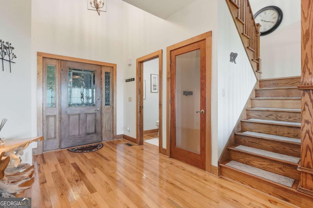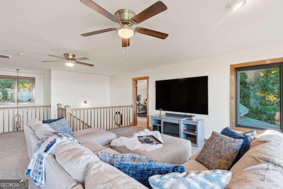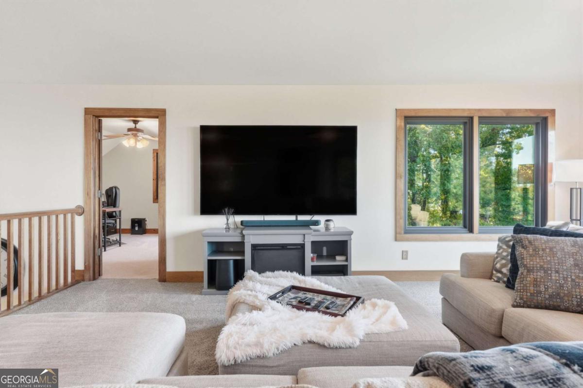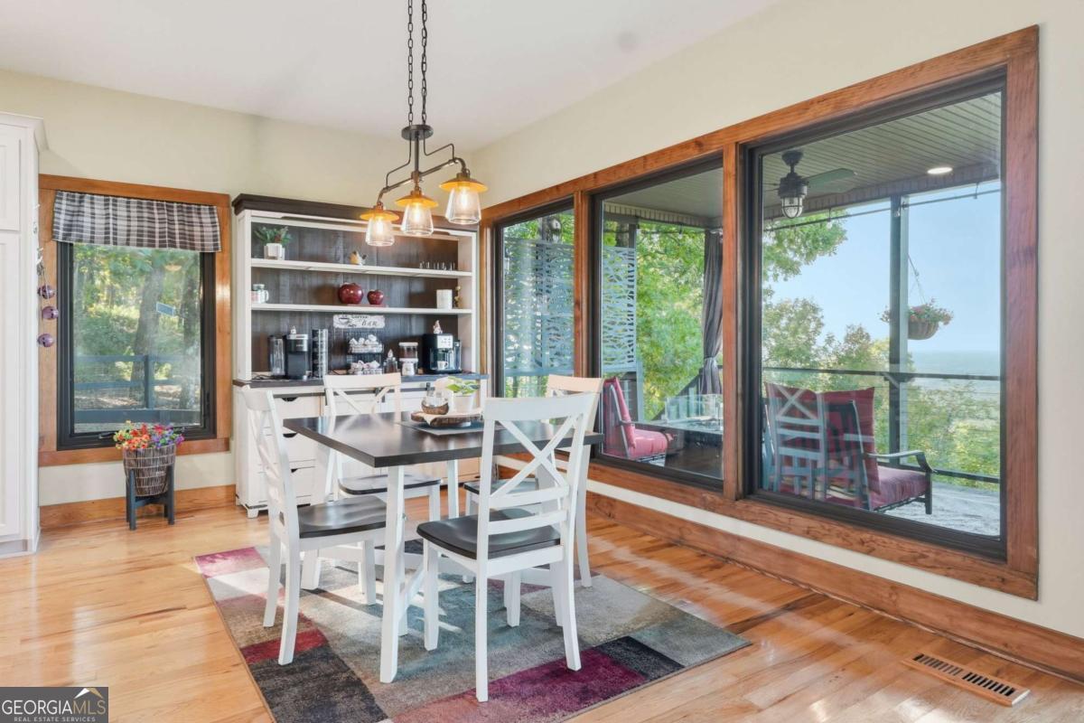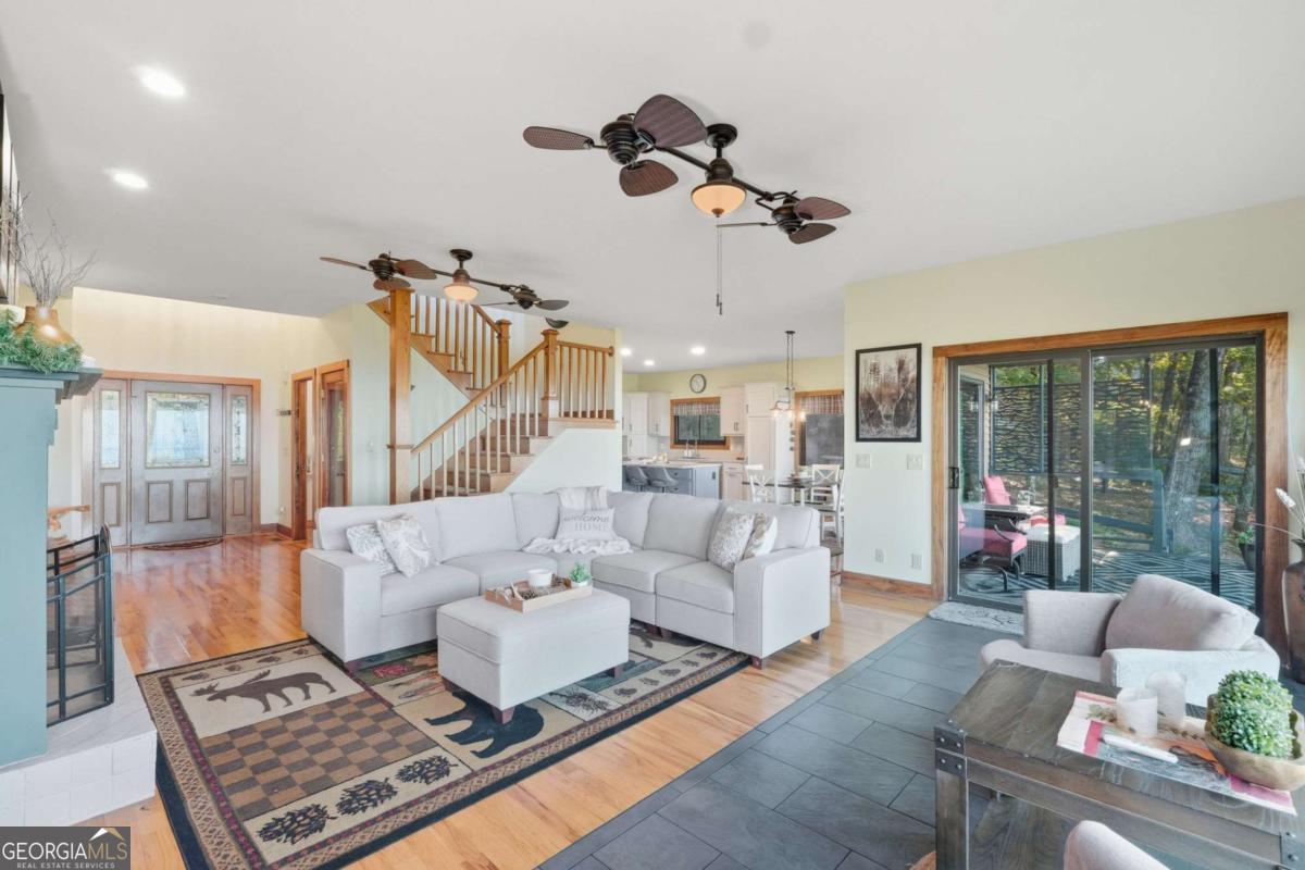 Experience breathtaking long-range southwest mountain and lake views (sunsets included!) from this exceptional custom home perched high on a private ridge in one of Jasper's most desirable mountain communities. This 5-bedroom, 3-bath retreat sits behind a private gated entrance with a circular driveway for easy access and convenient kitchen-level garage parking. Truly one of a kind, this home combines elegant design with thoughtful updates, offering an ideal blend of luxury and everyday comfort. The main level showcases a spacious great room with soaring ceilings, a stone fireplace, and walls of windows framing the panoramic mountain and water views. The stunning updated kitchen features custom cabinetry, quartz countertops, and top-of-the-line appliances-perfect for both everyday living and entertaining. The primary suite on the main level is a true sanctuary, offering access to the covered deck to enjoy the view, along with a spa-inspired bath featuring double vanities, an oversized walk-in shower, and a separate whirlpool tub. All bathrooms have been beautifully updated, continuing the home's modern, cohesive design. Throughout most of the home, Anderson "Energy Star" insulated windows with UV protection enhance comfort and efficiency, while motorized shades on the main and upper levels provide climate control at the touch of a button. The fully finished terrace level expands the living space with a large family room, home gym, and additional bedrooms-ideal for guests or multi-generational living. Outdoor spaces are equally impressive, including multiple decks and screened porches perfect for enjoying the sweeping mountain vistas. A recently upgraded well system with a 1,500-gallon tank, new pumps, and a DAP pressure monitoring system ensures consistent water pressure and reliability. With its perfect combination of craftsmanship, comfort, and modern functionality-plus easy access to Jasper, Ellijay, Dawsonville, and nearby hiking trails-this home is a rare opportunity to own a move-in-ready mountain retreat with every upgrade already done.