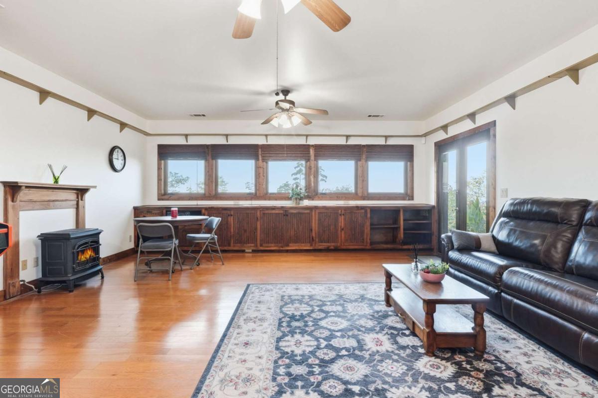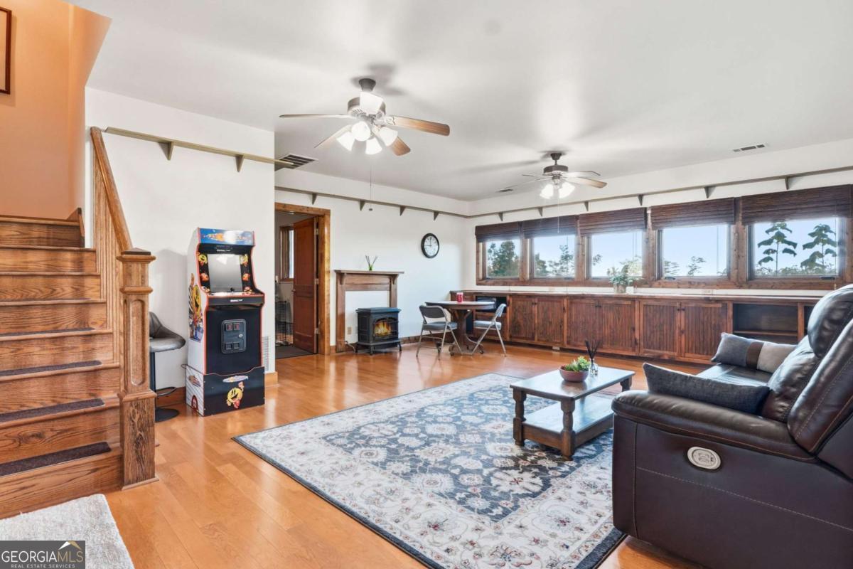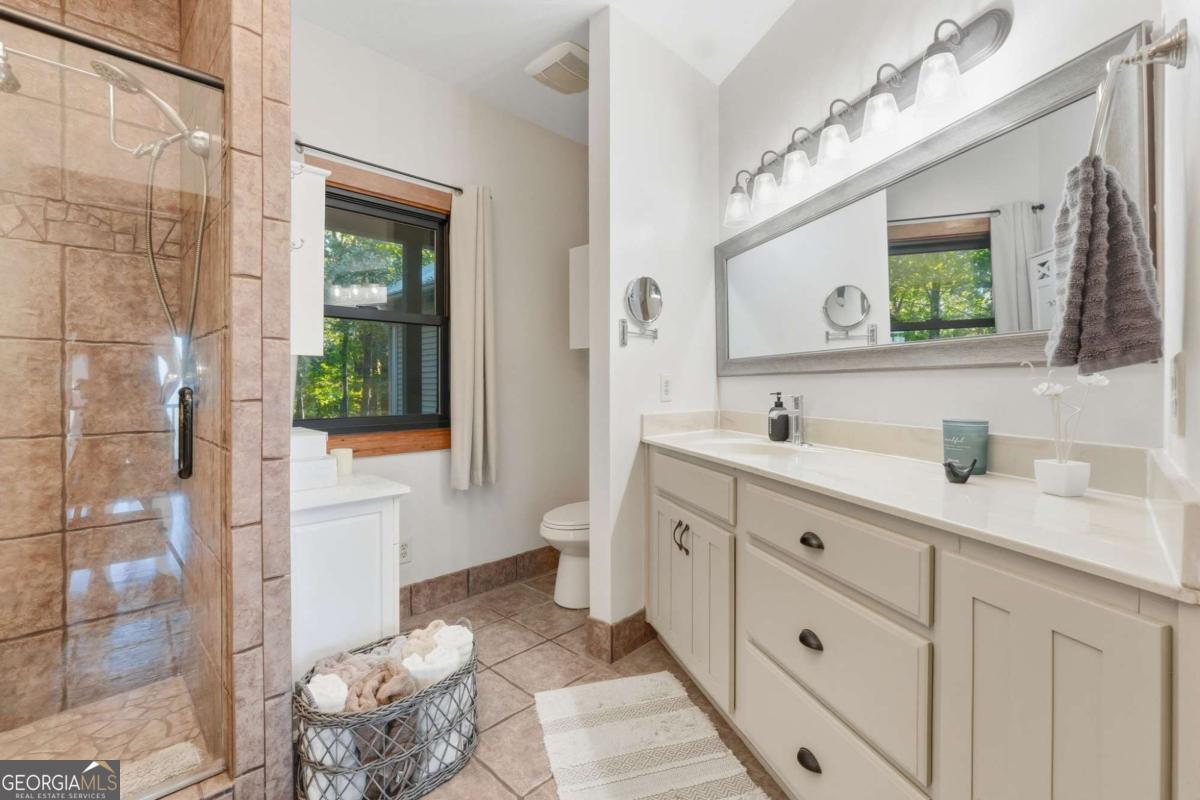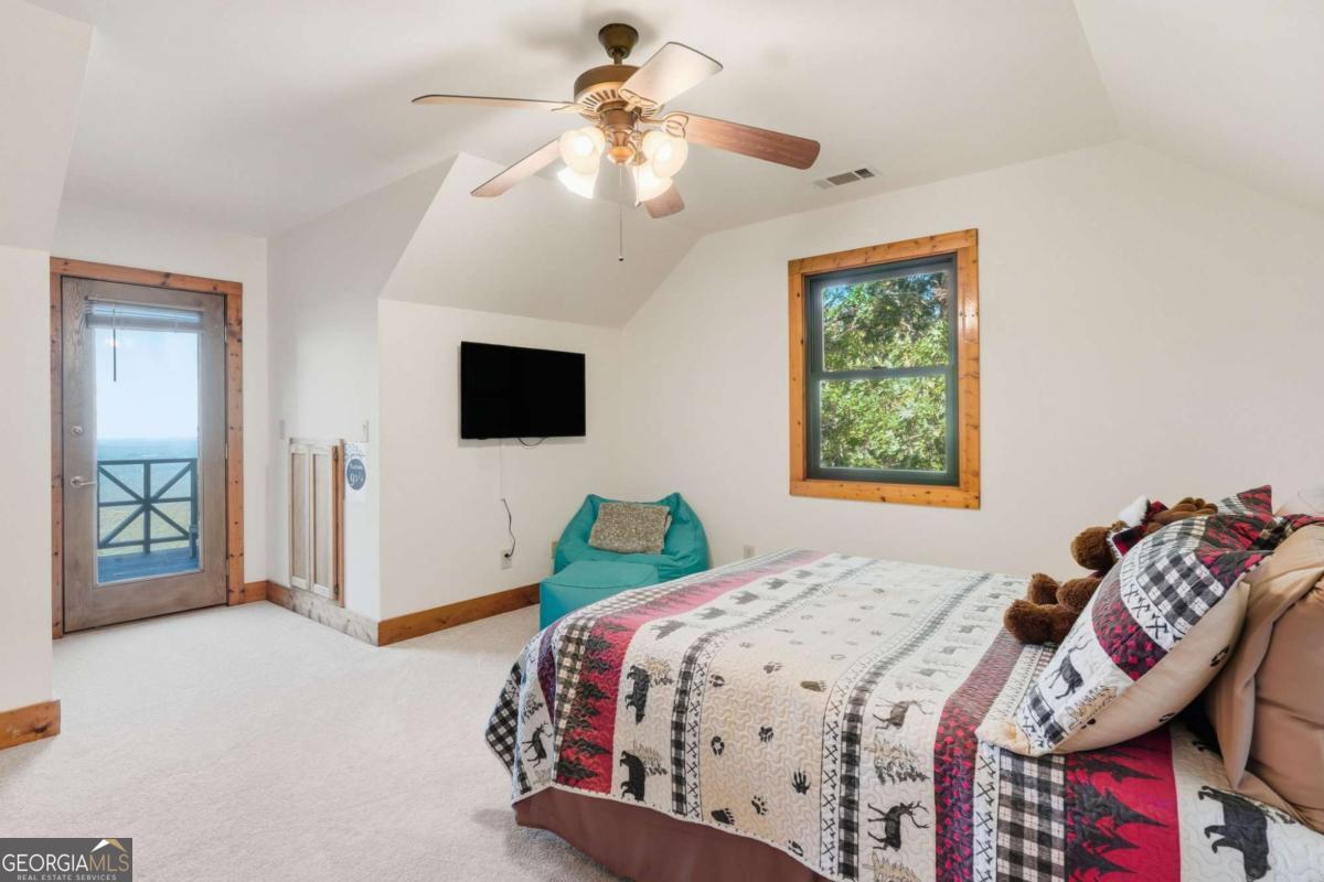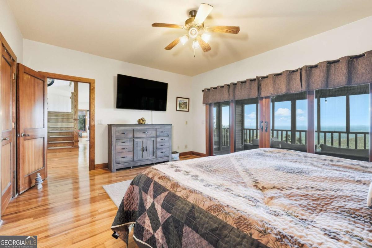 Experience breathtaking long-range southwest mountain and lake views (sunsets included!) from this exceptional custom home perched high on a private ridge in one of Jasper's most desirable mountain communities. This 5-bedroom, 3-bath retreat sits behind a private gated entrance with a circular driveway for easy access and convenient kitchen-level garage parking. Truly one of a kind, this home combines elegant design with thoughtful updates, offering an ideal blend of luxury and everyday comfort. The main level showcases a spacious great room with soaring ceilings, a stone fireplace, and walls of windows framing the panoramic mountain and water views. The stunning updated kitchen features custom cabinetry, quartz countertops, and top-of-the-line appliances-perfect for both everyday living and entertaining. The primary suite on the main level is a true sanctuary, offering access to the covered deck to enjoy the view, along with a spa-inspired bath featuring double vanities, an oversized walk-in shower, and a separate whirlpool tub. All bathrooms have been beautifully updated, continuing the home's modern, cohesive design. Throughout most of the home, Anderson "Energy Star" insulated windows with UV protection enhance comfort and efficiency, while motorized shades on the main and upper levels provide climate control at the touch of a button. The fully finished terrace level expands the living space with a large family room, home gym, and additional bedrooms-ideal for guests or multi-generational living. Outdoor spaces are equally impressive, including multiple decks and screened porches perfect for enjoying the sweeping mountain vistas. A recently upgraded well system with a 1,500-gallon tank, new pumps, and a DAP pressure monitoring system ensures consistent water pressure and reliability. With its perfect combination of craftsmanship, comfort, and modern functionality-plus easy access to Jasper, Ellijay, Dawsonville, and nearby hiking trails-this home is a rare opportunity to own a move-in-ready mountain retreat with every upgrade already done.