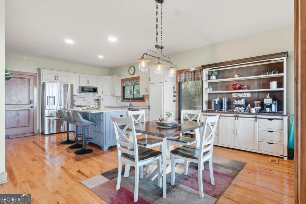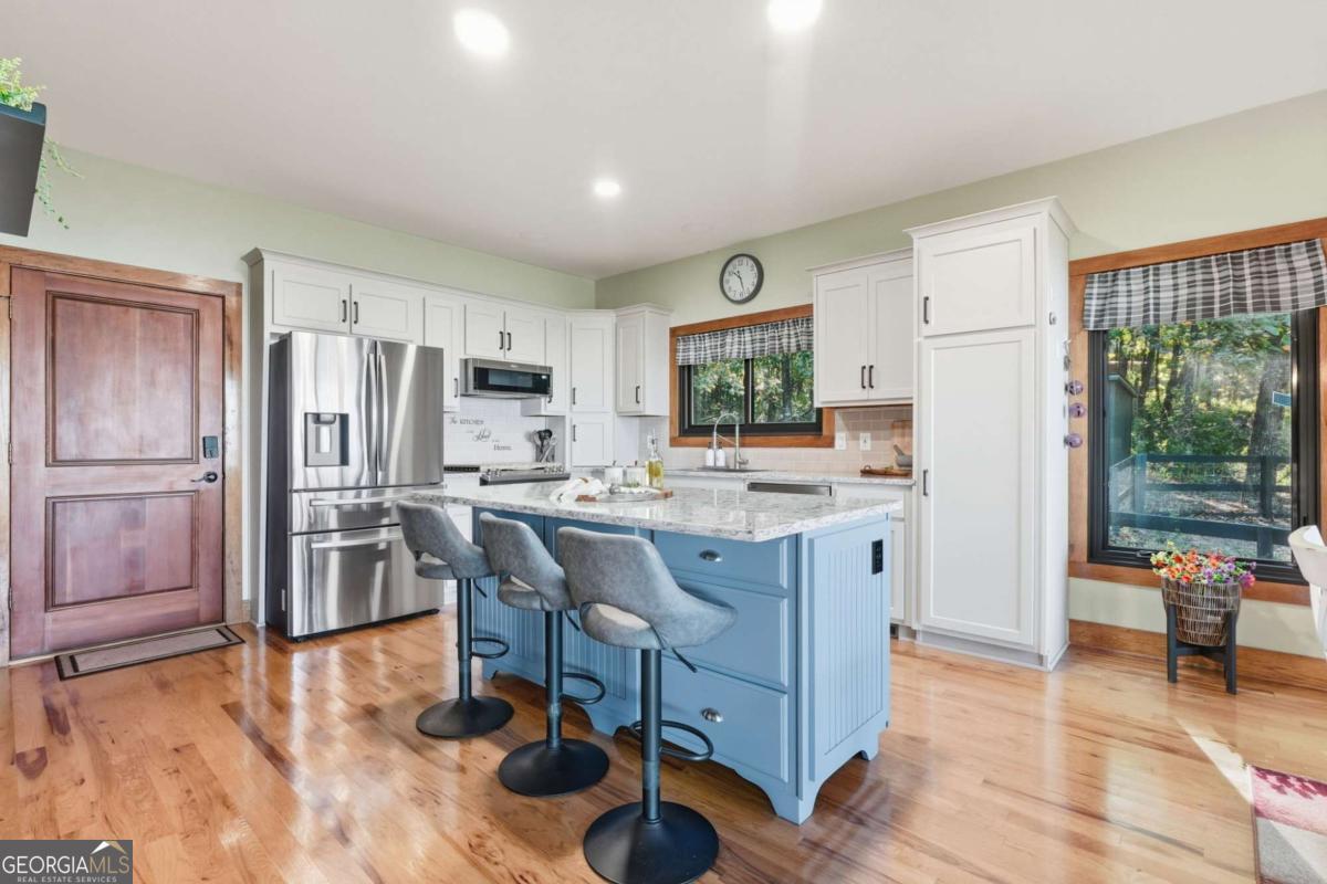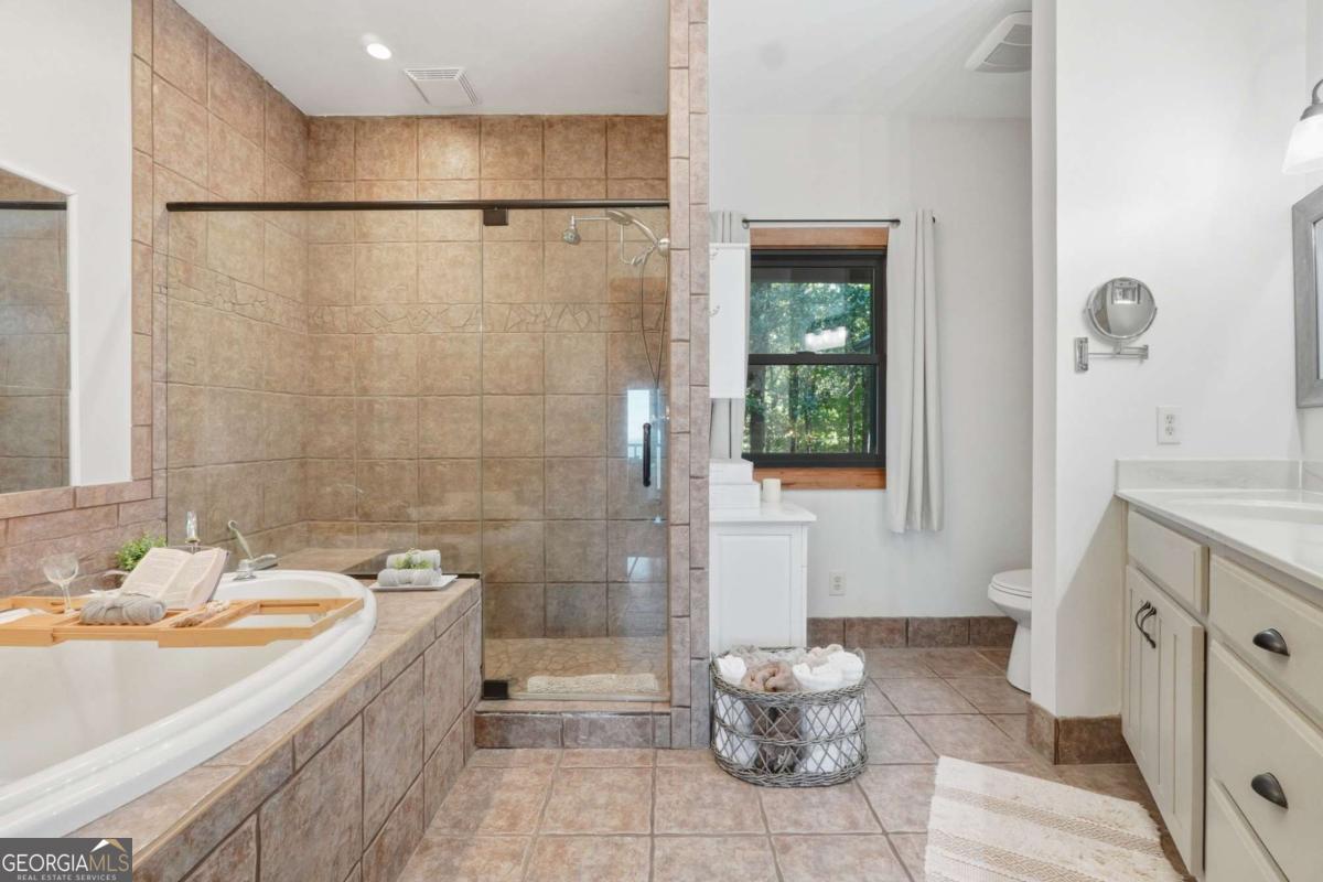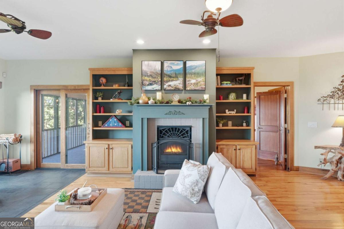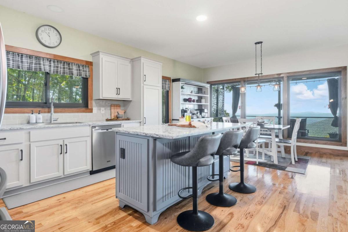 Experience breathtaking long-range southwest mountain and lake views (sunsets included!) from this exceptional custom home perched high on a private ridge in one of Jasper's most desirable mountain communities. This 5-bedroom, 3-bath retreat sits behind a private gated entrance with a circular driveway for easy access and convenient kitchen-level garage parking. Truly one of a kind, this home combines elegant design with thoughtful updates, offering an ideal blend of luxury and everyday comfort. The main level showcases a spacious great room with soaring ceilings, a stone fireplace, and walls of windows framing the panoramic mountain and water views. The stunning updated kitchen features custom cabinetry, quartz countertops, and top-of-the-line appliances-perfect for both everyday living and entertaining. The primary suite on the main level is a true sanctuary, offering access to the covered deck to enjoy the view, along with a spa-inspired bath featuring double vanities, an oversized walk-in shower, and a separate whirlpool tub. All bathrooms have been beautifully updated, continuing the home's modern, cohesive design. Throughout most of the home, Anderson "Energy Star" insulated windows with UV protection enhance comfort and efficiency, while motorized shades on the main and upper levels provide climate control at the touch of a button. The fully finished terrace level expands the living space with a large family room, home gym, and additional bedrooms-ideal for guests or multi-generational living. Outdoor spaces are equally impressive, including multiple decks and screened porches perfect for enjoying the sweeping mountain vistas. A recently upgraded well system with a 1,500-gallon tank, new pumps, and a DAP pressure monitoring system ensures consistent water pressure and reliability. With its perfect combination of craftsmanship, comfort, and modern functionality-plus easy access to Jasper, Ellijay, Dawsonville, and nearby hiking trails-this home is a rare opportunity to own a move-in-ready mountain retreat with every upgrade already done.