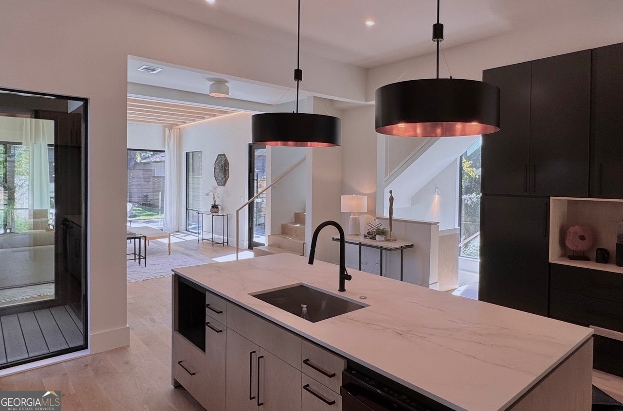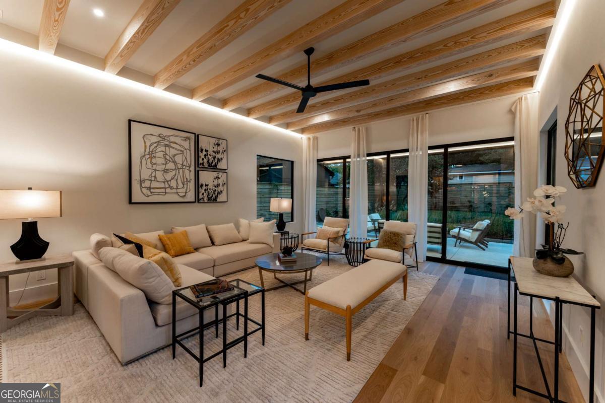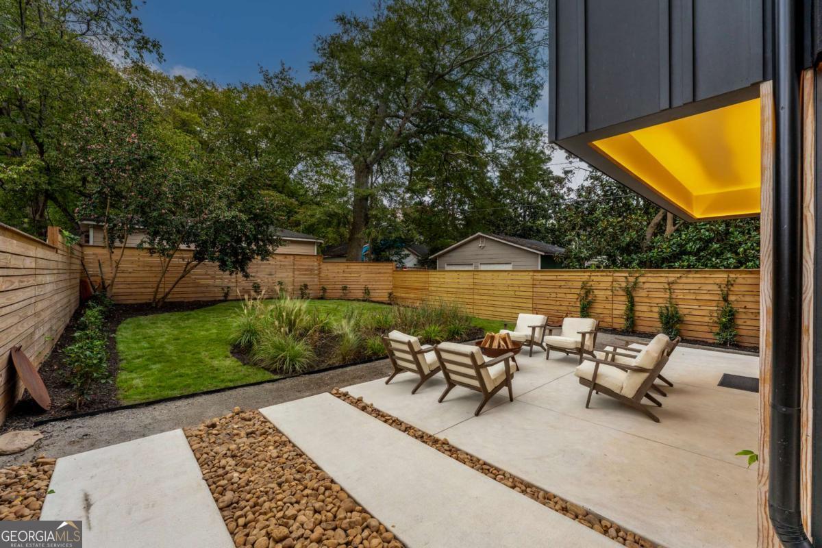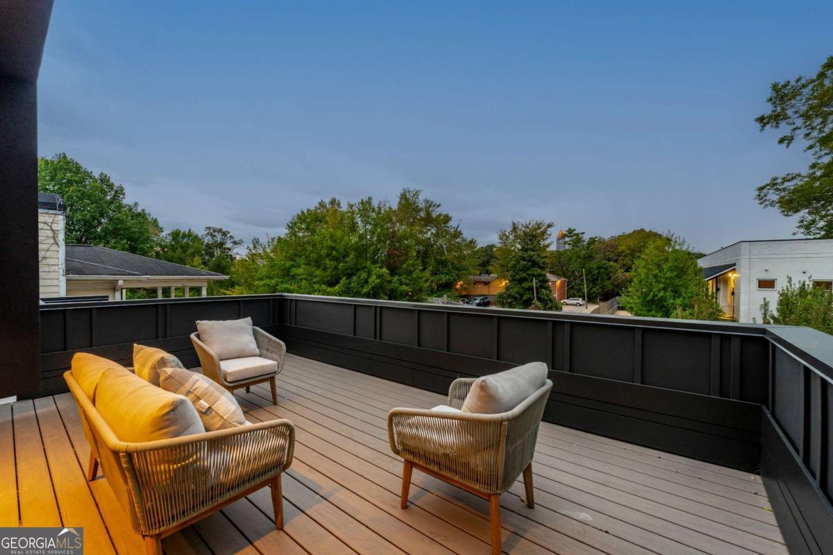 Stunning Brand-New Modern Home just Steps from the Beltline in Virginia-Highland 5 Bedrooms 4.5 Bathrooms 4 Levels Rooftop Deck Private Fenced Yard Perfectly positioned just steps from the Beltline, Ponce City Market, and Virginia-Highland, this striking new modern home blends architectural sophistication with warm, livable design. Spanning four finished levels, it offers a rare balance of luxury, light, and functionality in one of Atlanta's most walkable neighborhoods. The open main level welcomes you with wide-plank oak flooring, 11-foot ceilings, and a seamless flow between the living, dining, and kitchen areas. The dining room is framed by floor-to-ceiling windows and elegant brass fixtures, while the chef's kitchen features a large island, custom cabinetry, Dekton porcelain countertops, and matte black finishes. The kitchen is equipped with a 36-inch Z-Line dual-fuel range with six sealed Italian burners, a Sharp 24-inch microwave drawer, and a GE dishwasher. Both the main living area and the top-floor bonus room are pre-stubbed for fireplaces. Expansive sliding glass doors connect the interior to a private, fenced backyard, creating effortless indoor-outdoor living. The patio features sleek concrete finishes and landscaped greenery, offering a tranquil retreat with alley access for added convenience. Upstairs, the primary suite serves as a private sanctuary with oversized windows, a spa-inspired bath, soaking tub, and glass-enclosed shower. Additional bedrooms and bathrooms are spacious and bright, designed with clean lines and modern fixtures. The lower level provides a flexible space ideal for a guest suite, gym, or media room, complete with a built-in wet bar and extra storage. The top floor adds a fifth bedroom and full bath, along with a large bonus room featuring a full wet bar and direct access to a rooftop deck perfect for entertaining. From here, enjoy views of the tops of city buildings surrounded by lush trees and the beautiful Virginia-Highland neighborhood landscape. Highlighted Features: 5 bedrooms, 4.5 bathrooms across four thoughtfully designed levels 11-foot ceilings on main, 10.5-foot ceilings on bedroom level Chef's kitchen with Dekton porcelain countertops, custom cabinetry, and premium appliances Dining room with floor-to-ceiling windows and designer lighting Seamless indoor-outdoor living with sliding doors to private fenced backyard and patio Professionally landscaped yard with alley access Spa-style primary suite with soaking tub and glass shower Lower-level flex suite with wet bar and storage Top-floor fifth bedroom, bonus room, and full wet bar with rooftop deck access Rooftop views of treetops and the tops of city buildings Driveway parking and architectural exterior lighting Steps from the Beltline, Ponce City Market, and Virginia-Highland 787 Bonaventure Avenue combines striking modern architecture with natural warmth and thoughtful functionality, offering the best of design and location in the heart of Atlanta's most vibrant community.