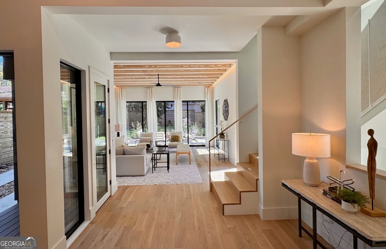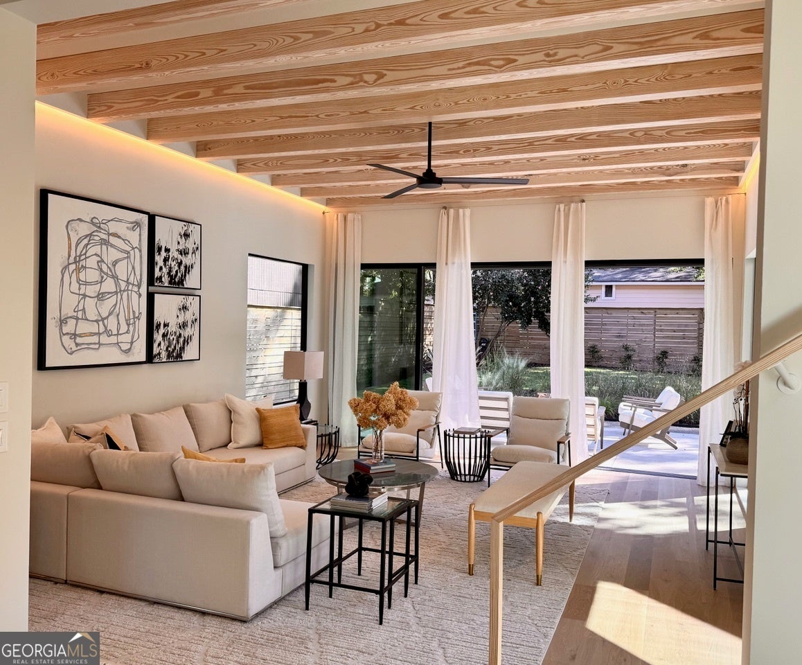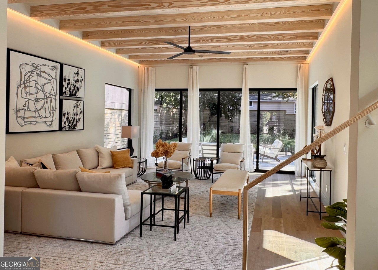 Stunning Brand-New Modern Home just Steps from the Beltline in Virginia-Highland 5 Bedrooms 4.5 Bathrooms 4 Levels Rooftop Deck Private Fenced Yard Perfectly positioned just steps from the Beltline, Ponce City Market, and Virginia-Highland, this striking new modern home blends architectural sophistication with warm, livable design. Spanning four finished levels, it offers a rare balance of luxury, light, and functionality in one of Atlanta's most walkable neighborhoods. The open main level welcomes you with wide-plank oak flooring, 11-foot ceilings, and a seamless flow between the living, dining, and kitchen areas. The dining room is framed by floor-to-ceiling windows and elegant brass fixtures, while the chef's kitchen features a large island, custom cabinetry, Dekton porcelain countertops, and matte black finishes. The kitchen is equipped with a 36-inch Z-Line dual-fuel range with six sealed Italian burners, a Sharp 24-inch microwave drawer, and a GE dishwasher. Both the main living area and the top-floor bonus room are pre-stubbed for fireplaces. Expansive sliding glass doors connect the interior to a private, fenced backyard, creating effortless indoor-outdoor living. The patio features sleek concrete finishes and landscaped greenery, offering a tranquil retreat with alley access for added convenience. Upstairs, the primary suite serves as a private sanctuary with oversized windows, a spa-inspired bath, soaking tub, and glass-enclosed shower. Additional bedrooms and bathrooms are spacious and bright, designed with clean lines and modern fixtures. The lower level provides a flexible space ideal for a guest suite, gym, or media room, complete with a built-in wet bar and extra storage. The top floor adds a fifth bedroom and full bath, along with a large bonus room featuring a full wet bar and direct access to a rooftop deck perfect for entertaining. From here, enjoy views of the tops of city buildings surrounded by lush trees and the beautiful Virginia-Highland neighborhood landscape. Highlighted Features: 5 bedrooms, 4.5 bathrooms across four thoughtfully designed levels 11-foot ceilings on main, 10.5-foot ceilings on bedroom level Chef's kitchen with Dekton porcelain countertops, custom cabinetry, and premium appliances Dining room with floor-to-ceiling windows and designer lighting Seamless indoor-outdoor living with sliding doors to private fenced backyard and patio Professionally landscaped yard with alley access Spa-style primary suite with soaking tub and glass shower Lower-level flex suite with wet bar and storage Top-floor fifth bedroom, bonus room, and full wet bar with rooftop deck access Rooftop views of treetops and the tops of city buildings Driveway parking and architectural exterior lighting Steps from the Beltline, Ponce City Market, and Virginia-Highland 787 Bonaventure Avenue combines striking modern architecture with natural warmth and thoughtful functionality, offering the best of design and location in the heart of Atlanta's most vibrant community.