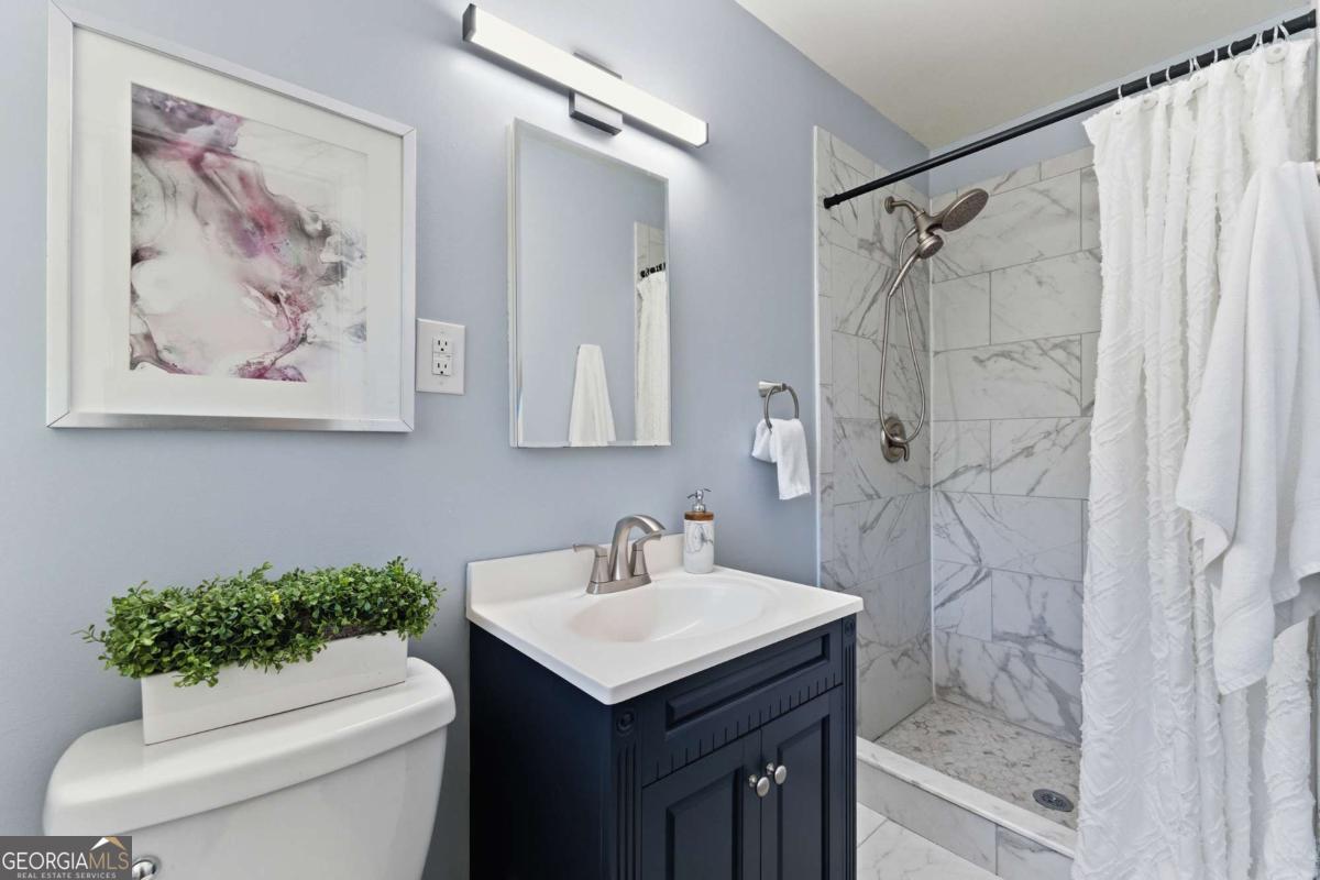 Move-in ready and full of charm, this 4-bedroom, 2.5-bath home in desirable White Oak Farms offers comfort, convenience, and no HOA! You'll love the inviting curb appeal and warm interior featuring hardwood floors and neutral paint throughout. The updated kitchen provides plenty of storage and flows easily to the main living areas. Upstairs, you'll find spacious bedrooms and beautifully updated bathrooms, including a completely remodeled primary bath (2024) with new flooring, tile, and modern fixtures. The lower level offers a bonus flex room, perfect for a home office, gym, or playroom. Outside, enjoy the fenced backyard with both a patio and deck, surrounded by mature trees for privacy-ideal for relaxing or entertaining. Recent upgrades include gutter guards, a new furnace and HVAC unit, a smart thermostat, and an alarm system. All this, just minutes from Smyrna, Marietta, major interstates, The Battery at Truist Park-and only 0.6 miles from the brand-new Milford Recreation Center-offering a perfect balance of accessibility and convenience. Special financing available, ask Listing Agent for details.