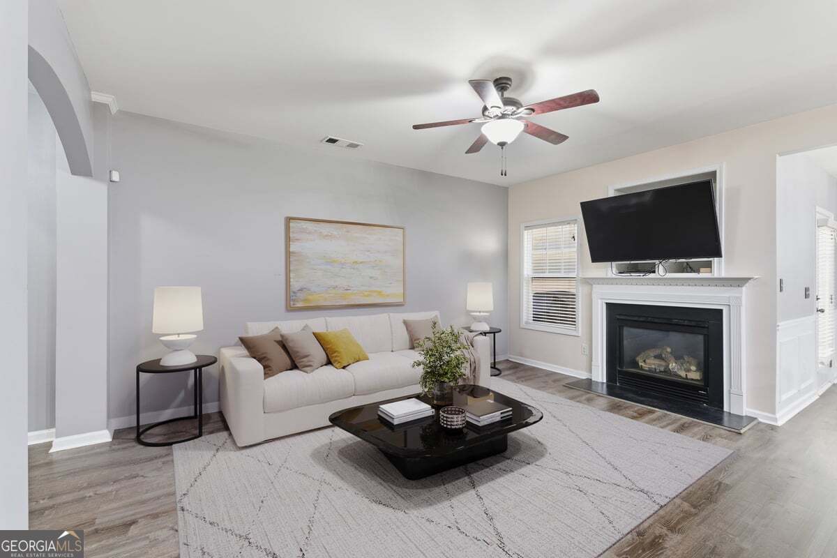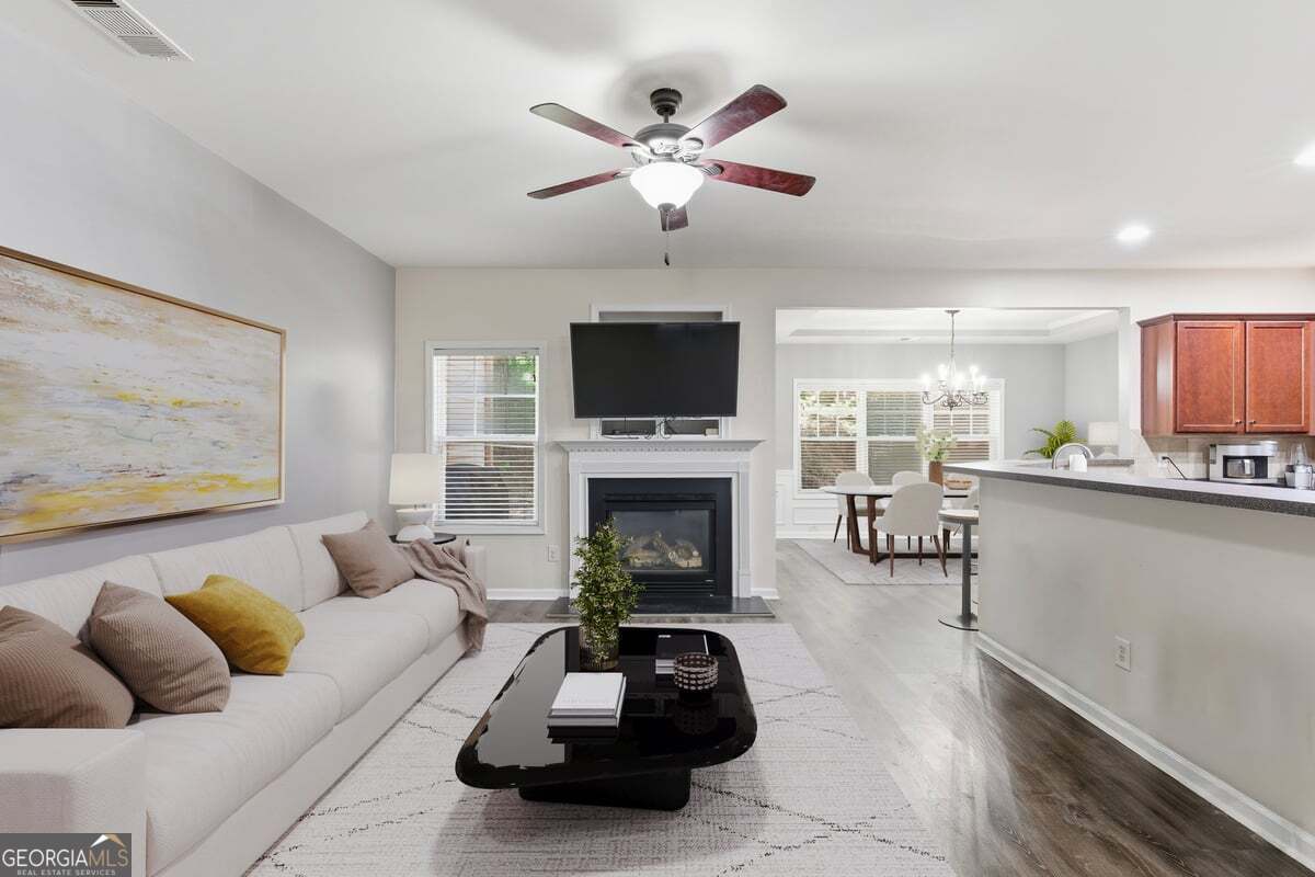 FHA APPROVED! *** THIS PROPERTY QUALIFIES FOR $10,000 in DOWN PAYMENT &/OR CLOSING COST ASSISTANCE....ASK AGENT FOR DETAILS! A Fantastic opportunity to own this beautiful and meticulously maintained 3 bedroom/2.5 bath townhome in the highly sought-after MILL PARK condominium community in the heart of Austell & minutes from the Silver Comet Trail, Frog Rock Brewing Co. Cobb Hospital, Shopping Dining and more! Step inside to a grand two-story foyer filled with natural light and recently installed LVP flooring. The open floor plan features elegant curved archways, a spacious fireside family room, and a dedicated dining area with tray ceilings-perfect for entertaining. The large kitchen is a stunner offering an abundance of counter space, tile backsplash, and views into the dining room, sunroom or flex space that opens to a tranquil private patio. The upper level boasts a luxurious primary suite with a vaulted, tray ceiling and a large sitting area that is perfect for a home gym, office, or relaxation space is drenched in natural sunlight. The primary bedroom has an en suite with double vanities, tile floors, a relaxing soaking tub, a separate glass-enclosed shower, and a large walk-in closet. The upper level is also complete with the second full bath, two more spacious secondary bedrooms, and a separate laundry room. Located on a cul-de-sac lot with a level two-car garage, your next home is just minutes from the Silver Comet Trail, schools, shopping, dining, and easy interstate access. Community amenities include a sparkling swimming pool. Don't miss this opportunity to have Mill Park's most desired floorplan!